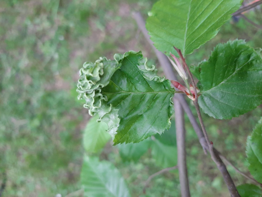 Mikroskopický, červeno sfarbený červec žije na spodnej strane listu a v okolí bočných žiliek. Následkom jeho pôsobenia sa žilky hadovito deformujú a nepravidelne hrubnú. To spôsobuje deformácie a krútenie listov. Hojný najmä na mladších stromoch. Bez hospodárskeho významu.