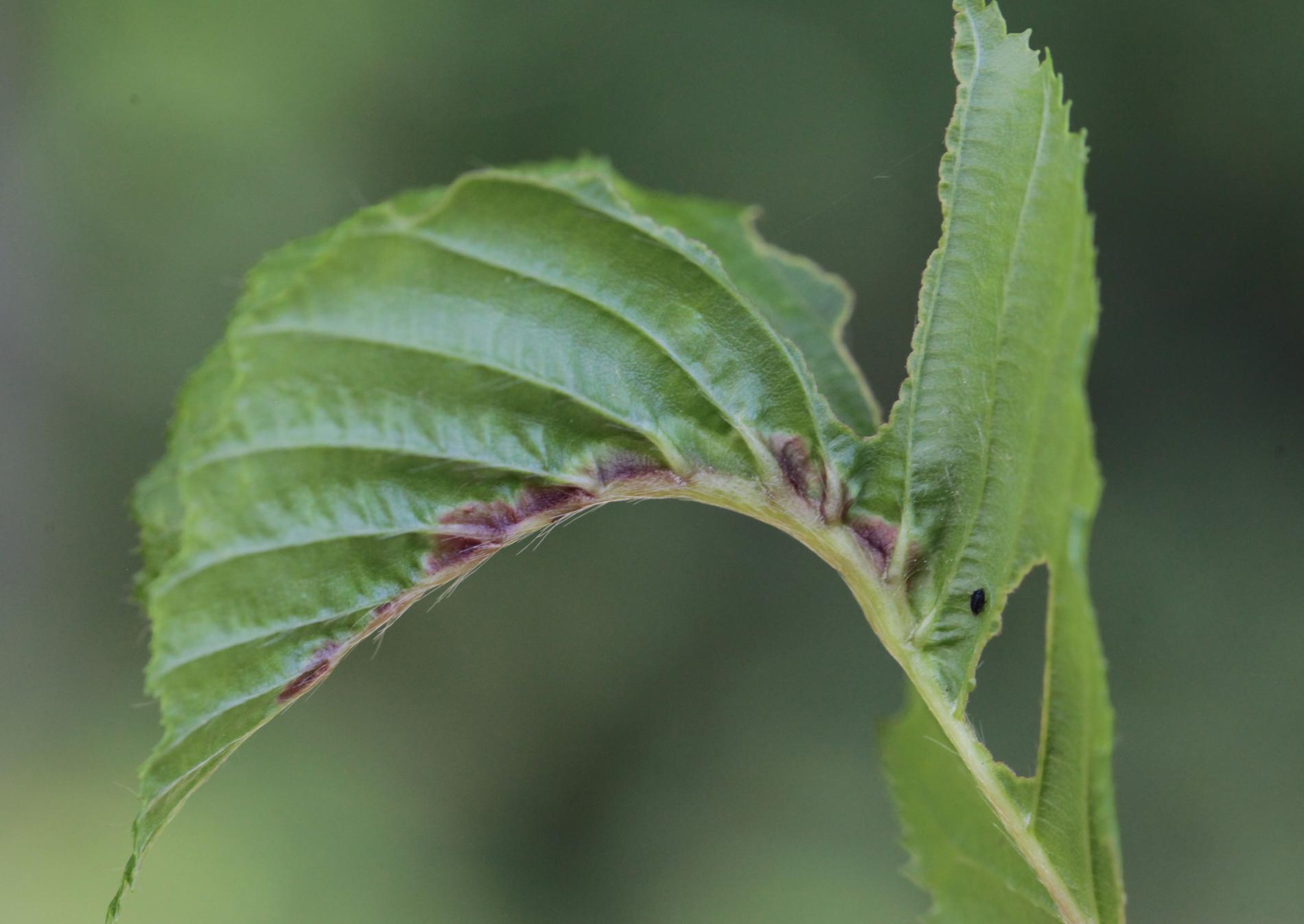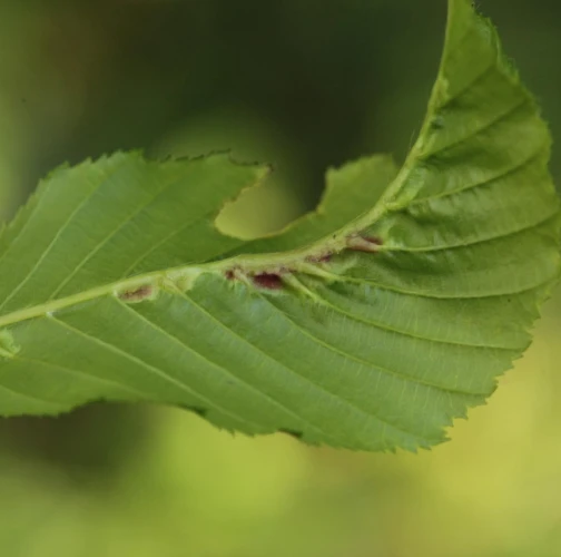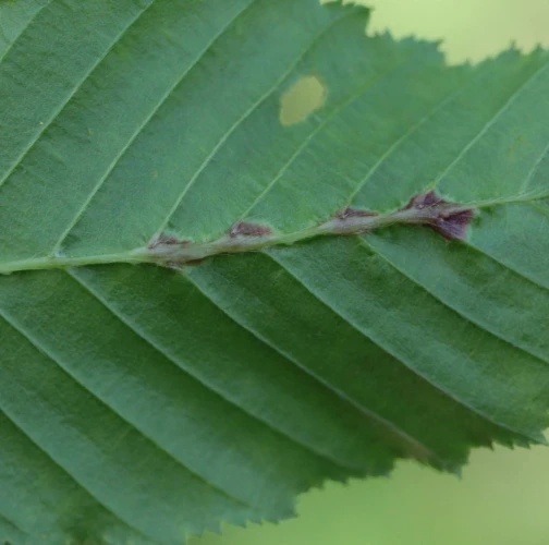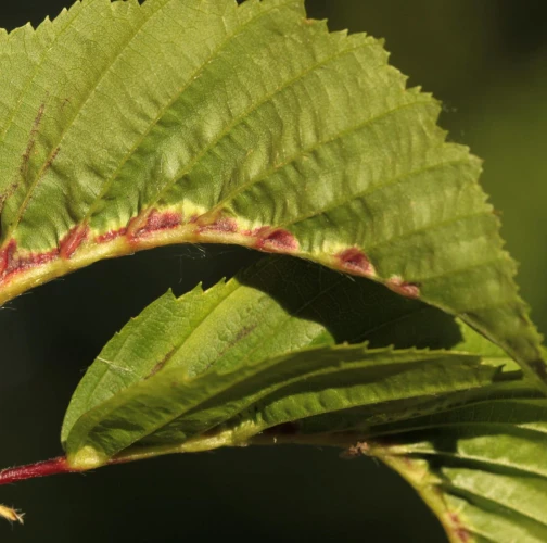 Červec spôsobuje drobné zdureniny na spodnej strane listu v mieste dotyku bočnej a hlavnej žilky. Miesto je zdurené a ochlpené. Na vrchnej strane listu sa v tom istom mieste objavuje hrbolčekovitý odtlačok nad poškodeným miestom. Tvar poškodenia je vždy veľmi pravidelný a vyskytuje sa na celom liste.
