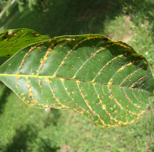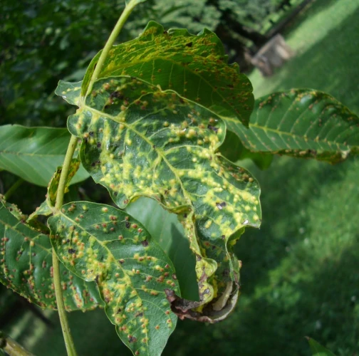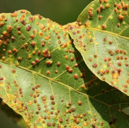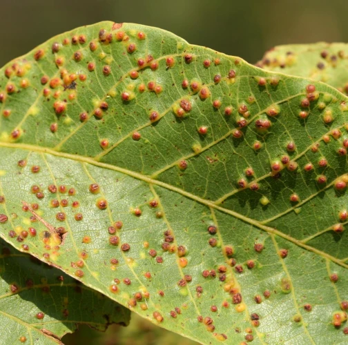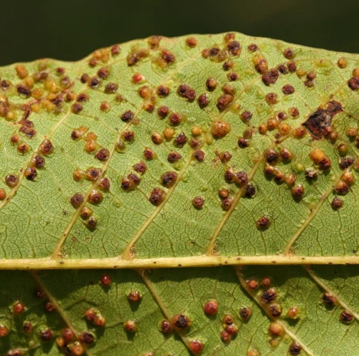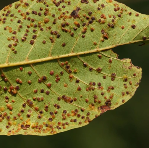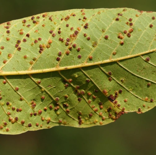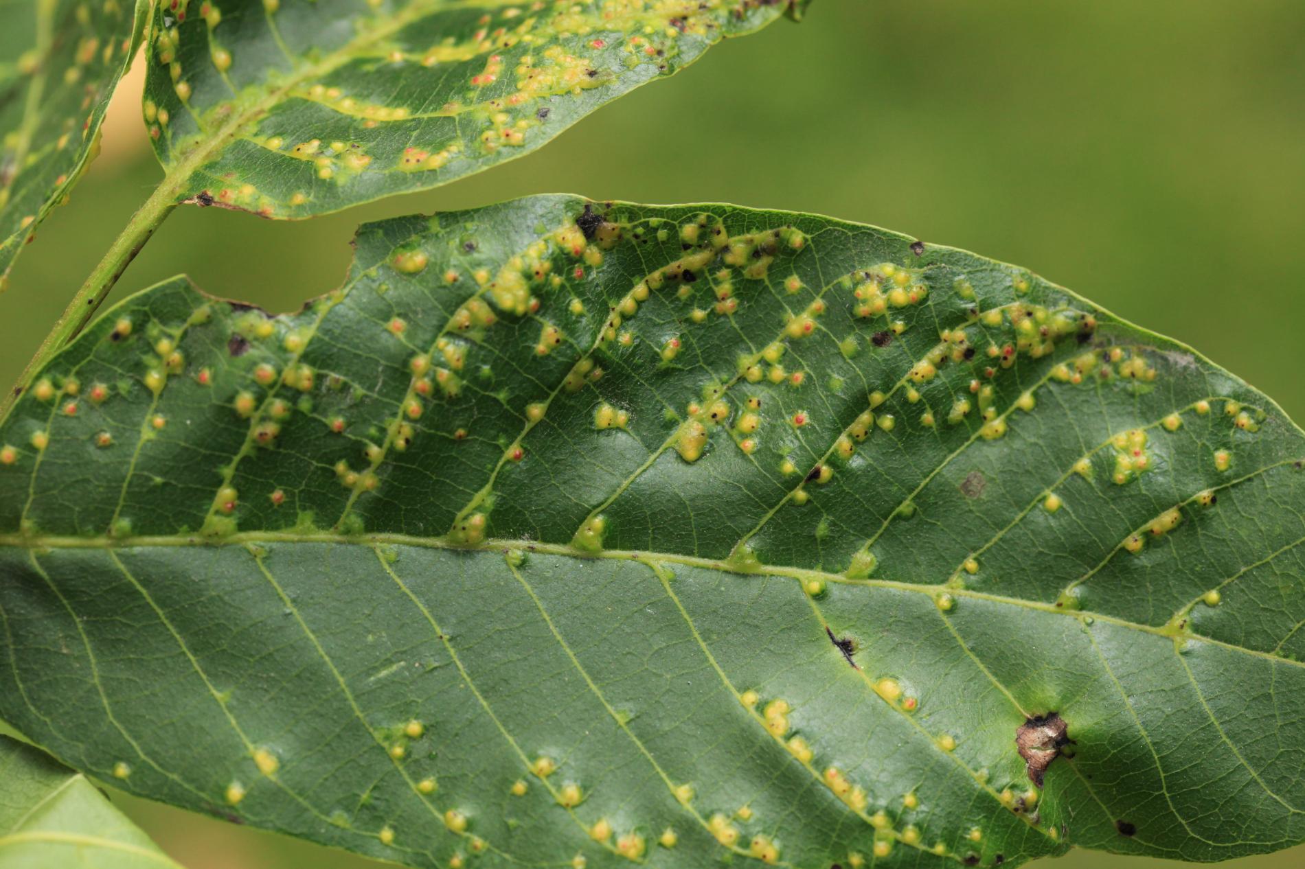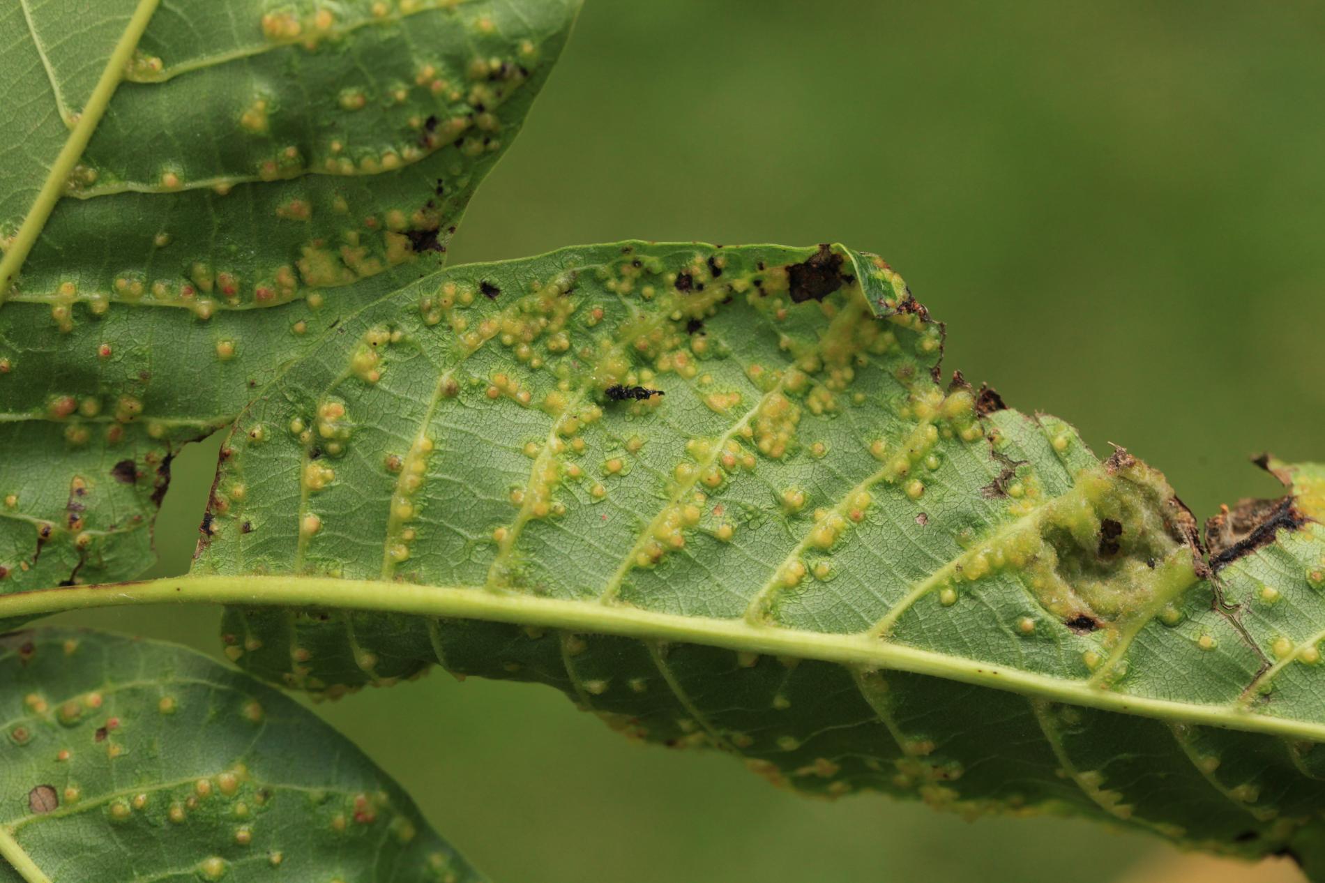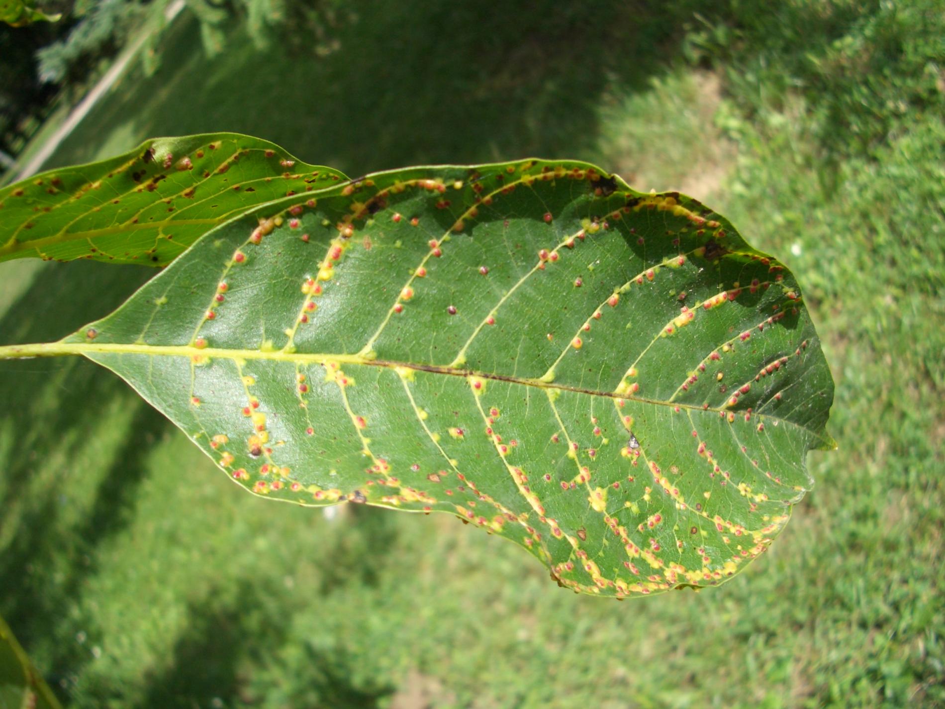 Okrúhle hrbolčeky/bradavičky veľkosti 1-2 milimetre na listoch. Viditeĺné dobre na obidvoch stranách. Najskôr žlto zelené, neskôr zeleno hnedé. V prípade vhodných podmienok veľmi hojne sa nachádzajúce na listoch. Častý v záhradách, parkoch a plantážach. Môže postihovať aj plody.