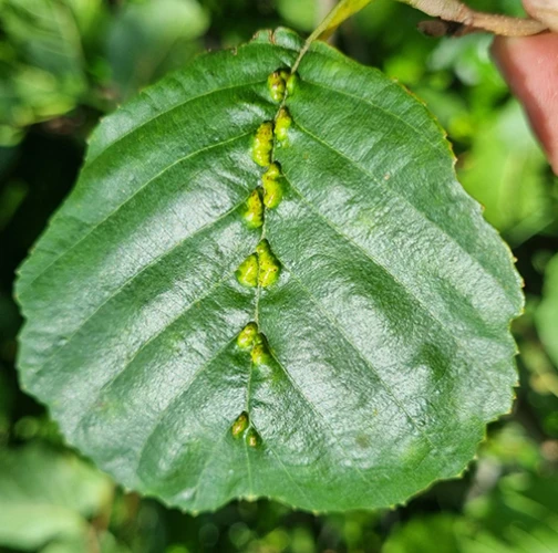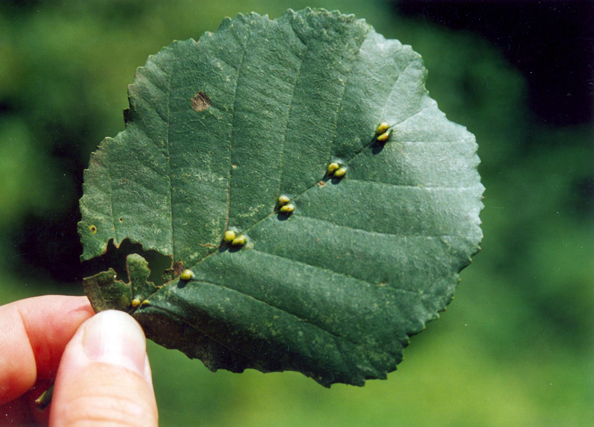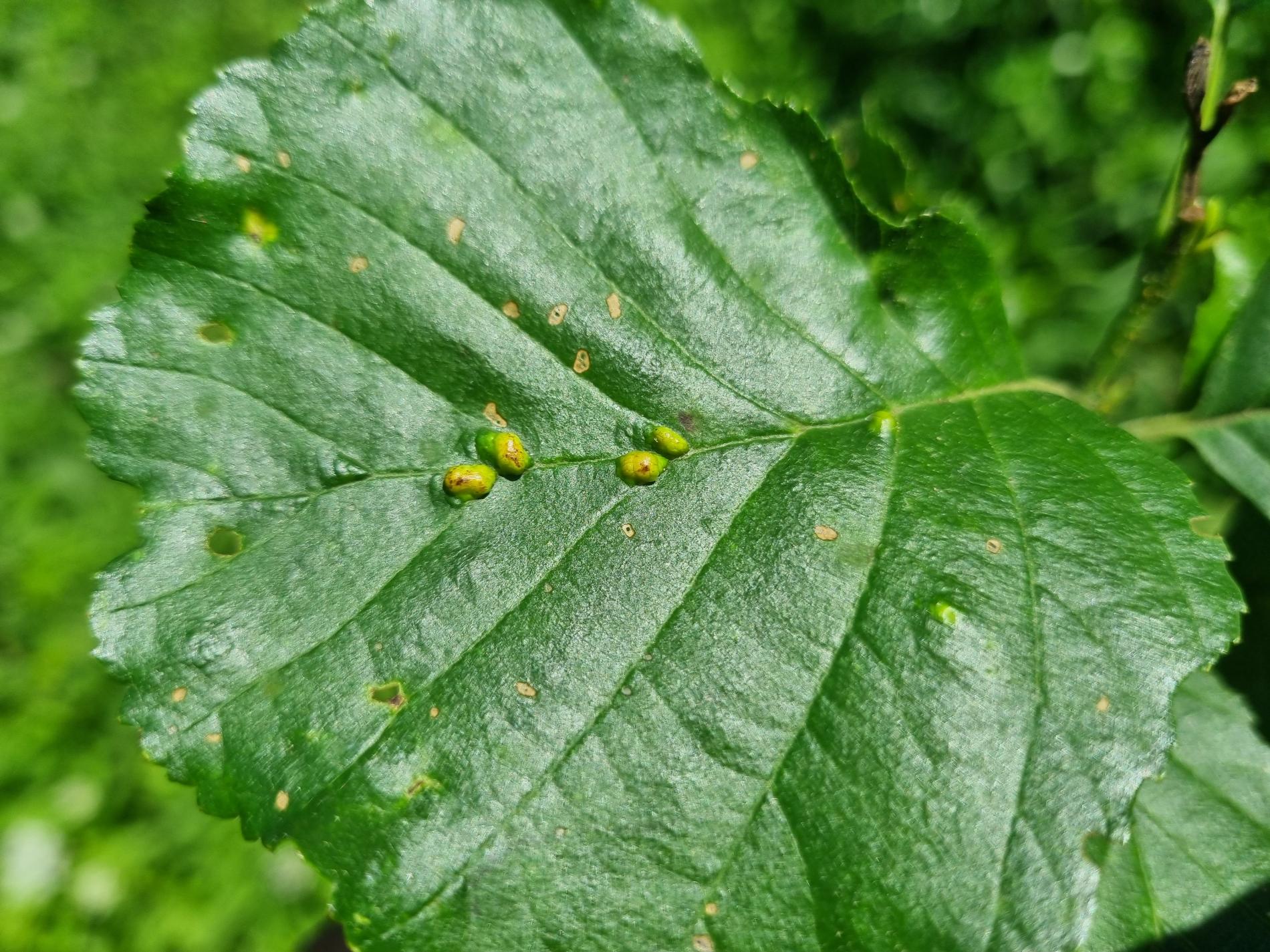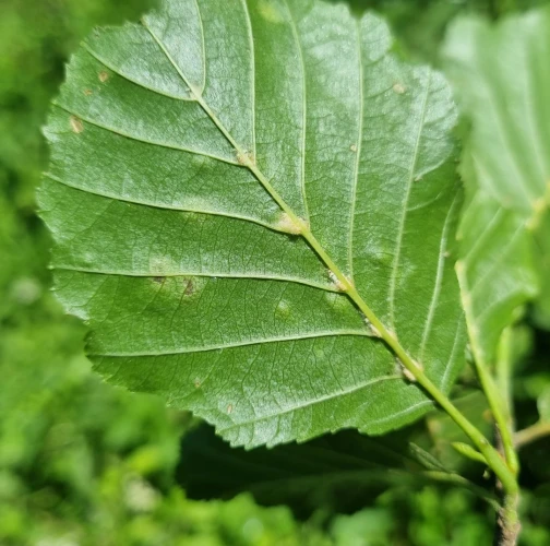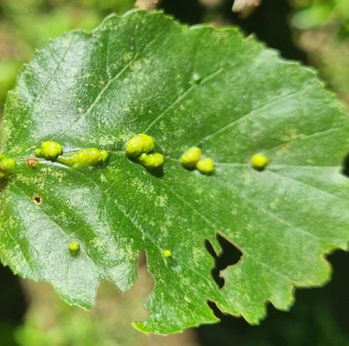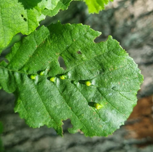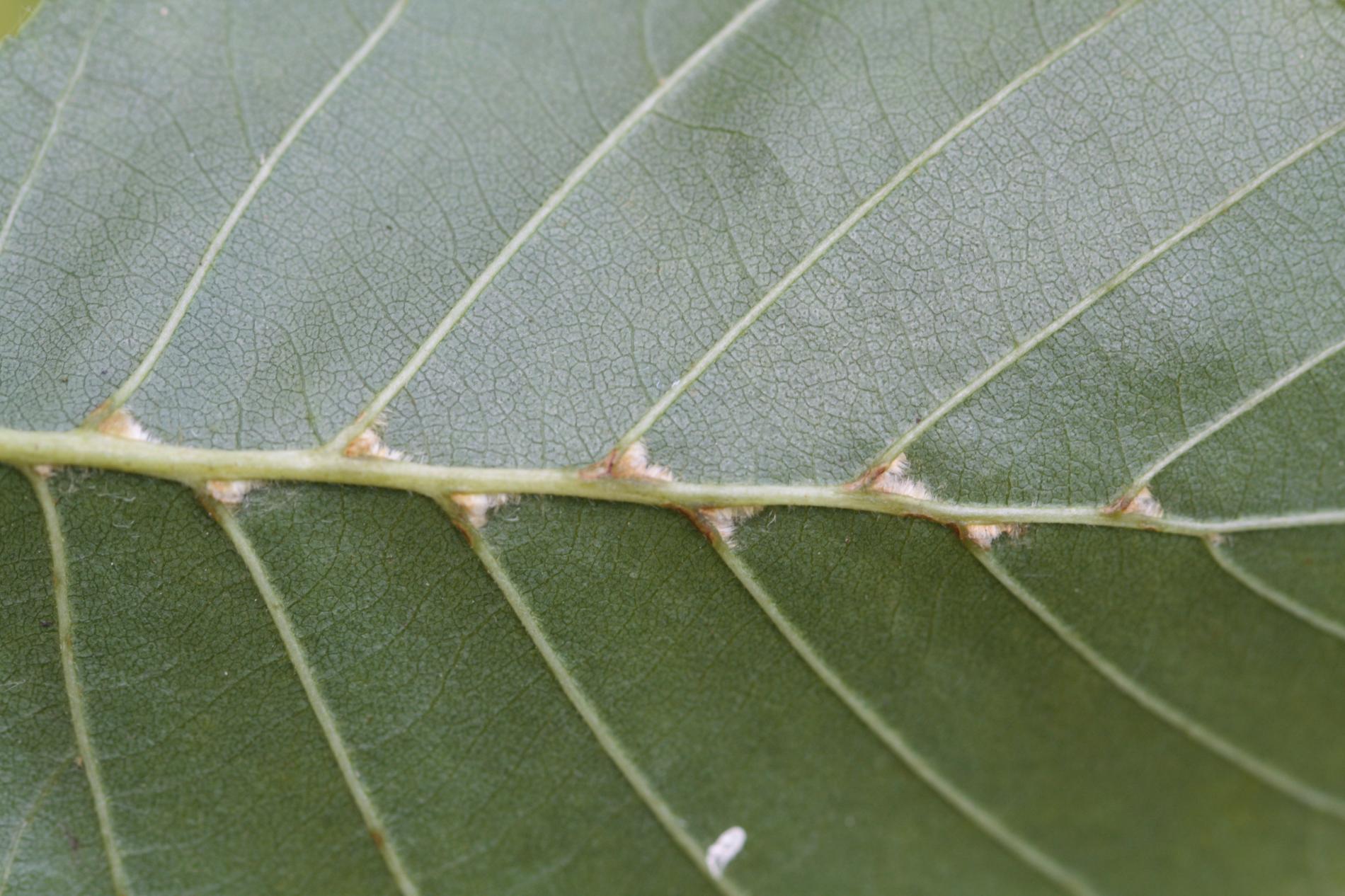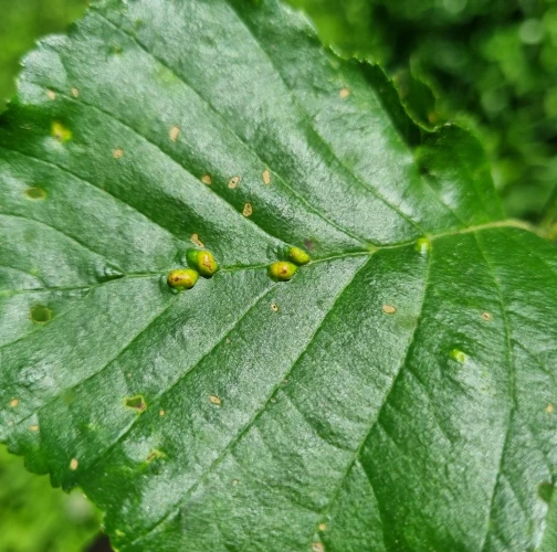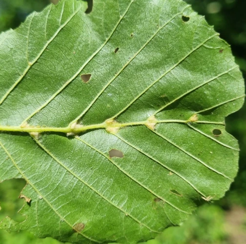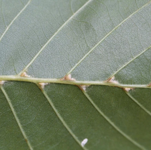 Na vrchnej strane listov sú na mieste spojenia bočnej žilky s hlavnou malé zdureniny. Vytvárajú dvojice. Na spodnej strane listu je v mieste zdureniny malá ochlpená plôška.