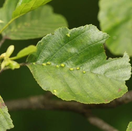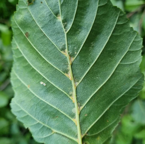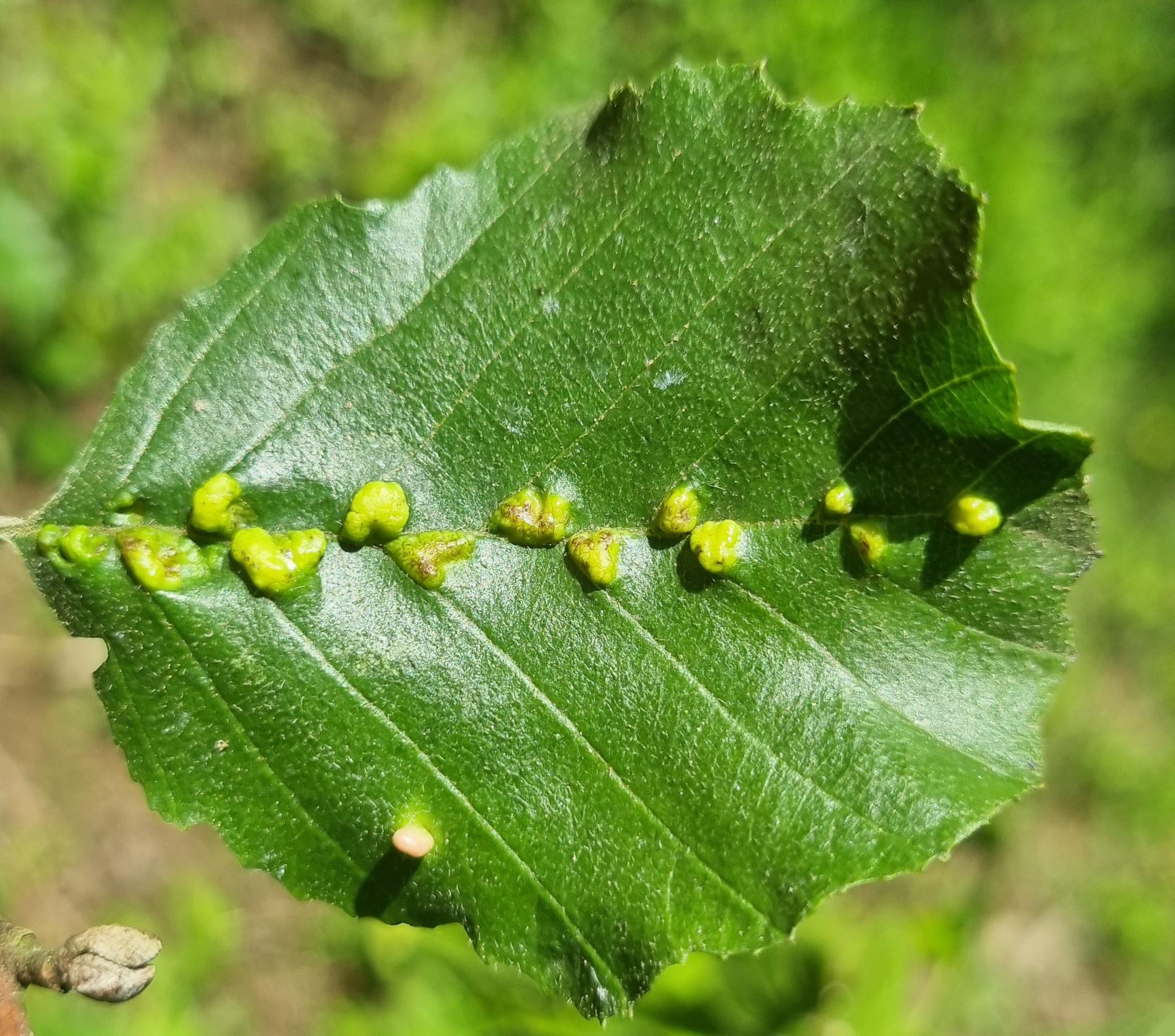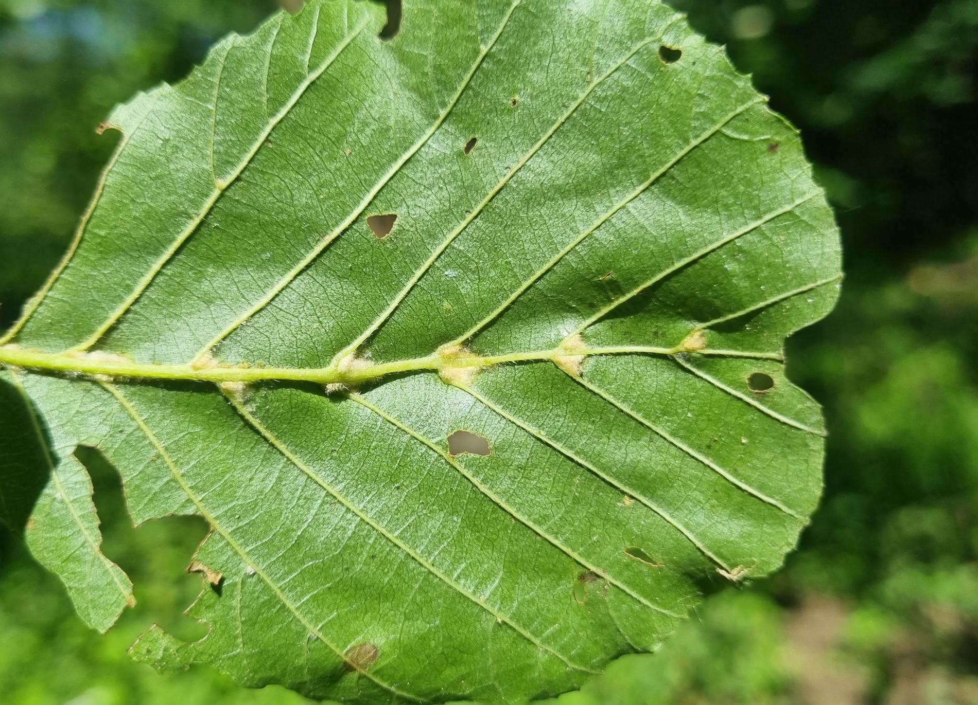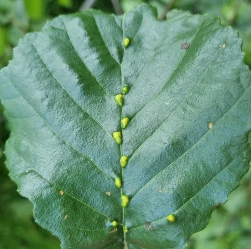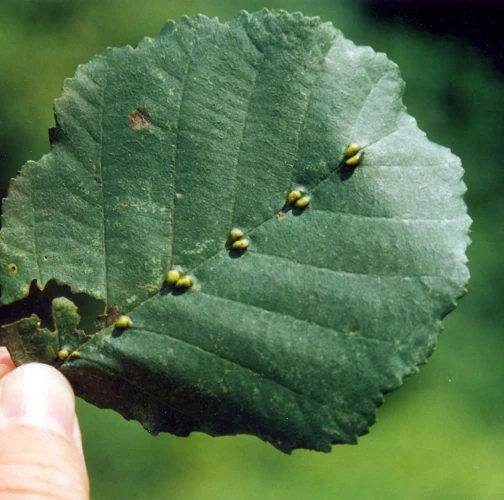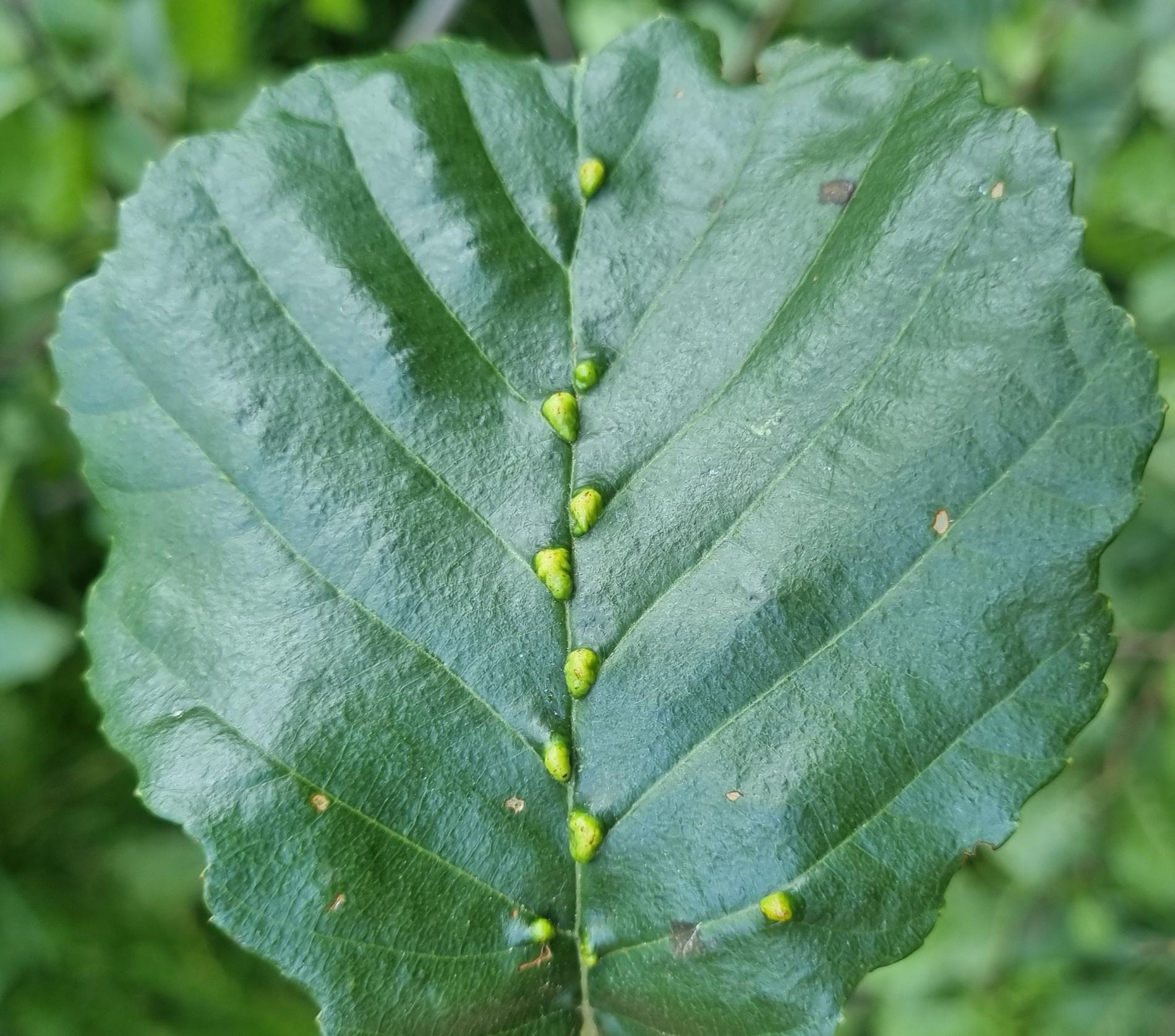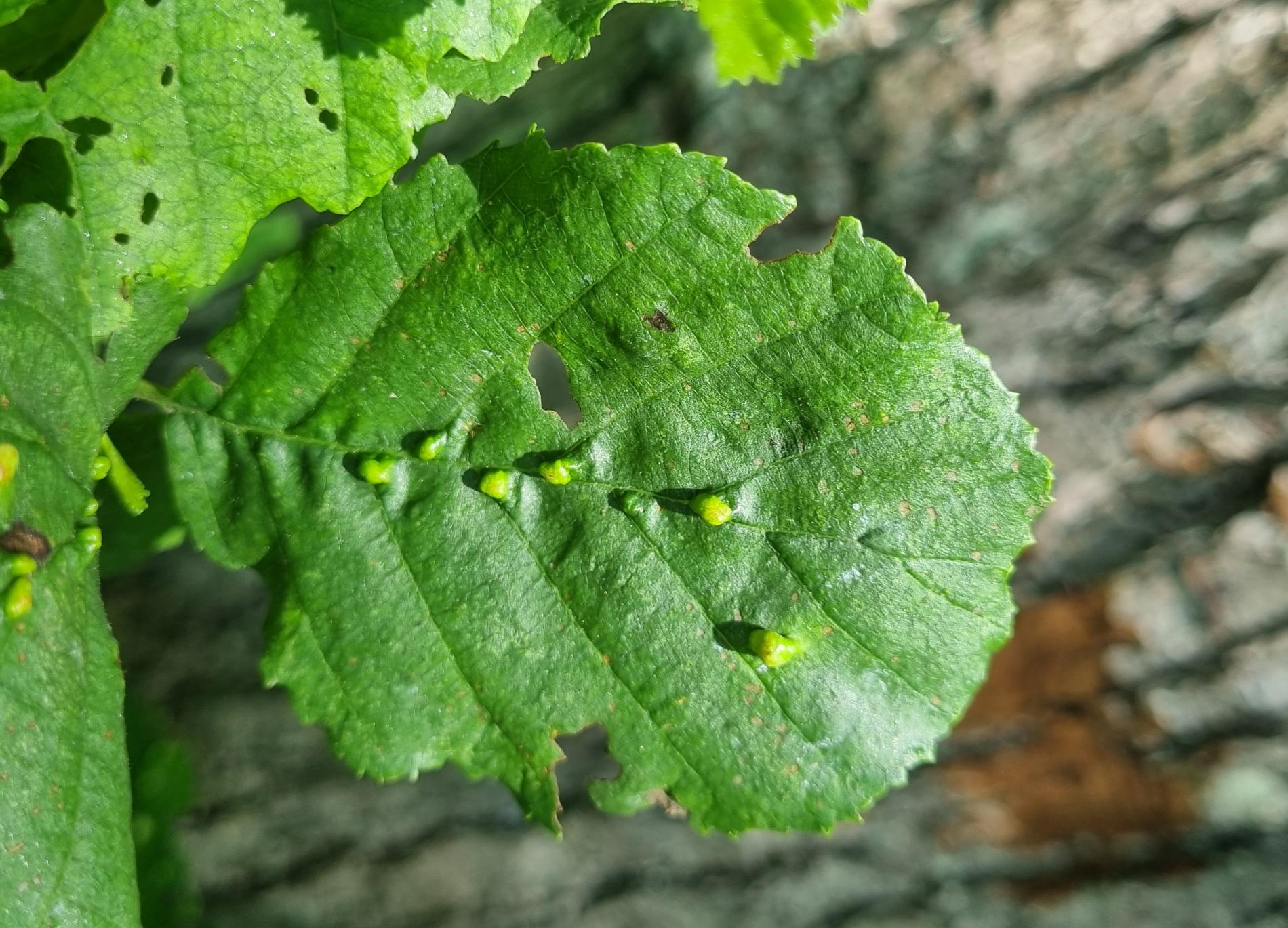 Na vrchnej strane listov sú na mieste spojenia bočnej žilky s hlavnou malé zdureniny. Vytvárajú dvojice. Na spodnej strane listu je v mieste zdureniny malá ochlpená plôška.