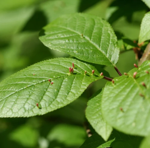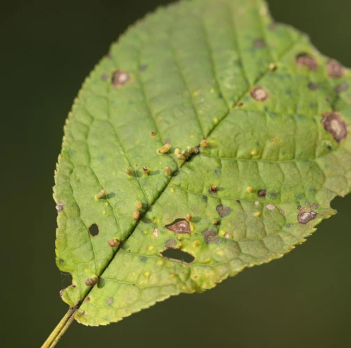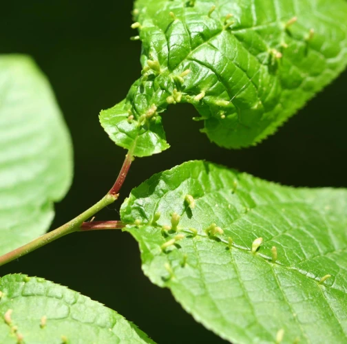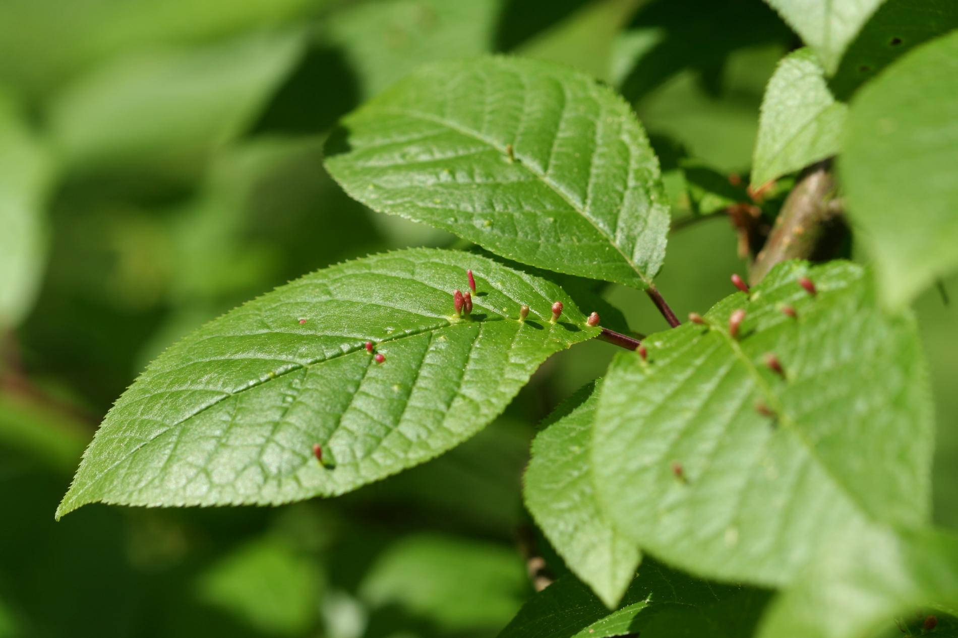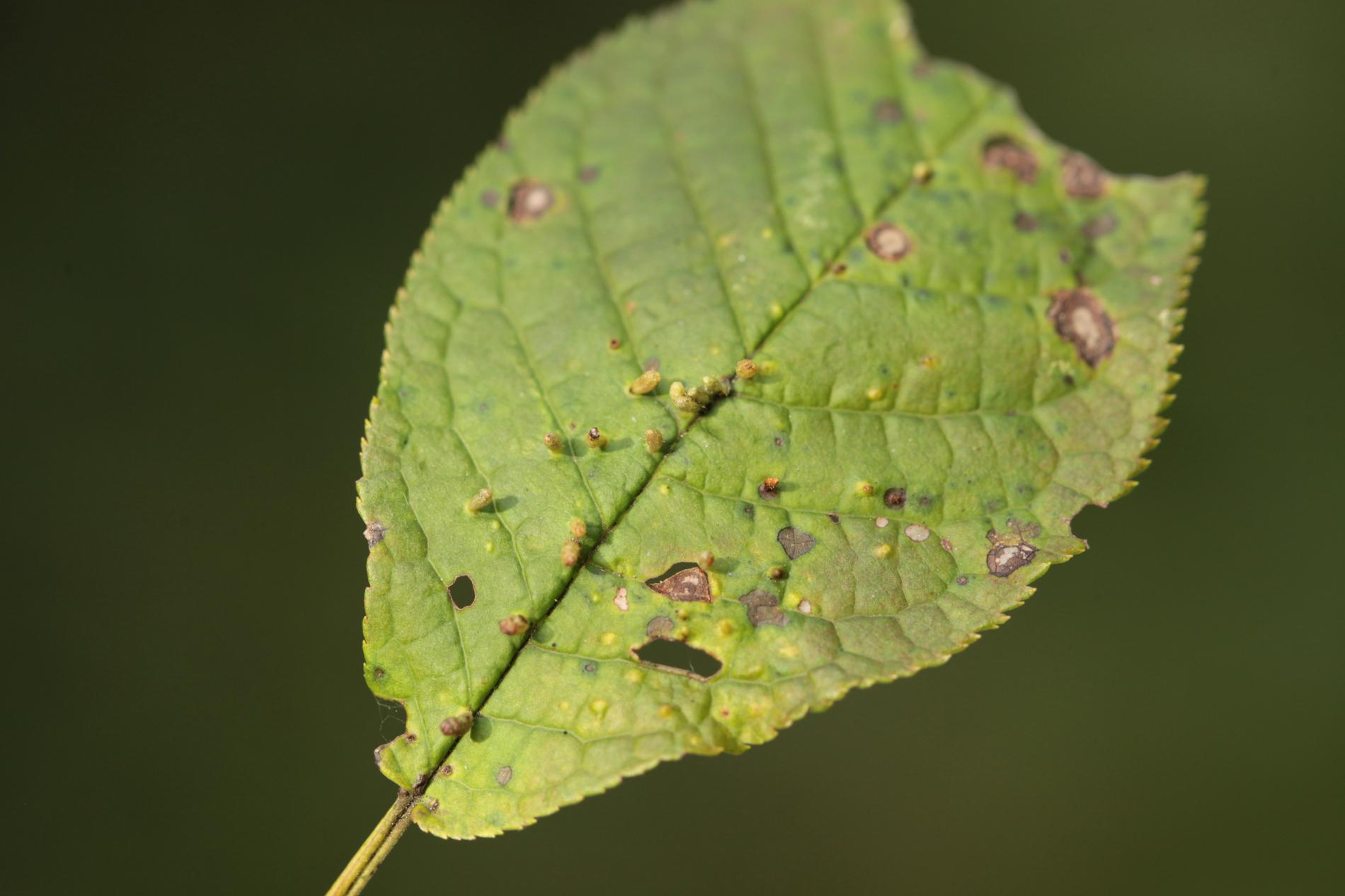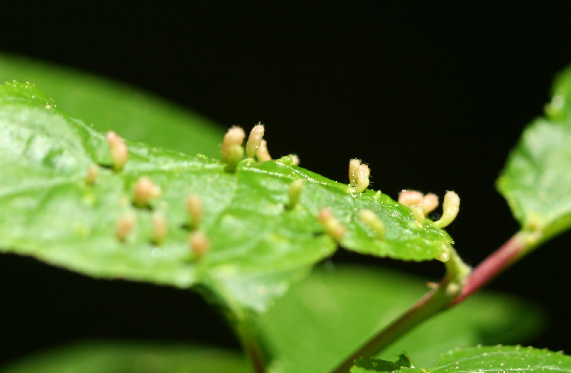 Drobné hálky na vrchnej strane listu. Môžu byť guľovité, elipsovité až pretiahnuto elipsovité, zelenej, žltej, ružovej alebo červenej farby.