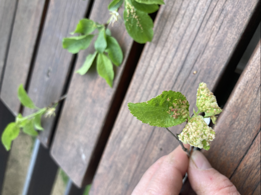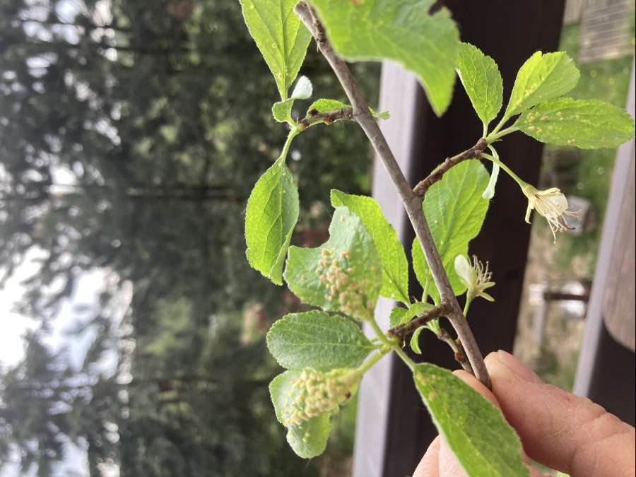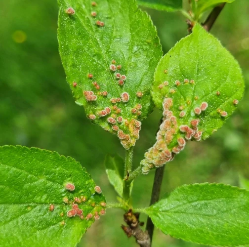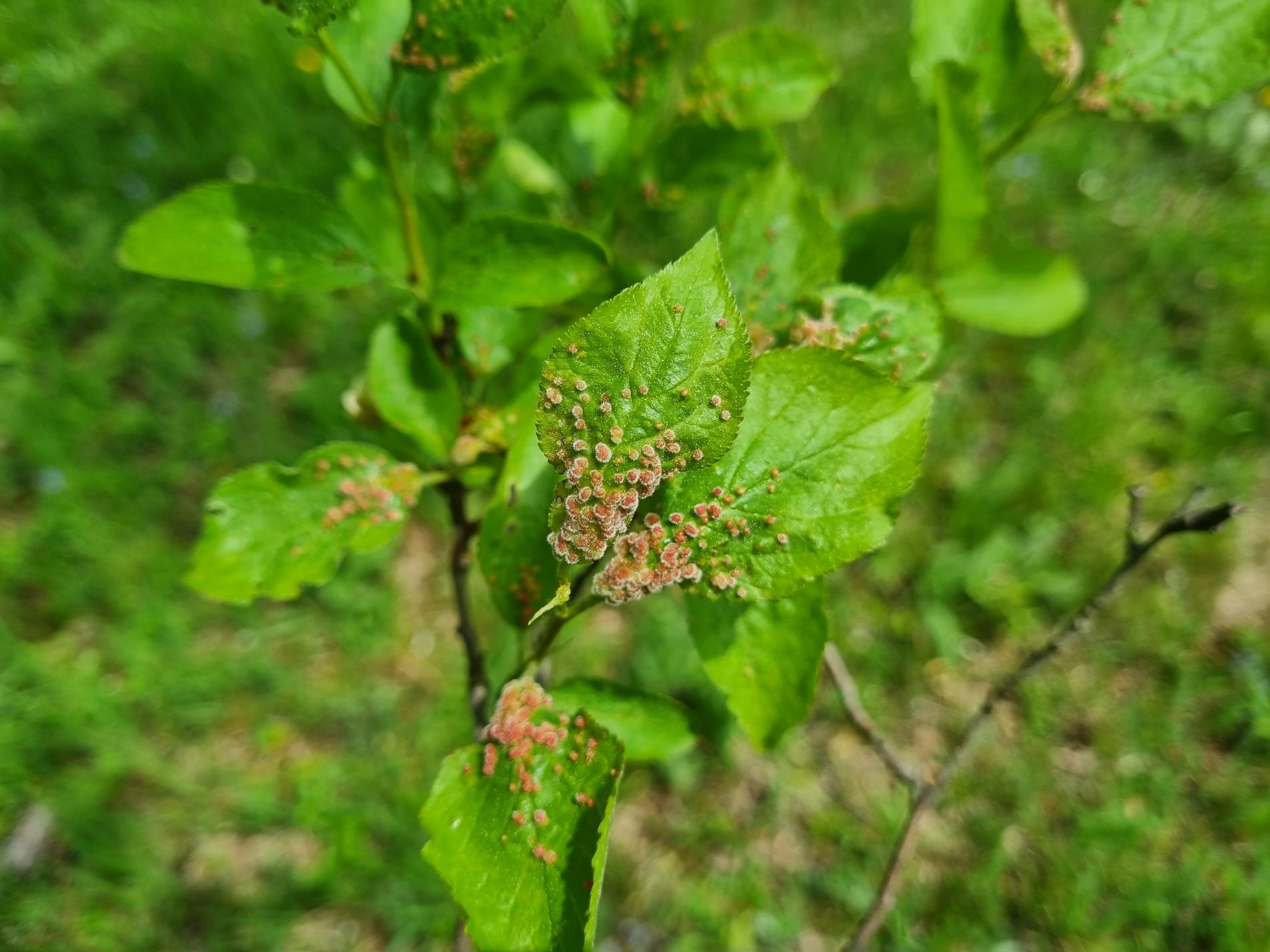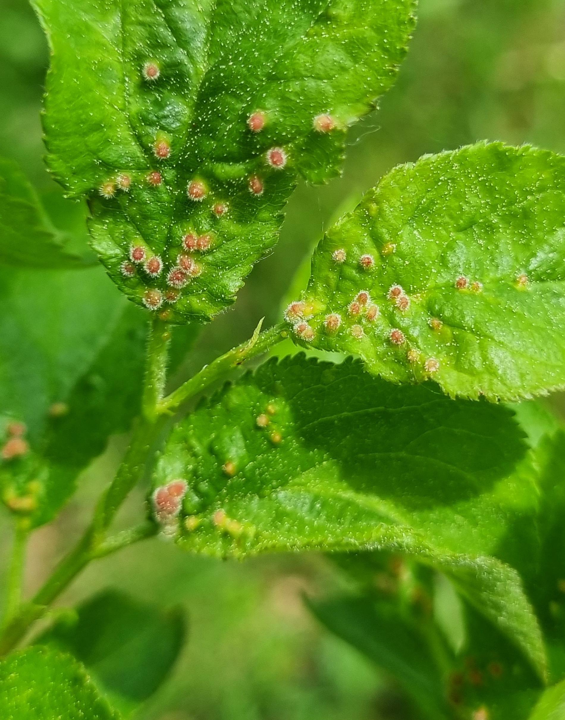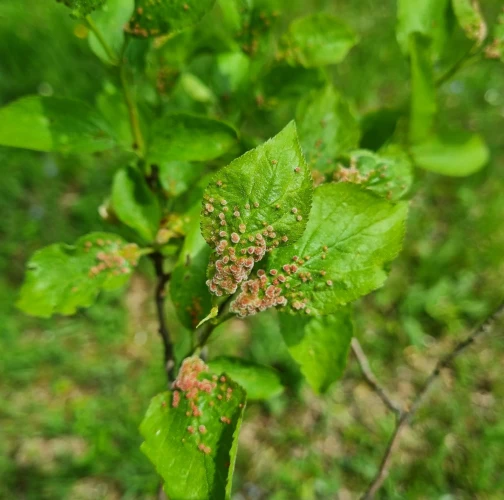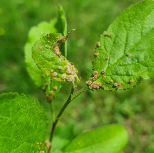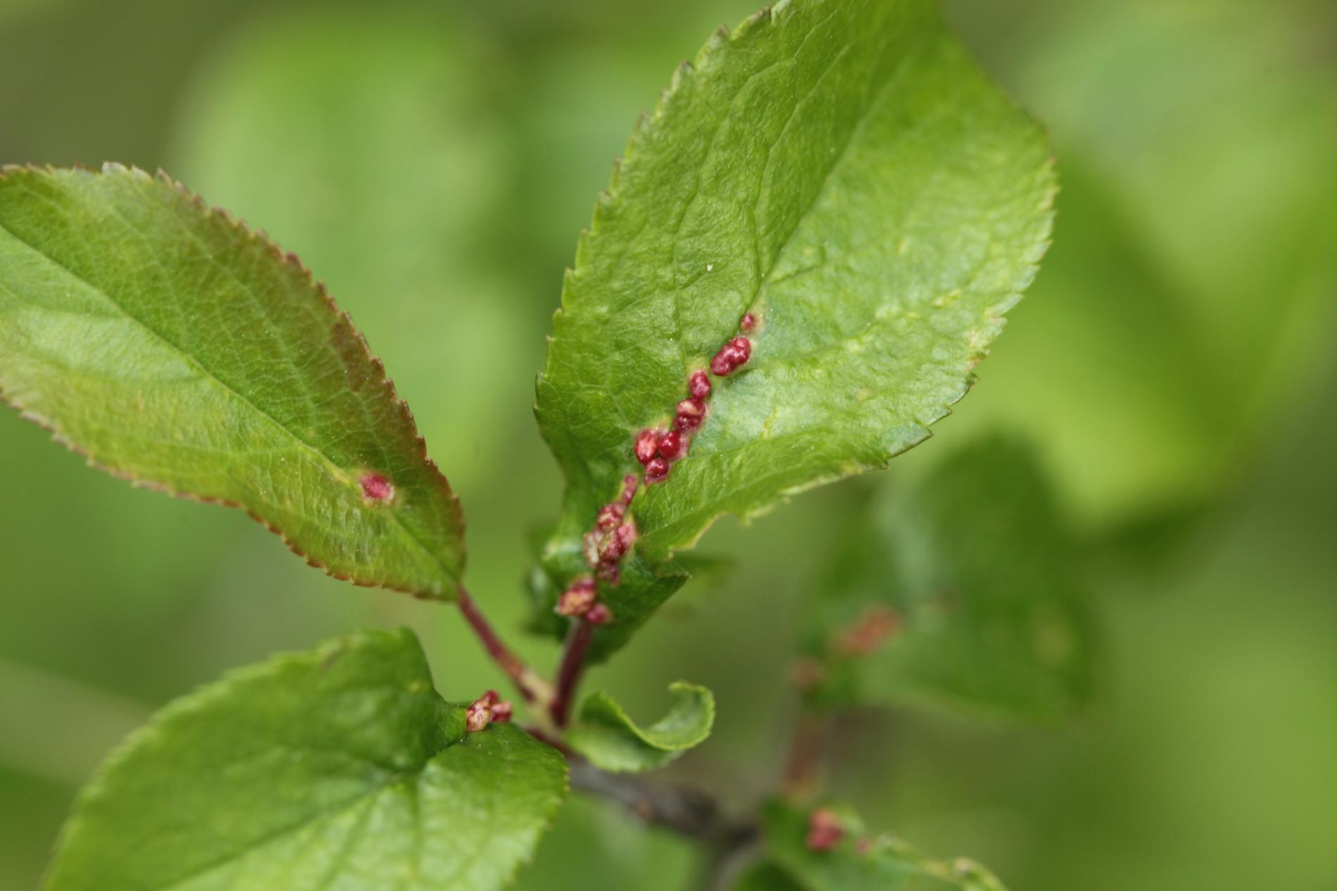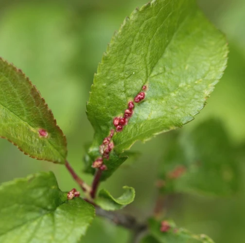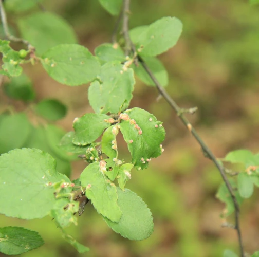Listy trnky obyčajnej bývajú posiate drobnými asi 1 – 3 mm veľkými „bradavičkami“. Tie sú hojnejšie na okraji listu a spôsobujú následné deformácie listov. Vytvárajú sa v druhej polovici leta ako dôsledok pôsobenie červca. Majú zeleno-ružovú farbu. Na jednom liste sa vždy vyskytuje niekoľko „bradavíc“.