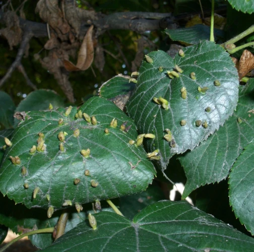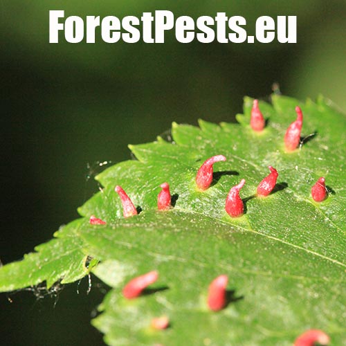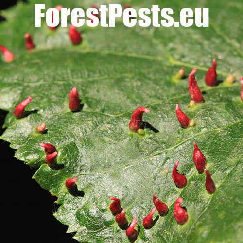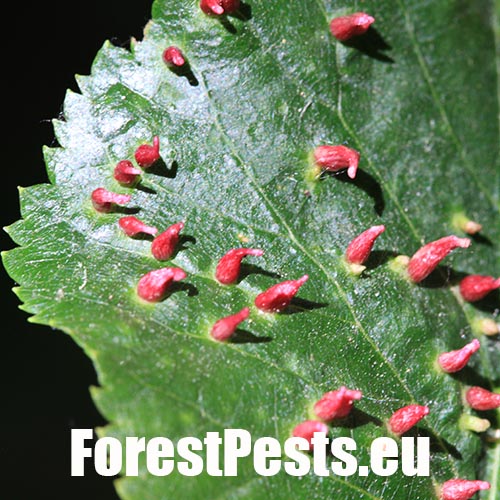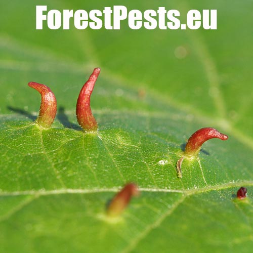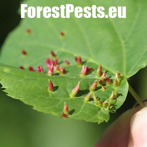 Už od jari spolu s rozvíjajúcimi sa listami rastú na ich vrchnej strane červenozelené, 0,3 – 0,5 mm veľké, podlhovasté hálky. Na spodnej strane takto postihnutých listov sa tvoria okrúhle, prípadne nepravidelné plstnaté vankúšiky. Hálok býva na jednom liste obyčajne niekoľko. Hojný druh, ktorý nespôsobuje vážnejšie poškodenie.