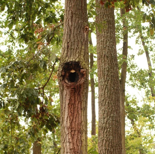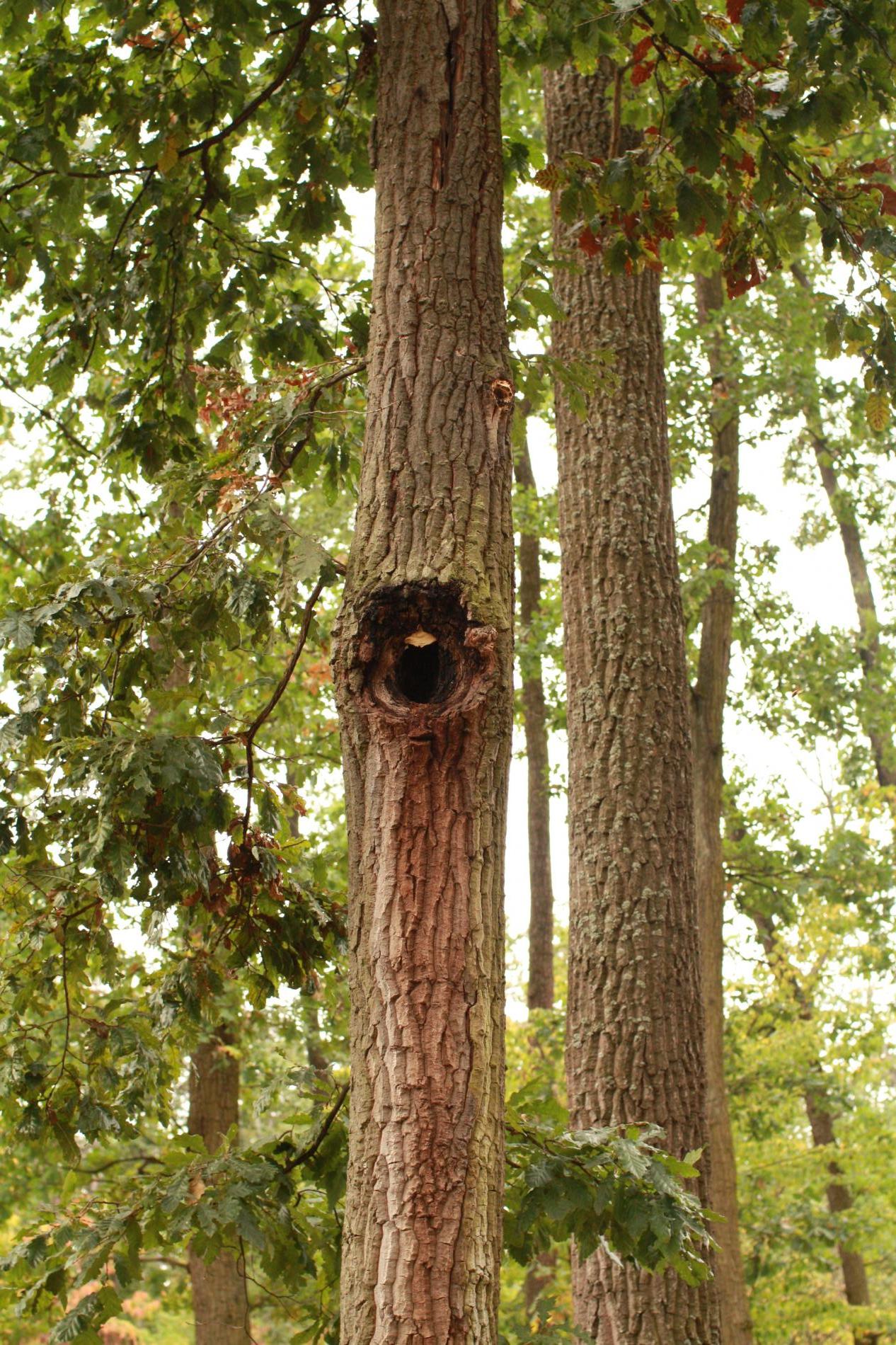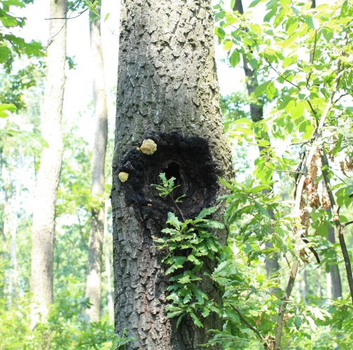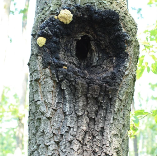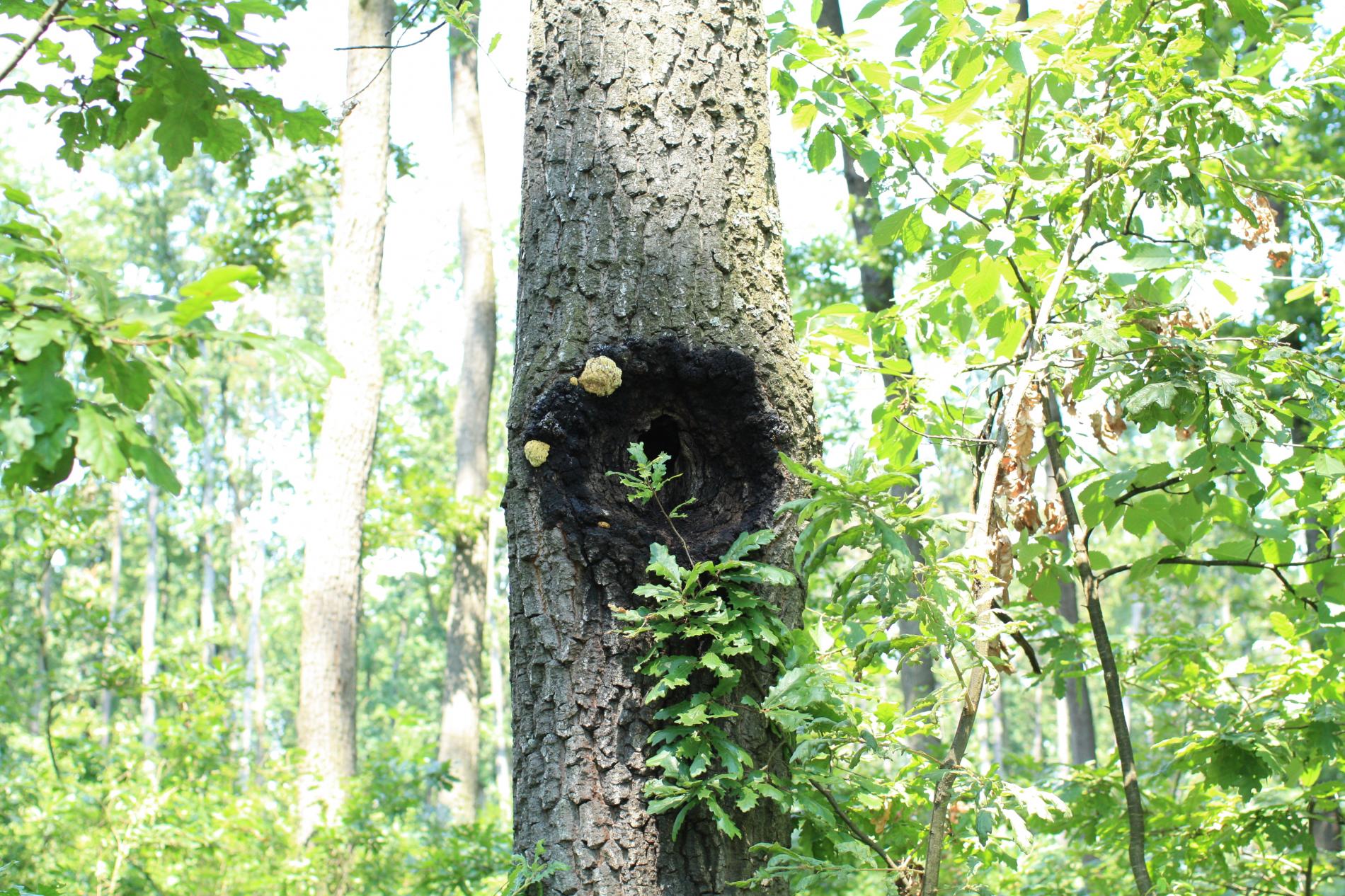 Prítomnosť dier v kmeni najmä duba cerového s čiernym okrajom.