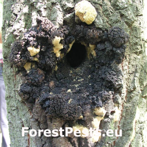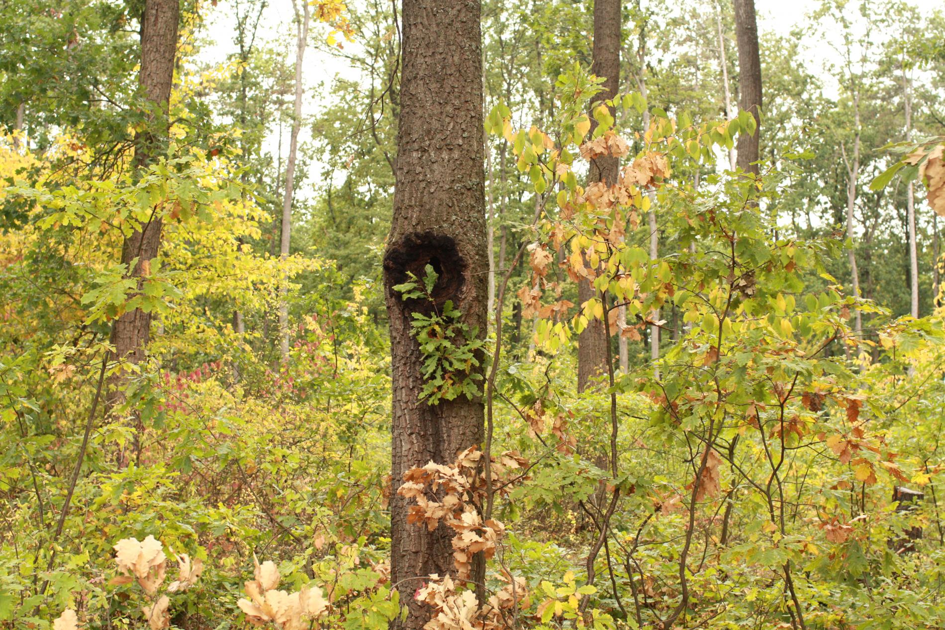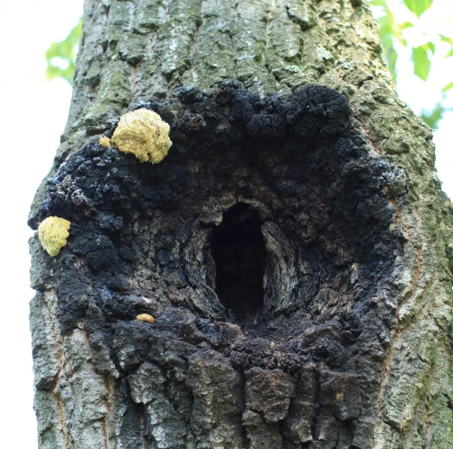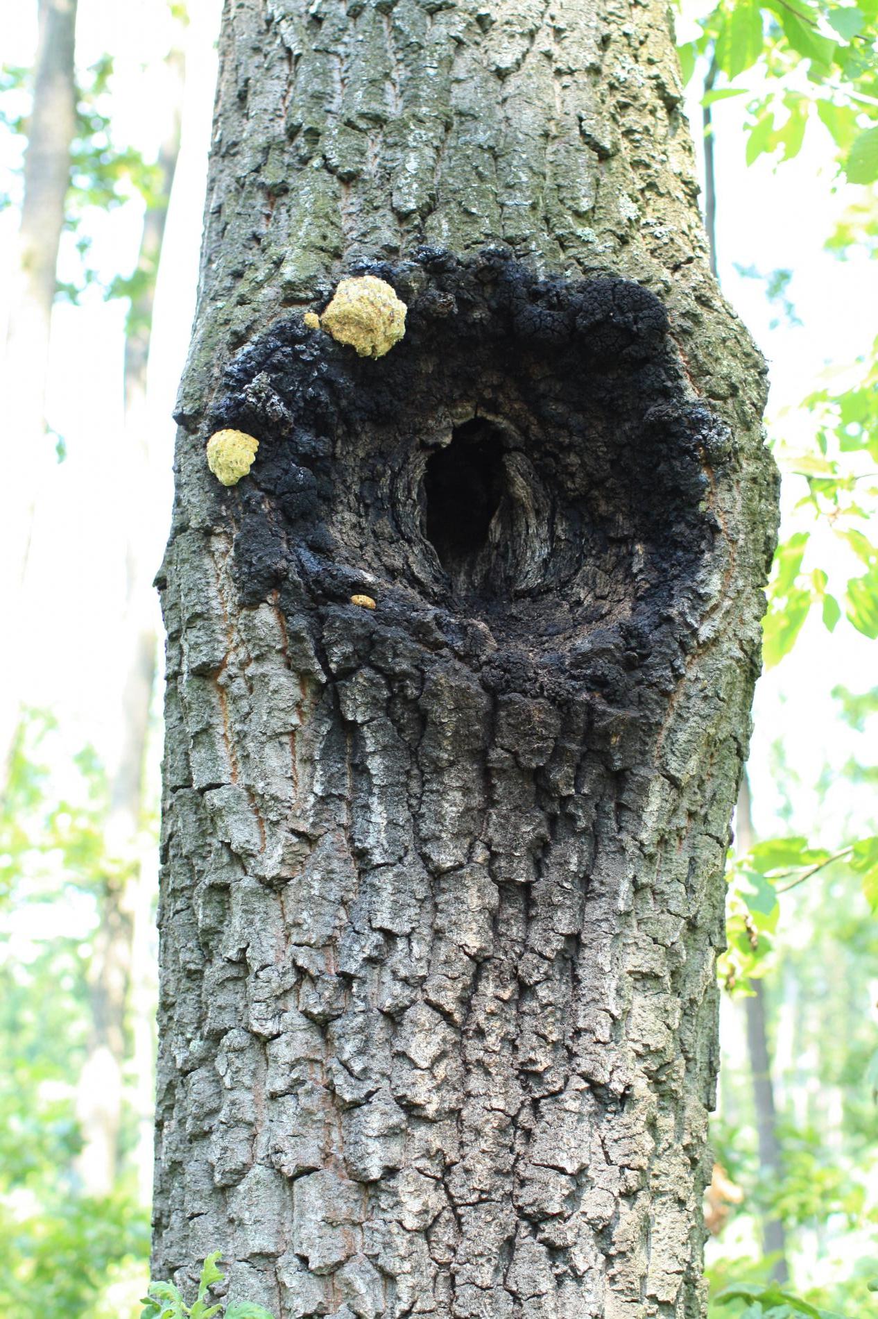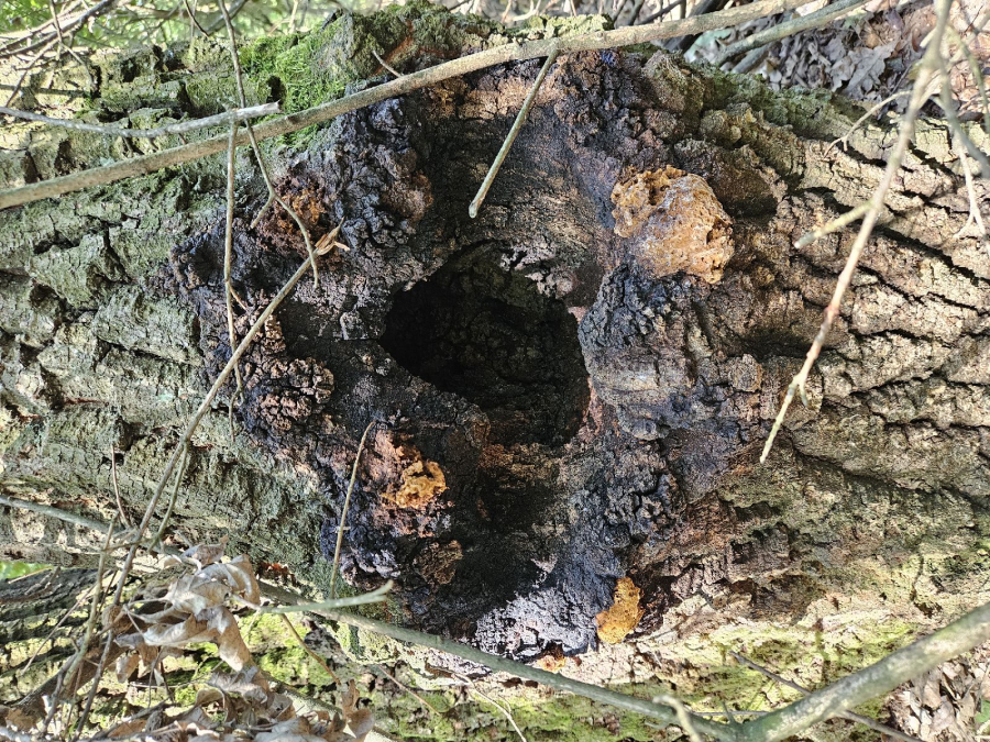 Prítomnosť dier v kmeni najmä duba cerového s čiernym okrajom.