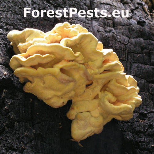 Veľké a žiarivé plodnice sú viditeľné už z veľkej diaľky. Povrch klobúka je oranžovo žltý, spodná pórovitá strana je sírovo žltá. Dužina mäkká, za sucha drobivá biela až žltkastá. Mycélium spôsobuje hnedú hranolčekovitú hnilobu koreňových nábehov živých listnáčov a ihličnanov, ako aj pňov a odumretých stromov a vetiev. Biele plsťovité zvyšky mycélia sú nápadné v trhlinách hnijúceho a scvrkávajúceho sa dreva. Je to jedlá huba, v Anglicku jej ľudový názov je „kuracina z lesa“.