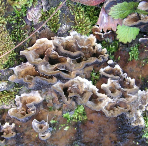 Plodnice sú polorozliate, ktoré od substrátu polkruhovito odstávajú a vytvárajú tak strechovite nad sebou usporiadané klobúčiky. Klobúk je 1 – 5 cm široký, 0,2 – 0,5 cm hrubý, za mlada na vrchnej strane jemne ostnatý, potom lysý, okrovosivý až hnedý, okraj za mlada vždy biely. Póry sú drobné, čiastočne nepravidelné, najprv biele, po stlačení sivohnedé, neskôr popolavo sivé až sivočierne. Plodnice sú jednoročné, rastú v lete a v jeseni na rôznych listnáčoch.