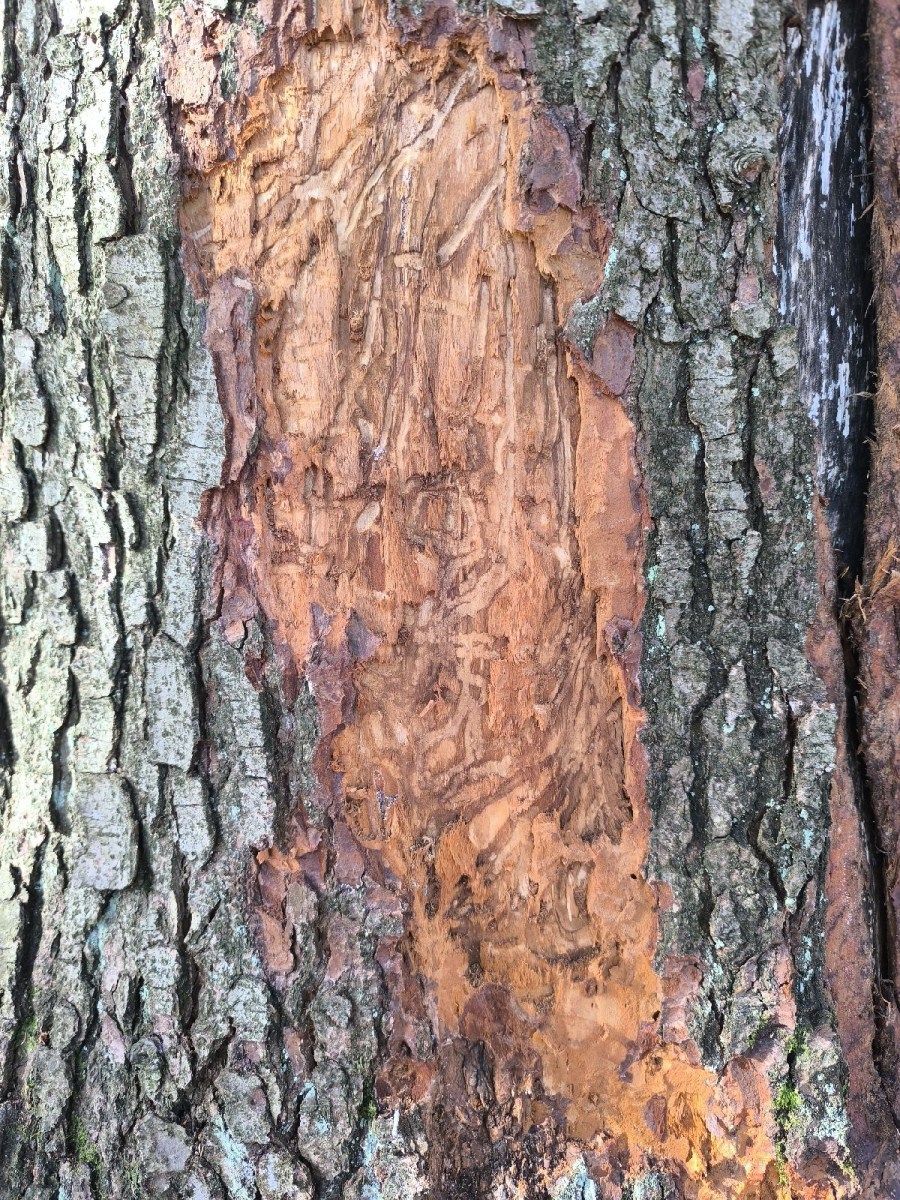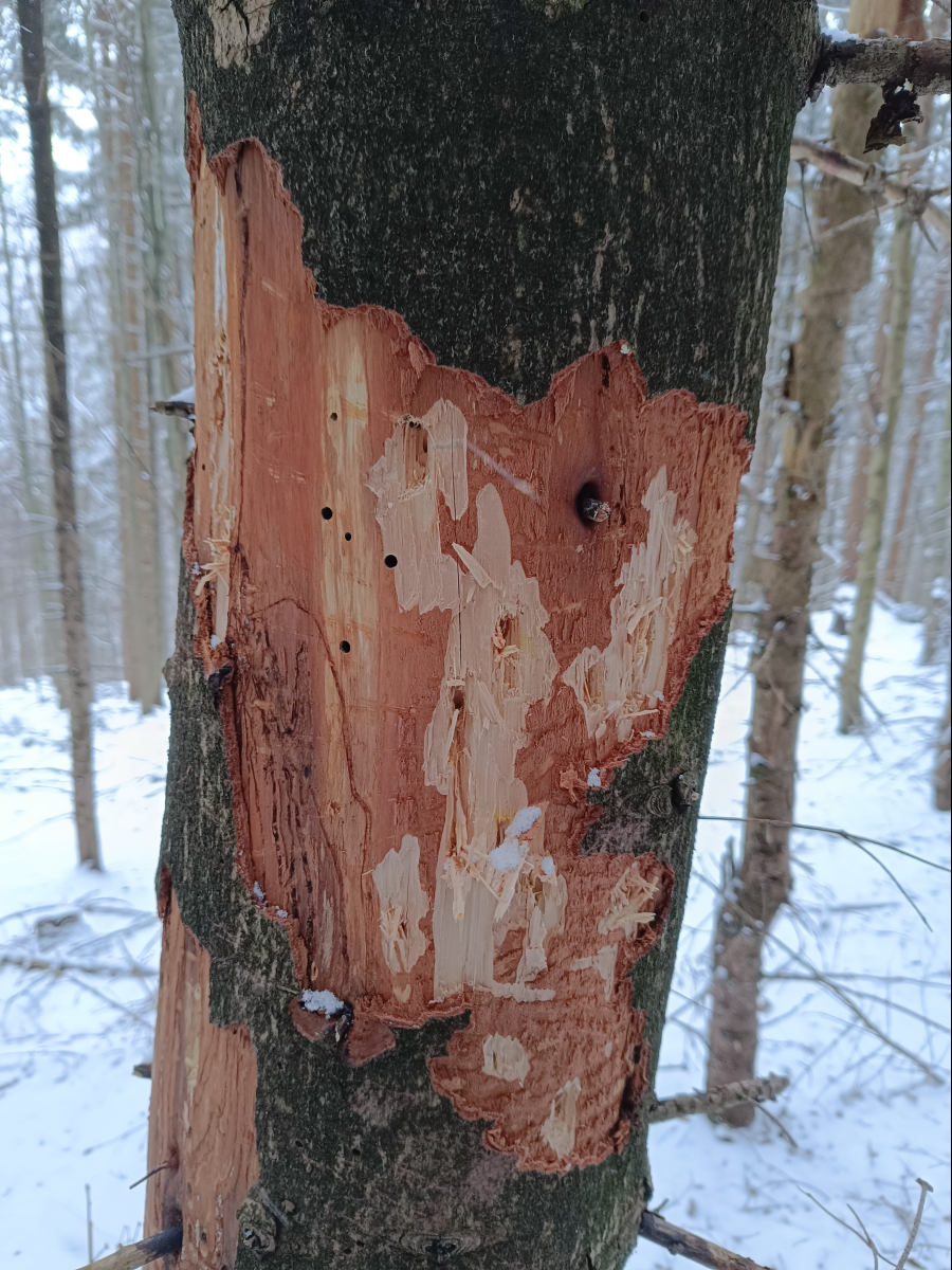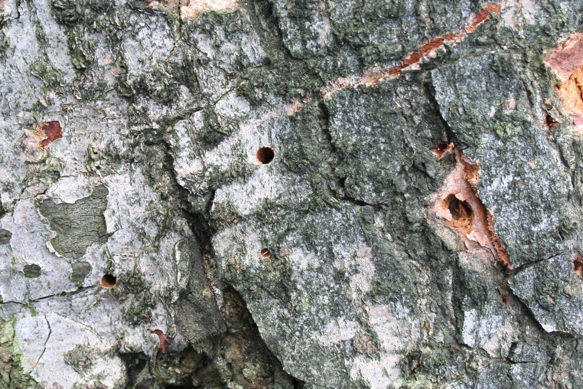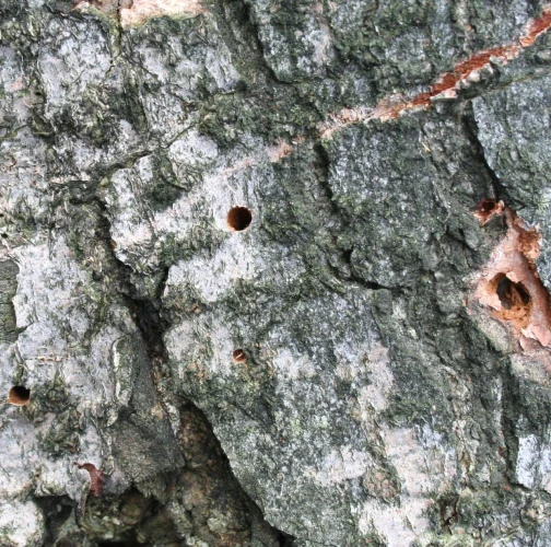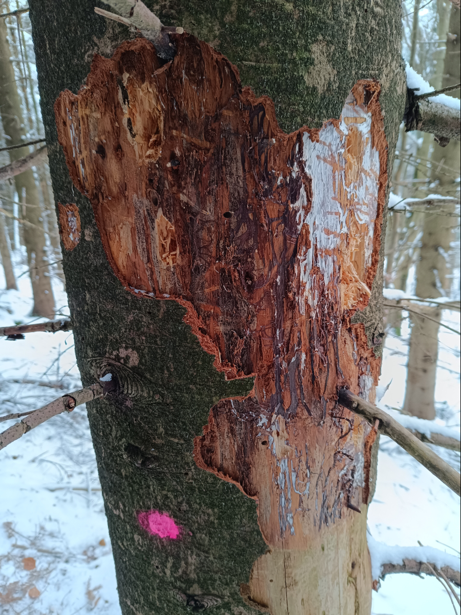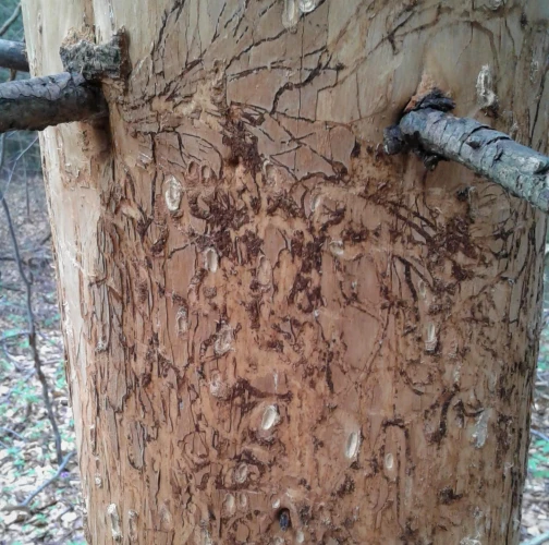 Larvy a požerky pod kôrou kmeňov jedlí.