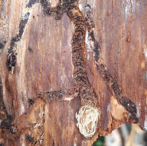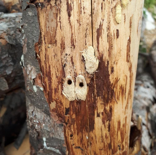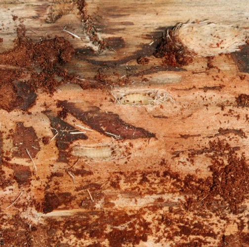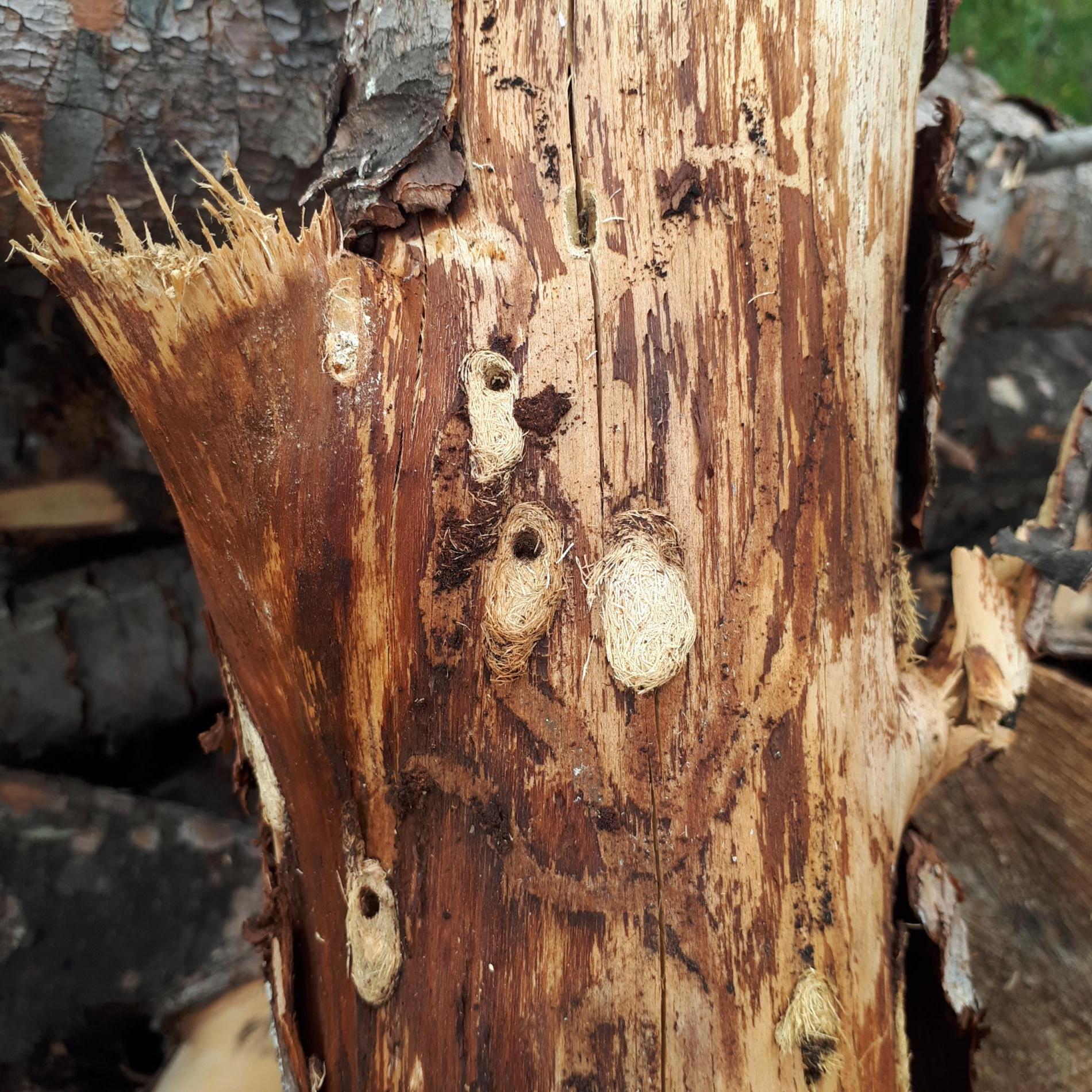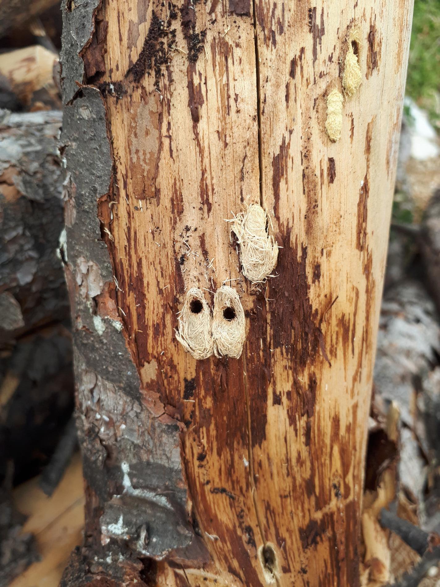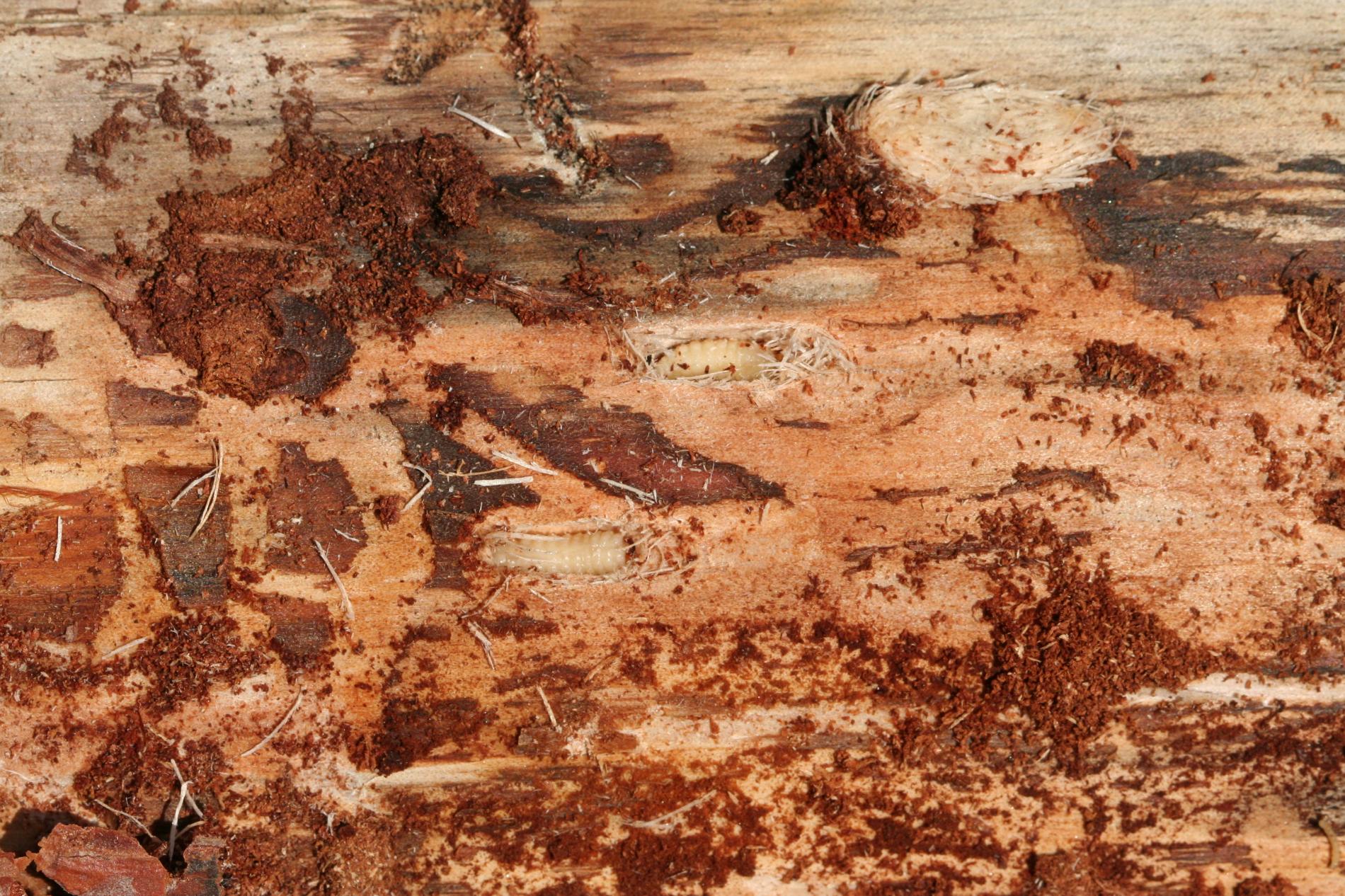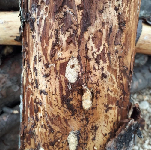Kukelné kolísky tesne pod kôrou vyplnené drvinou.