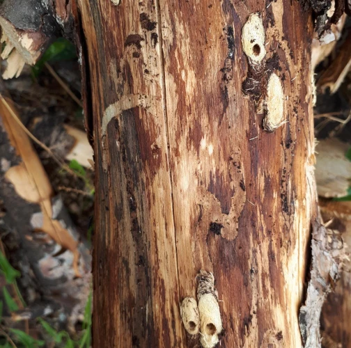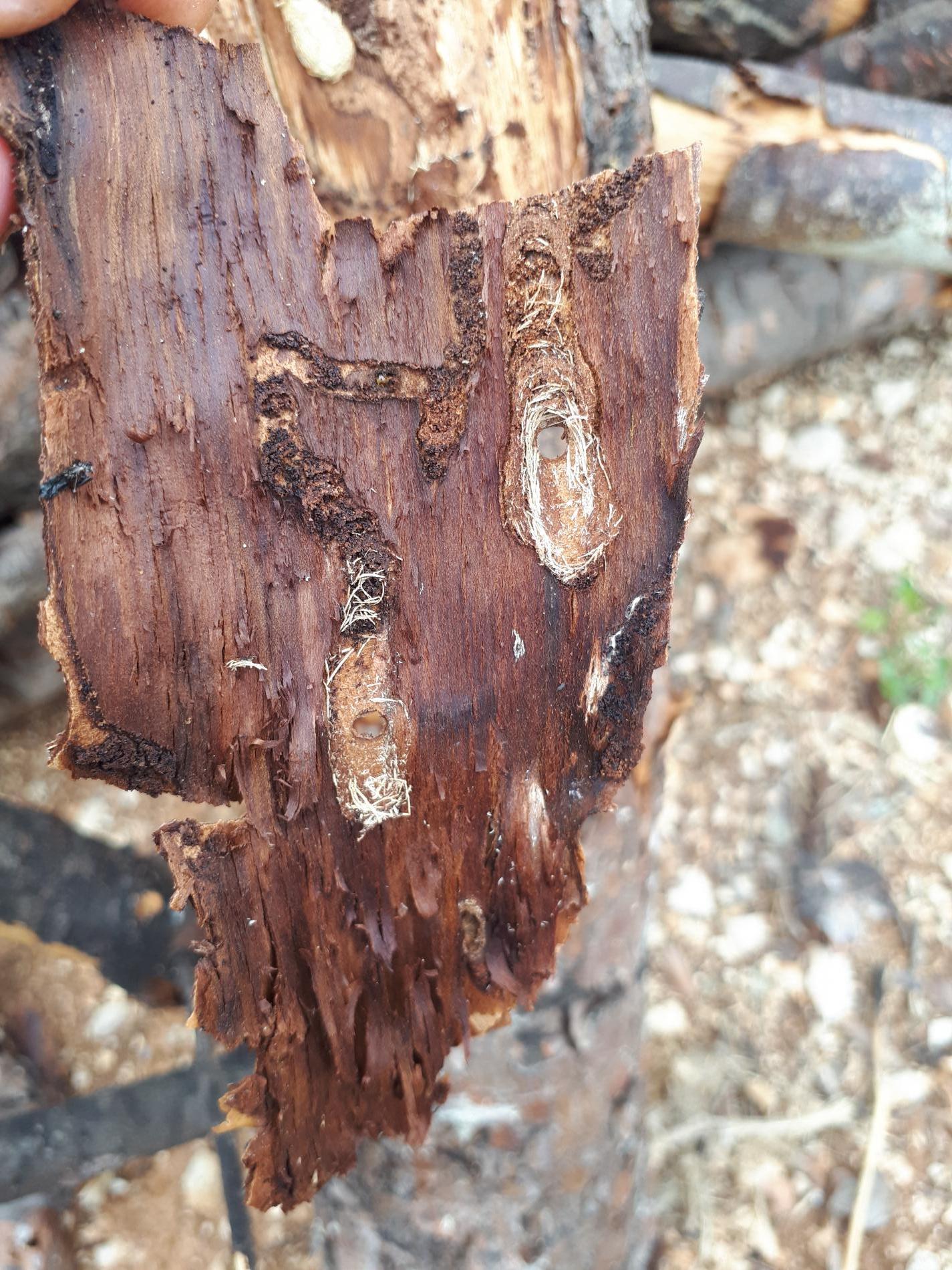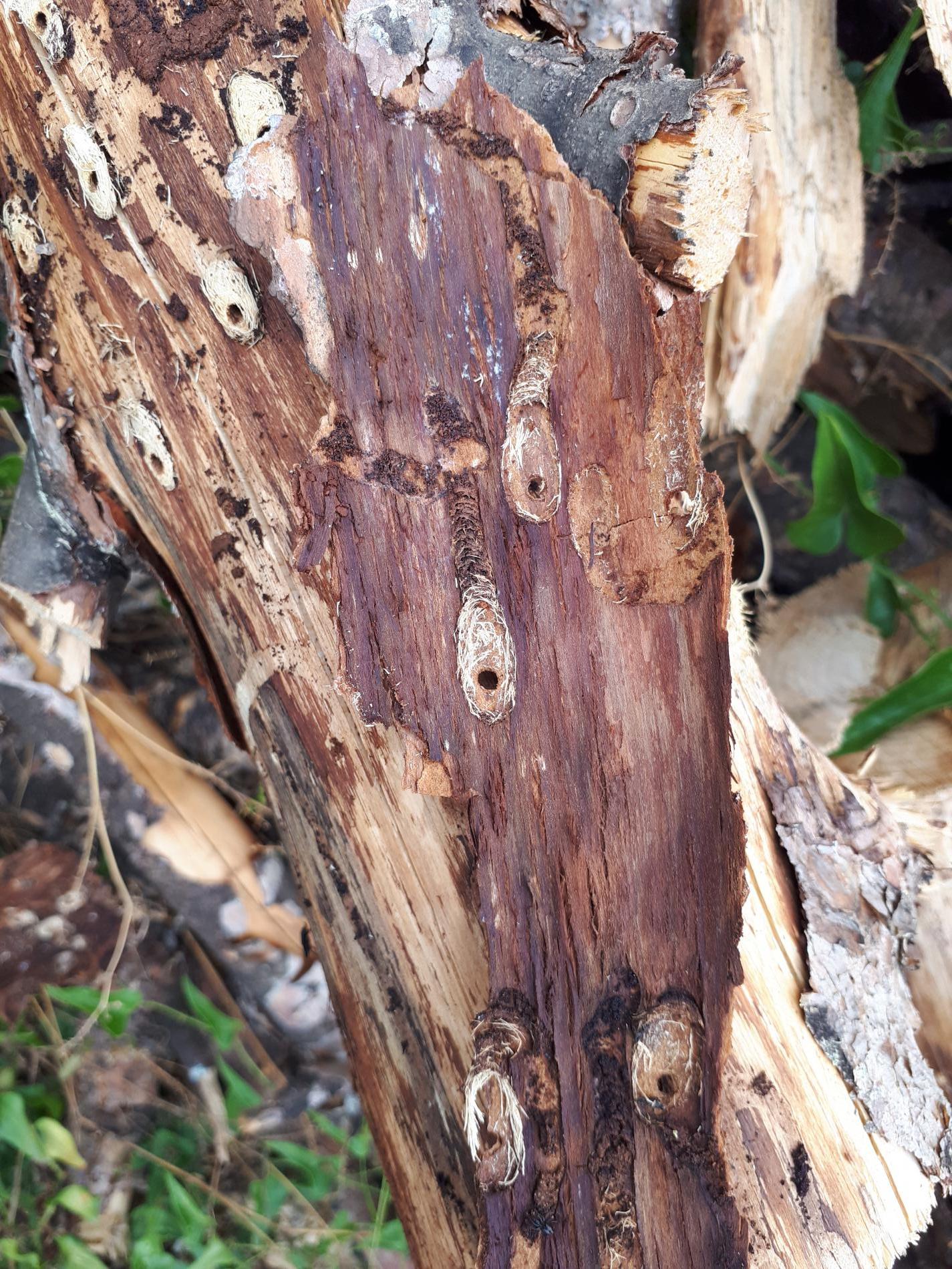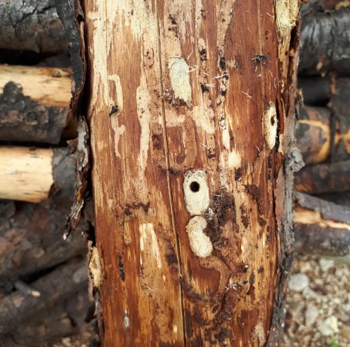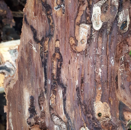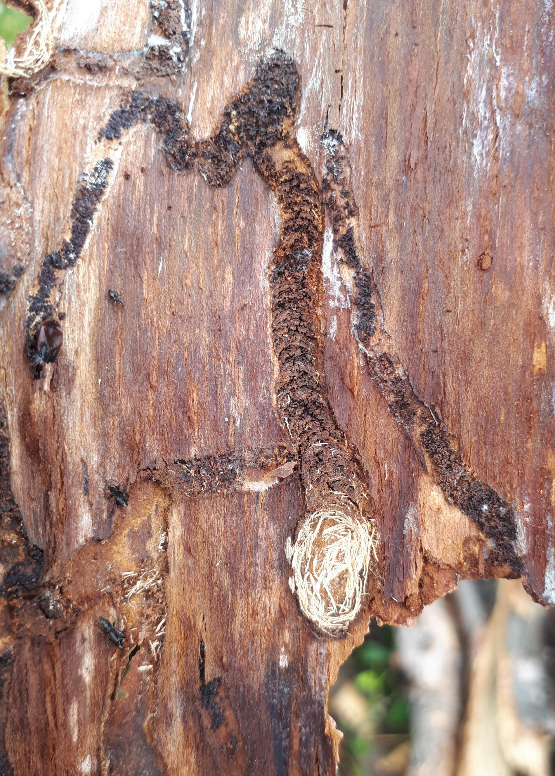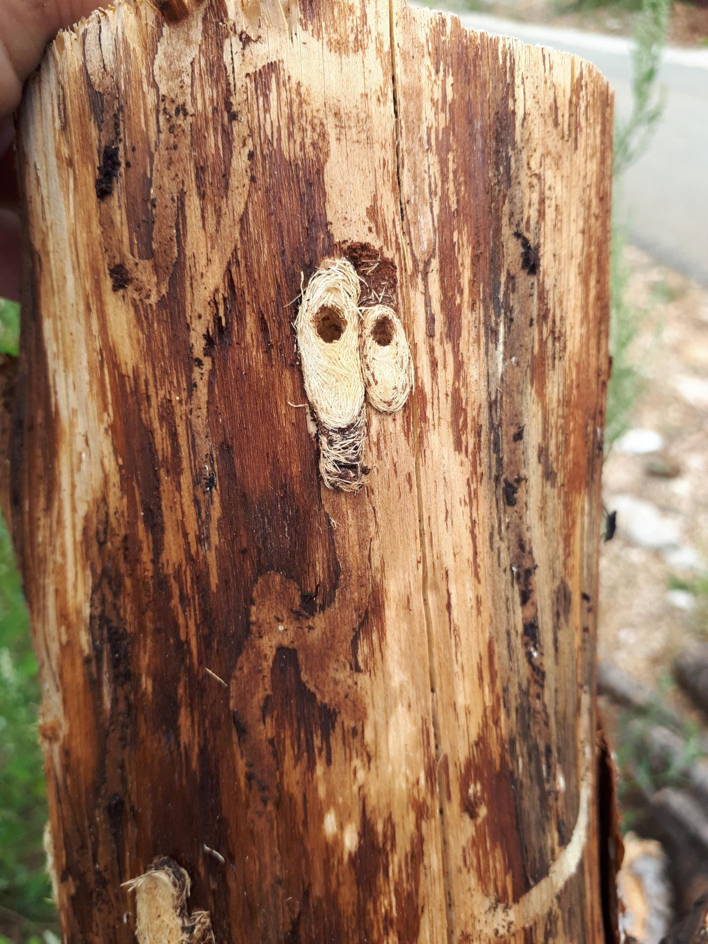 Kukelné kolísky tesne pod kôrou vyplnené drvinou.