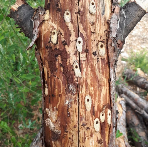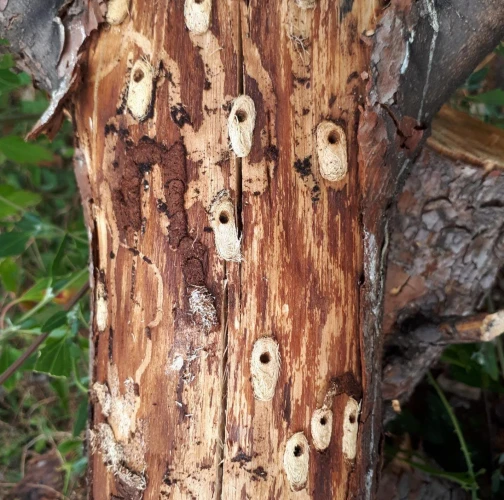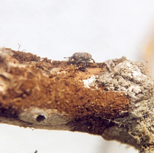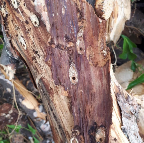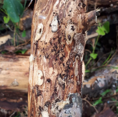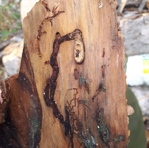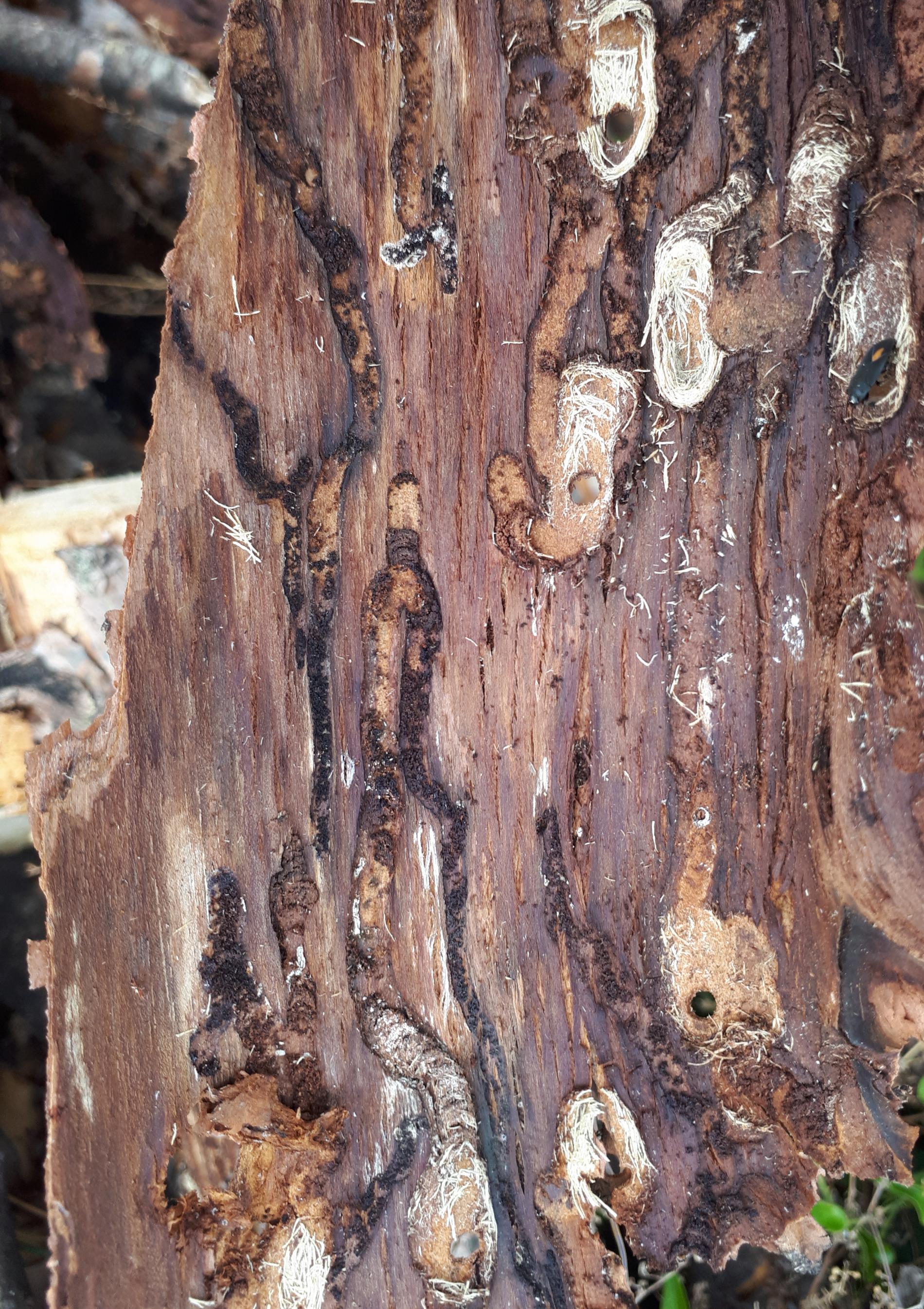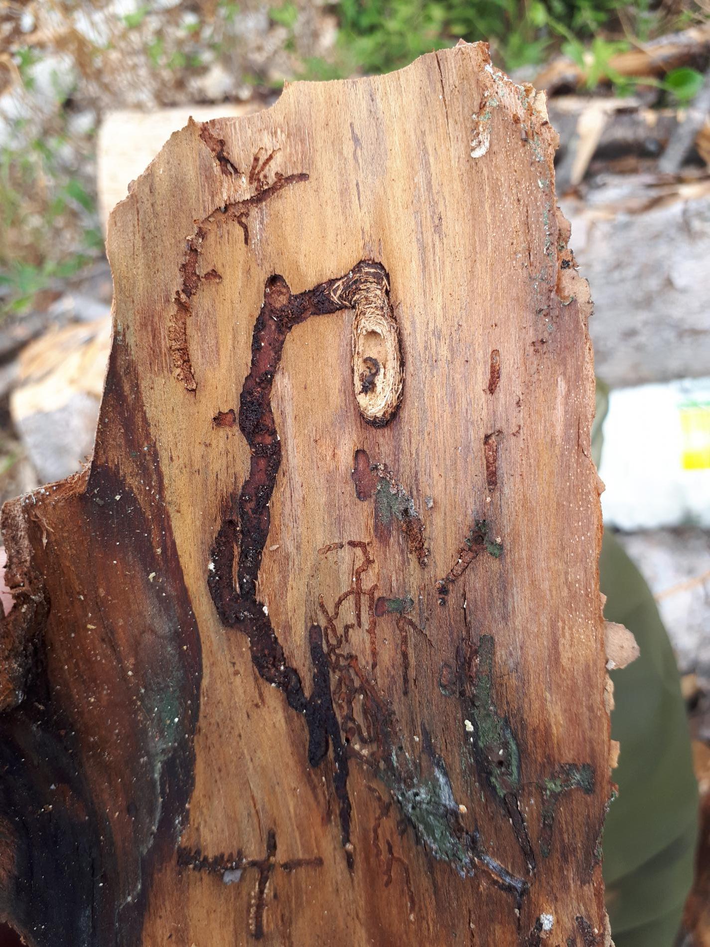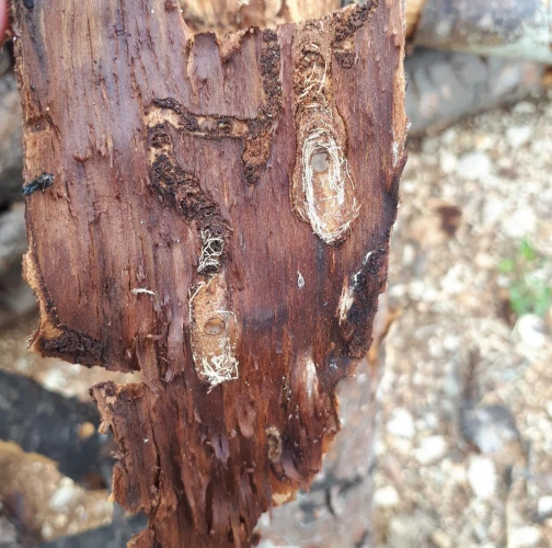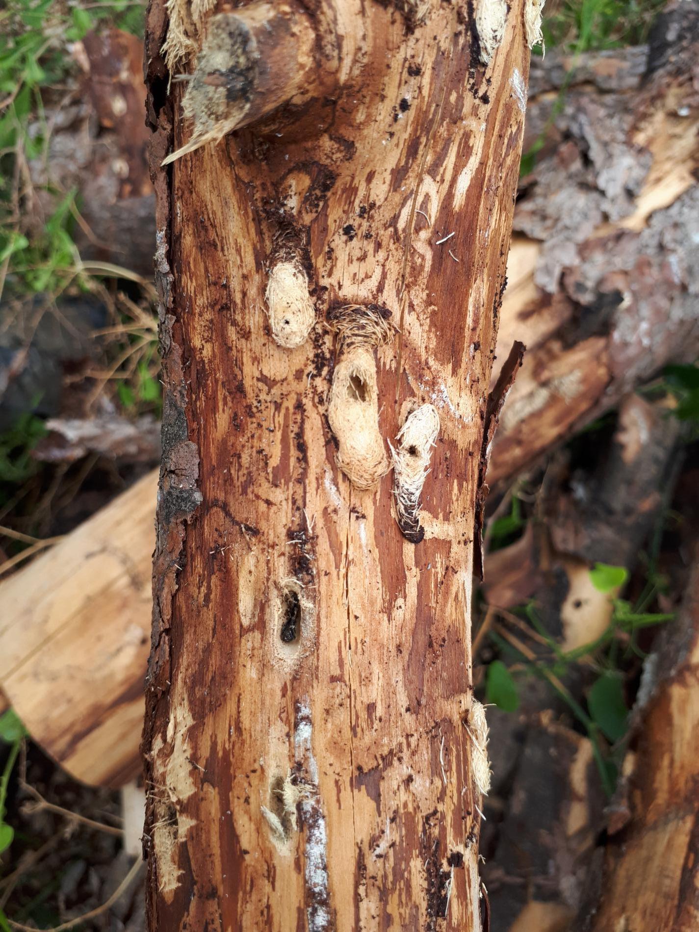 Kukelné kolísky tesne pod kôrou vyplnené drvinou.
