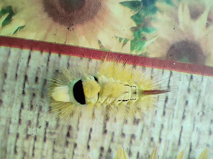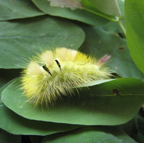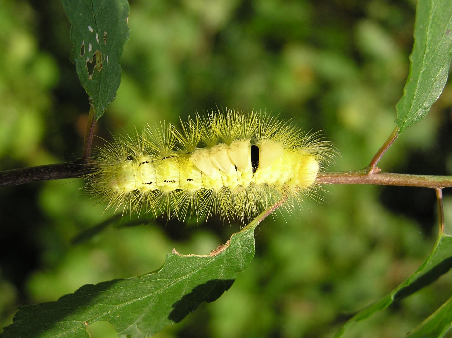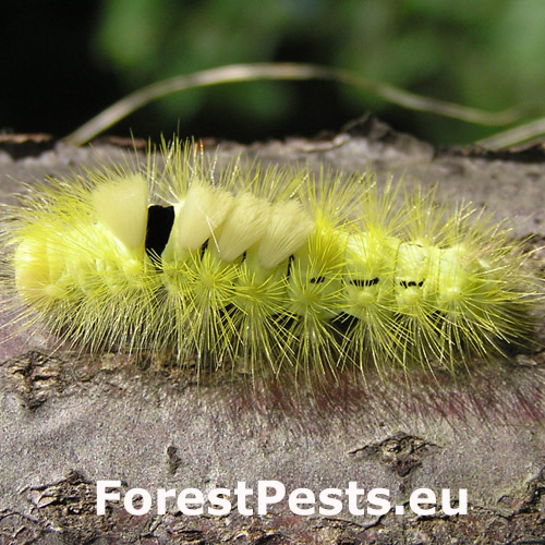 Stredne veľký, sivohnedý motýľ. Samička znáša vajíčka v skupinkách po 50 – 100 kusov na kmeň stromu v jednej vrstve. Sú sivo sfarbené a na kmeni stromu sa dajú len ťažko objaviť. Húsenice sa liahnu v júli. Chlpatá húsenica je pekne žlto zeleno sfarbená, so štyrmi skupinami dlhších žltých štetín na vrchnej strane, medzi ktorými sú zamatovočierne zárezy. Do jesene sa stihne zakukliť. Prezimuje ako kukla. Mladé húsenice najskôr dierkujú listy, vo vyšších instaroch ich požierajú celé. Poškodenie býva viditeľné koncom júla a v auguste. Počas gradácie húsenice často skonzumujú všetku zelenú hmotu v poraste. Môže sa kalamitne premnožovať.