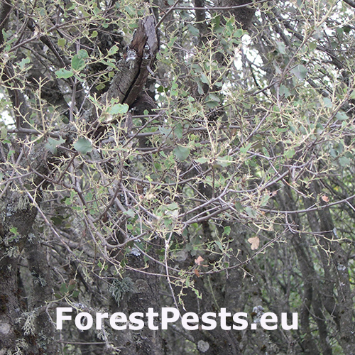 Na listoch napadnutých stromov sú viditeľne poškodené okraje spôsobené žerom húseníc. Pri silnom napadnutí môže dôjsť k čiastočnej defoliácii.