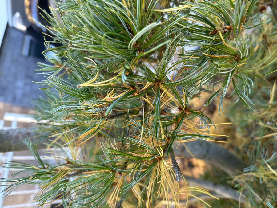 Čierne bodky, viditeľné priečne pásiky na ihliciach.