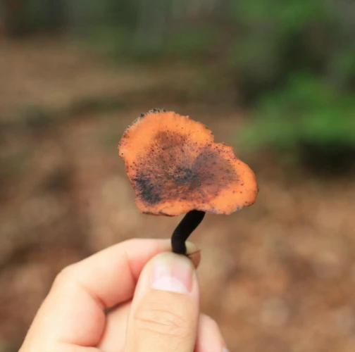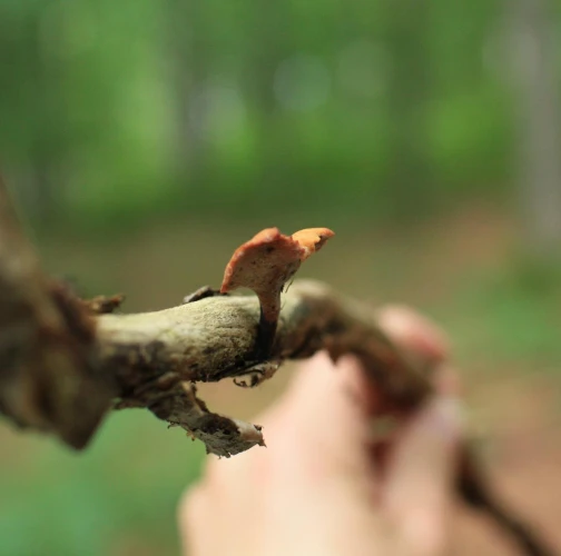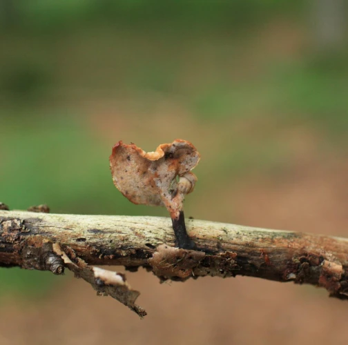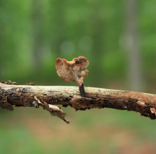 Prítomnosť plodnice hnedým až škoricovohnedým hlúbikom.