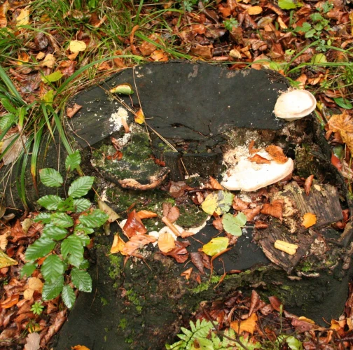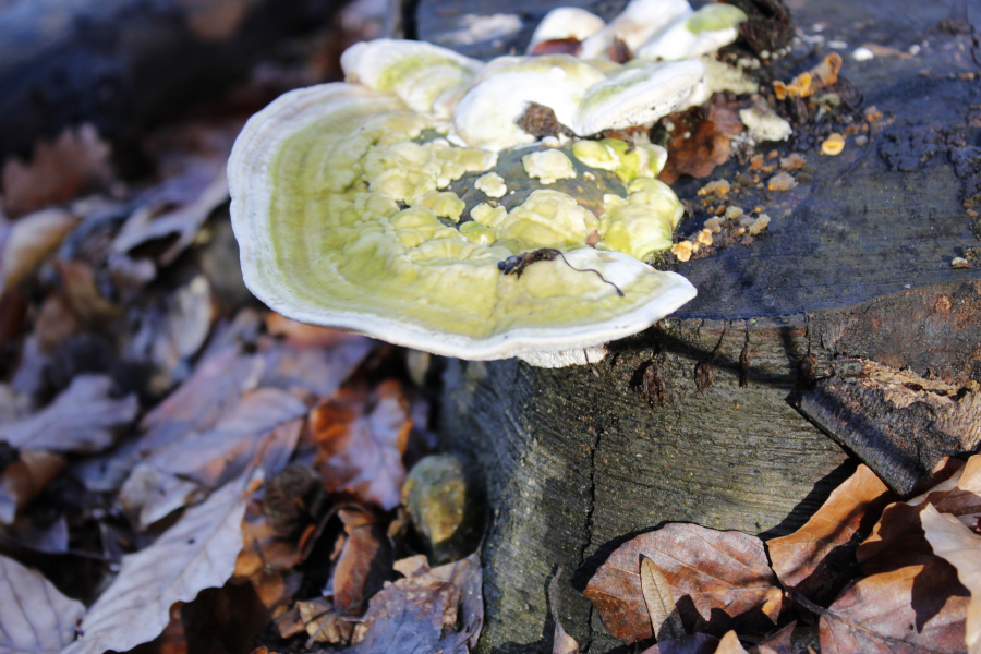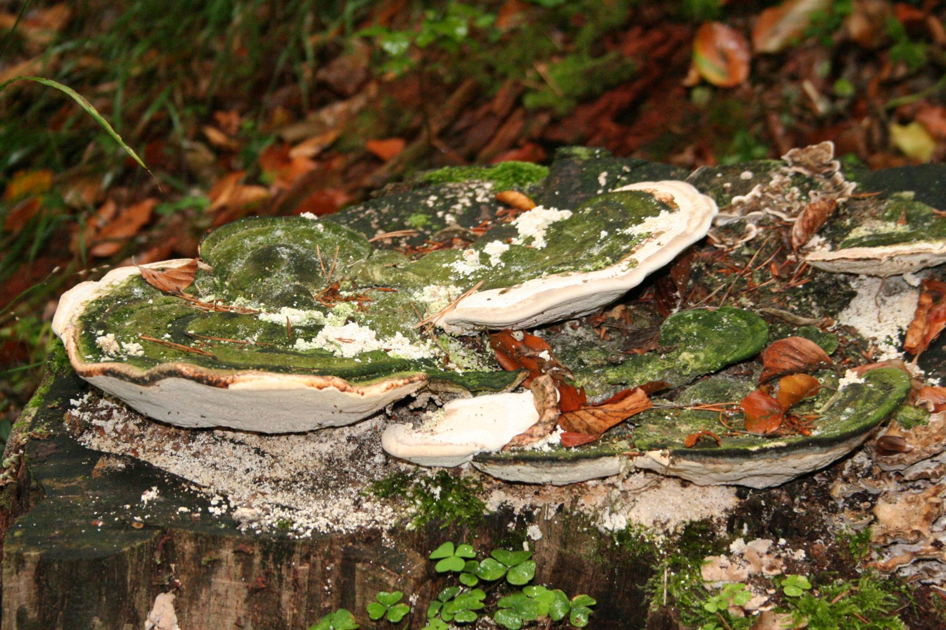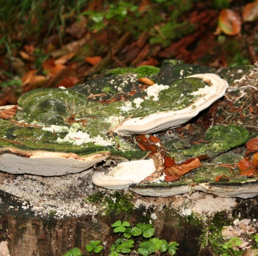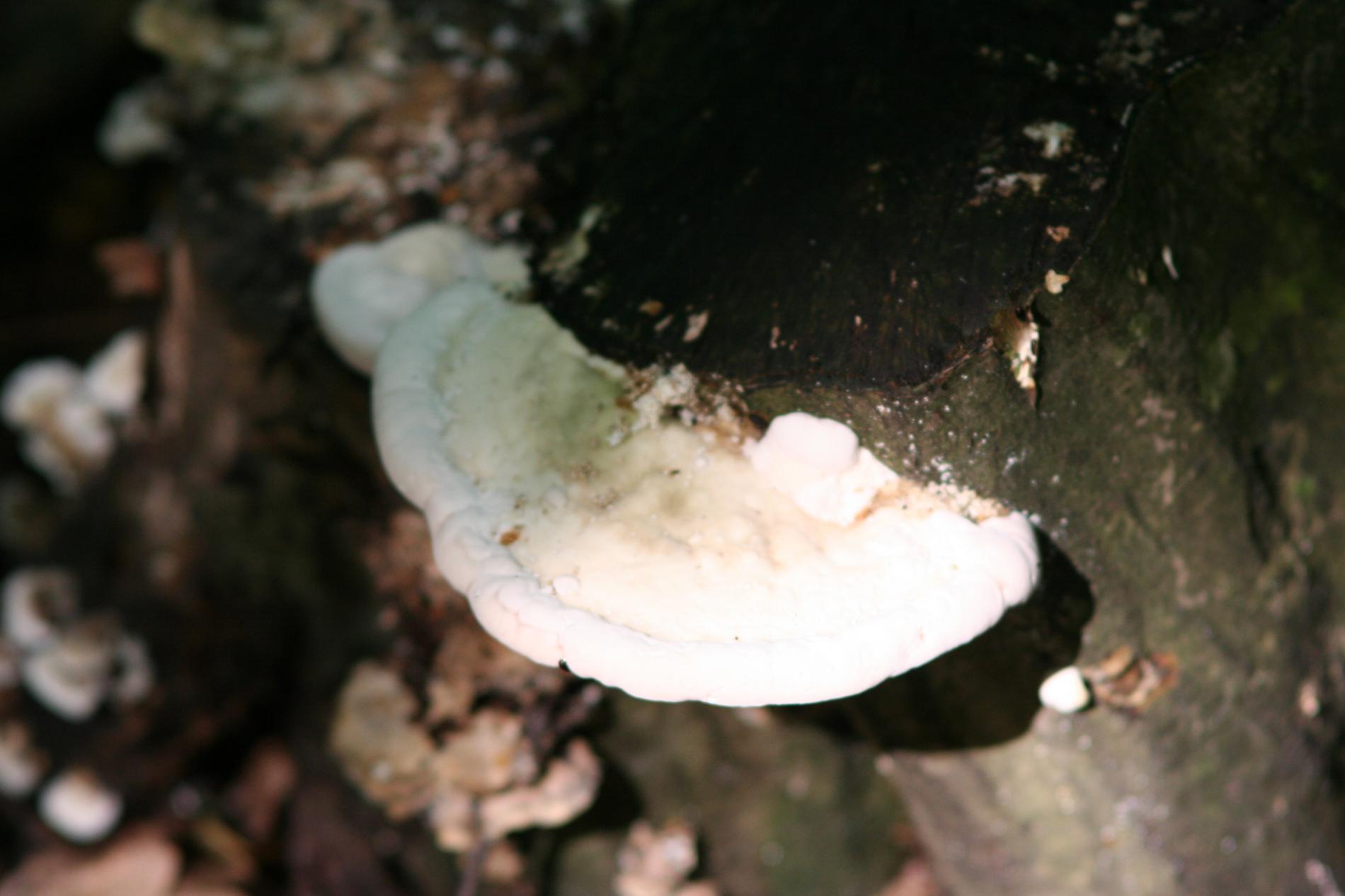 Biele malé plodnice na odumretom dreve.