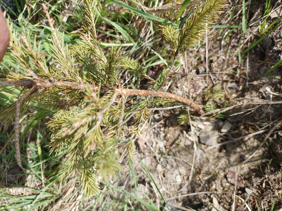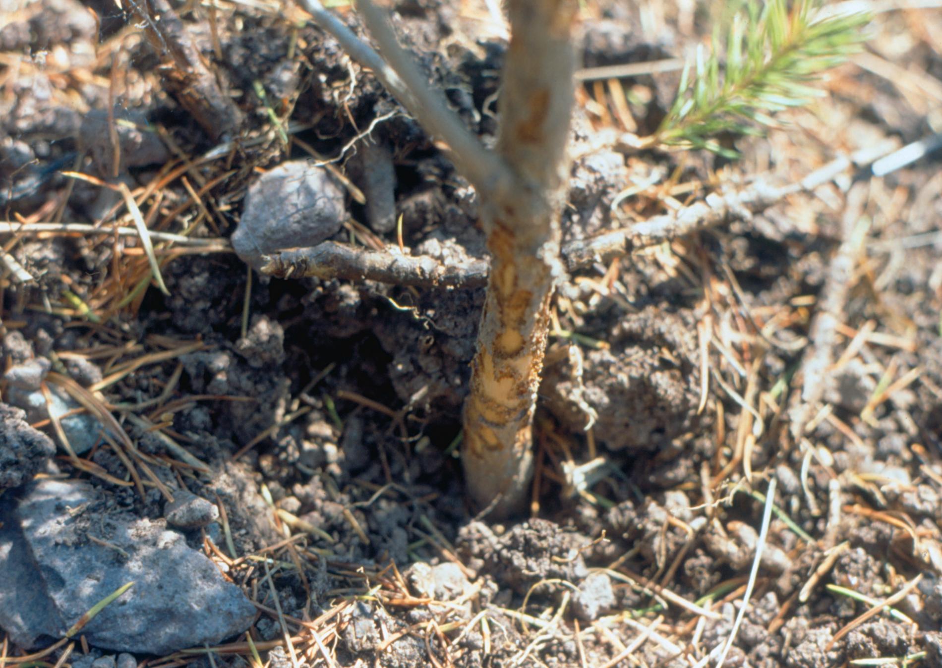 Plošné poškodenie kmienkov a vetiev mladých stromčekov.