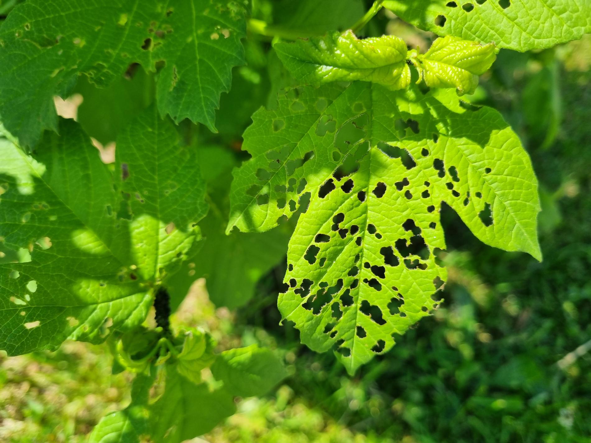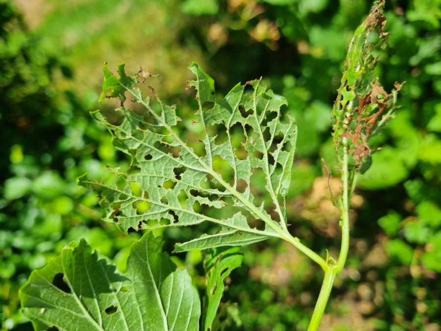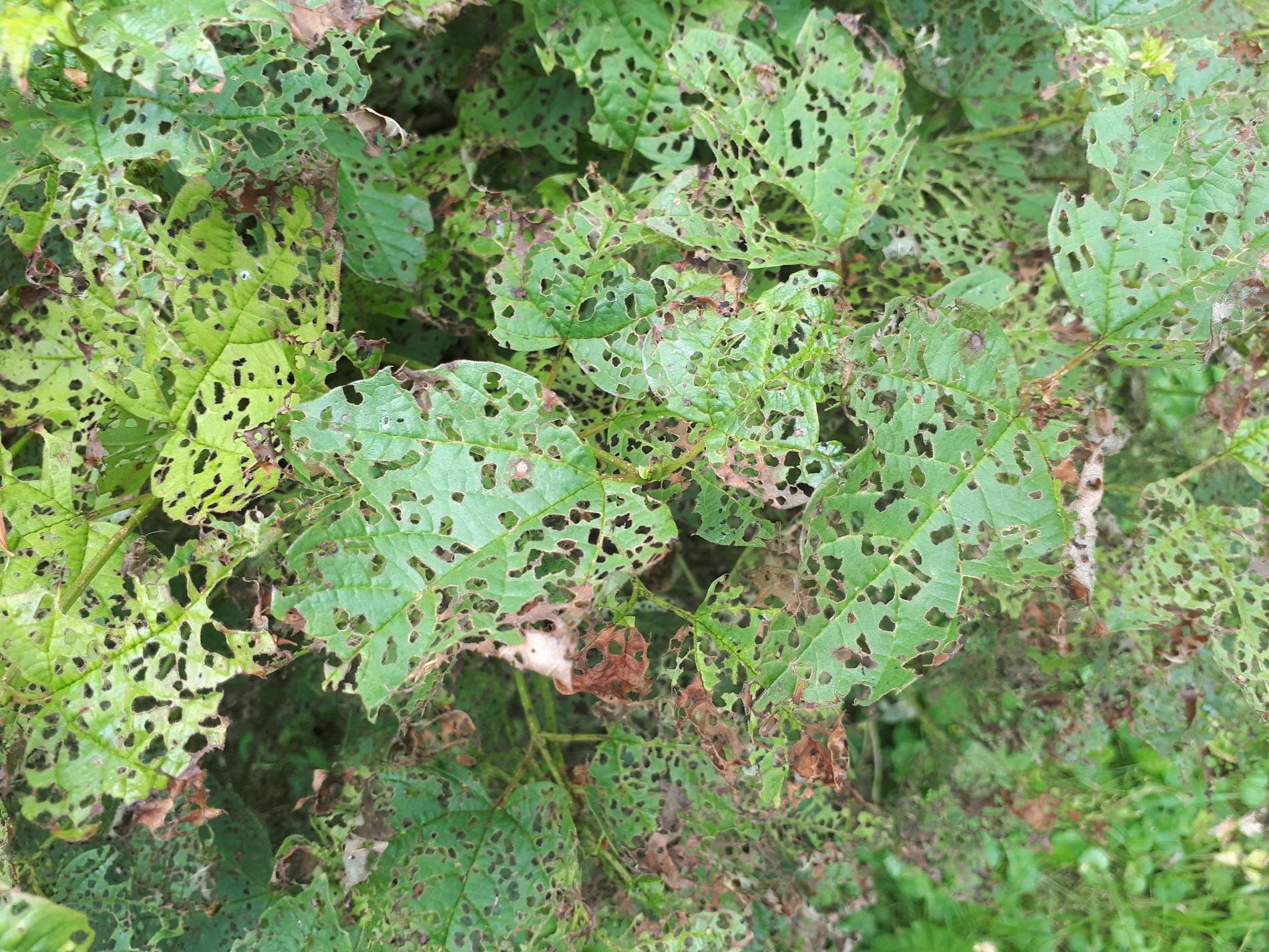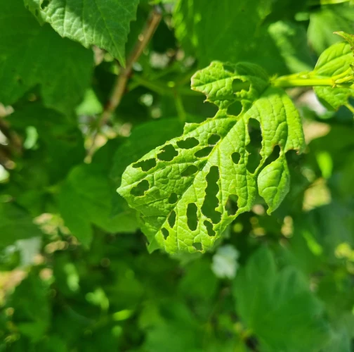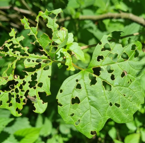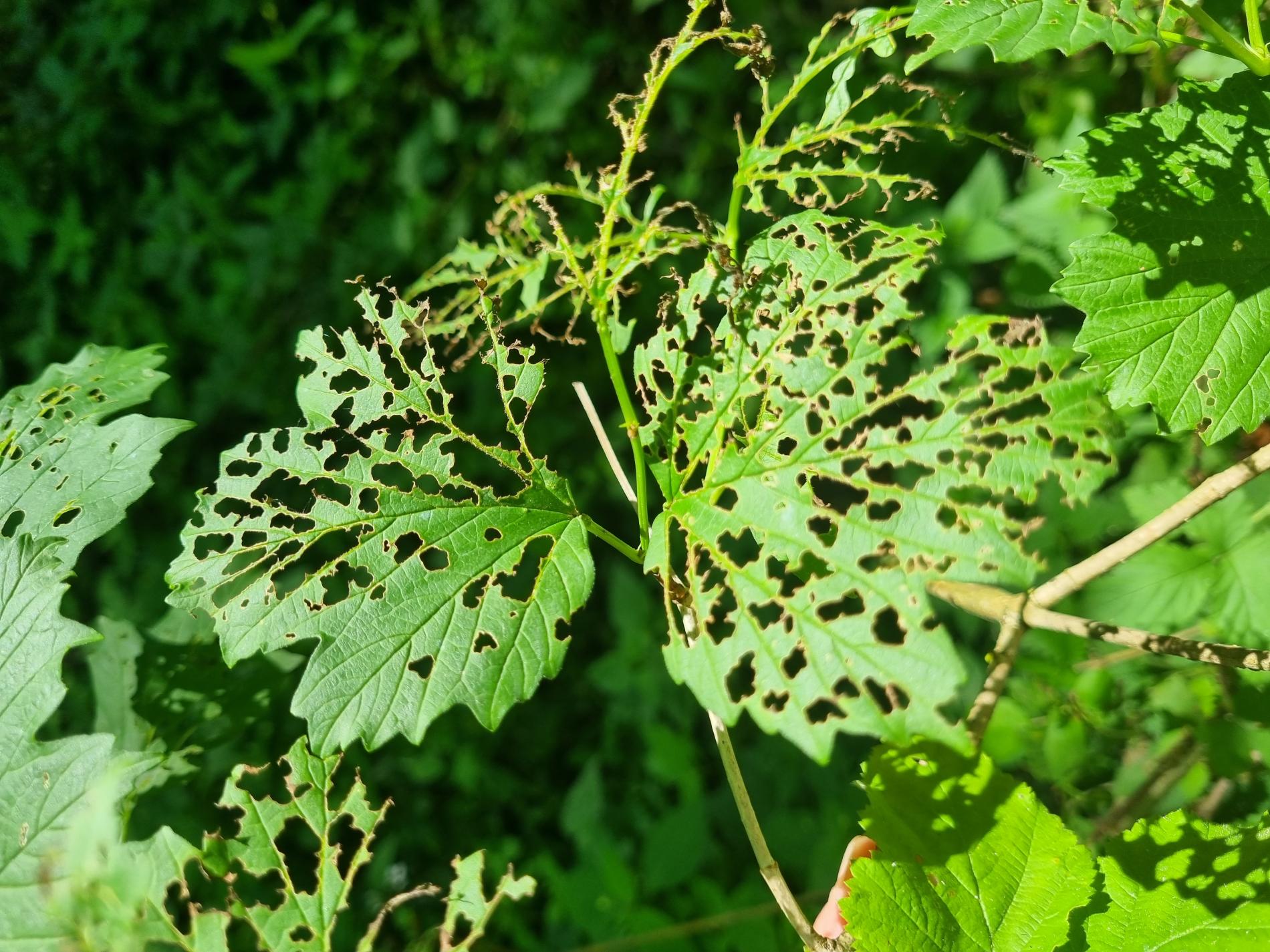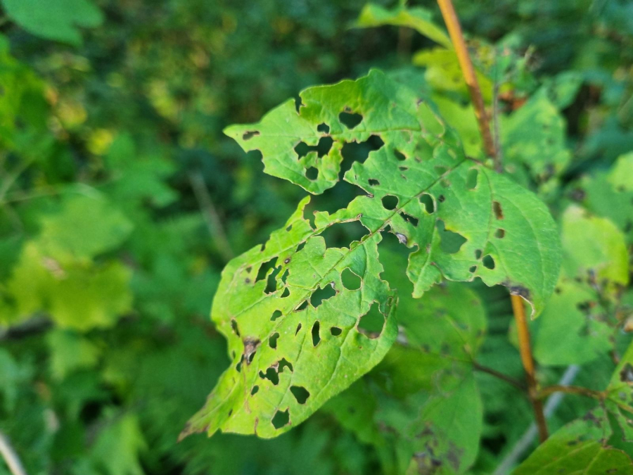 Kalina úplne alebo z časti odlistená. V listoch sú dierky.