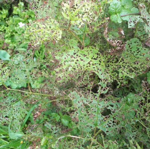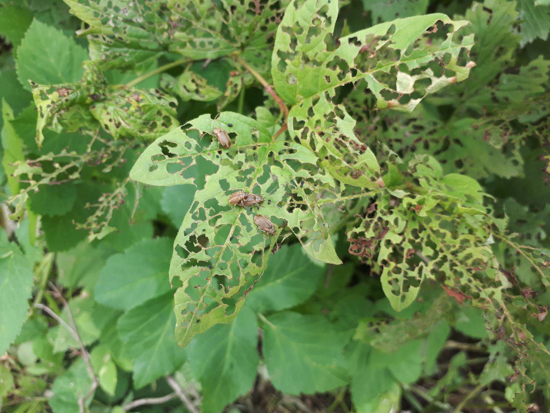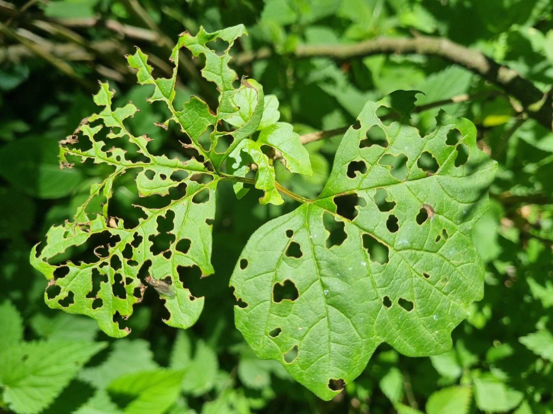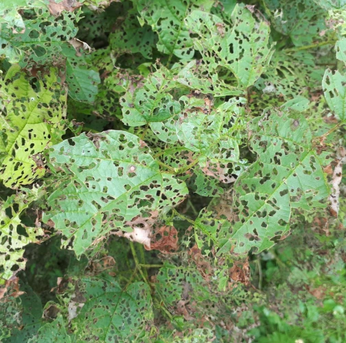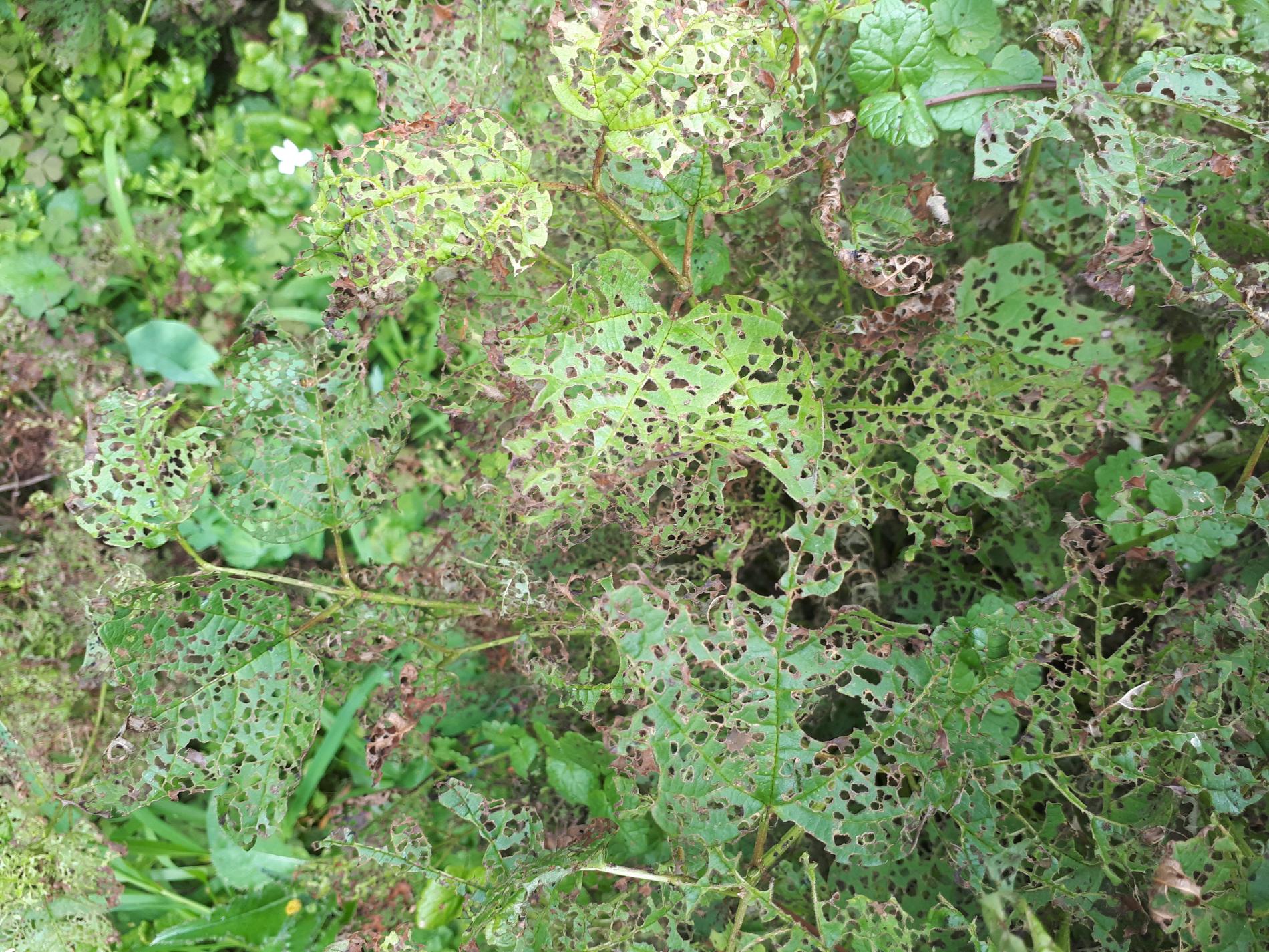 Kalina úplne alebo z časti odlistená. V listoch sú dierky.