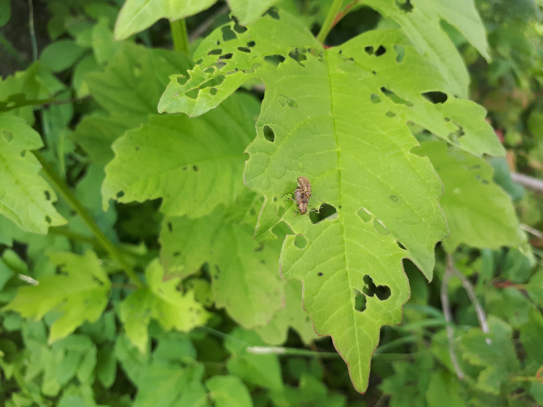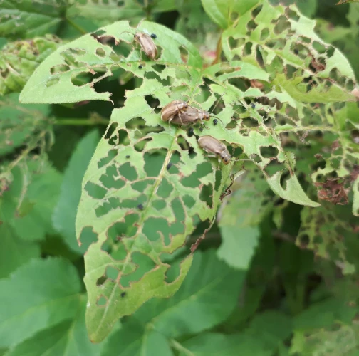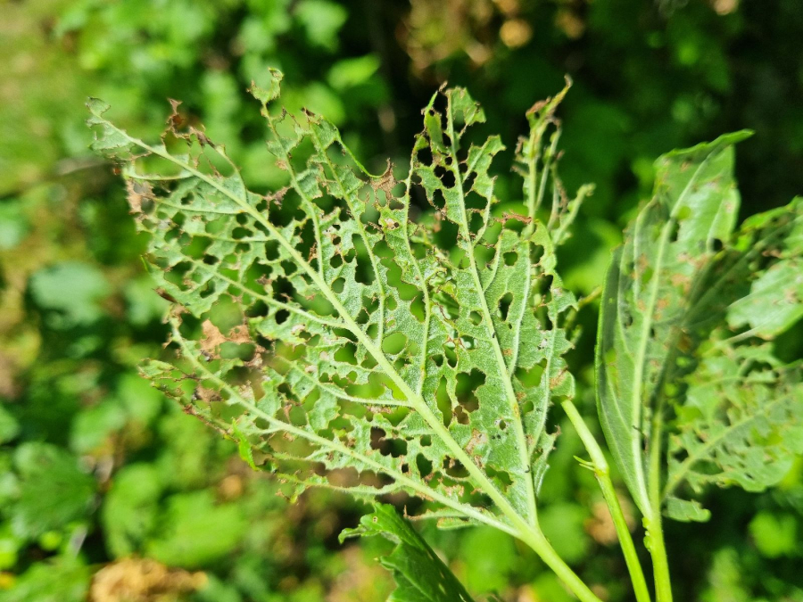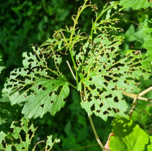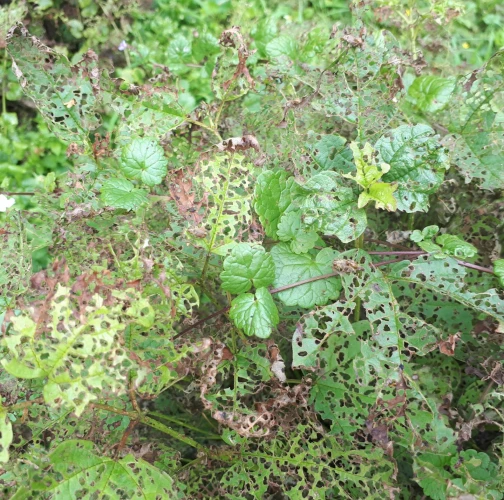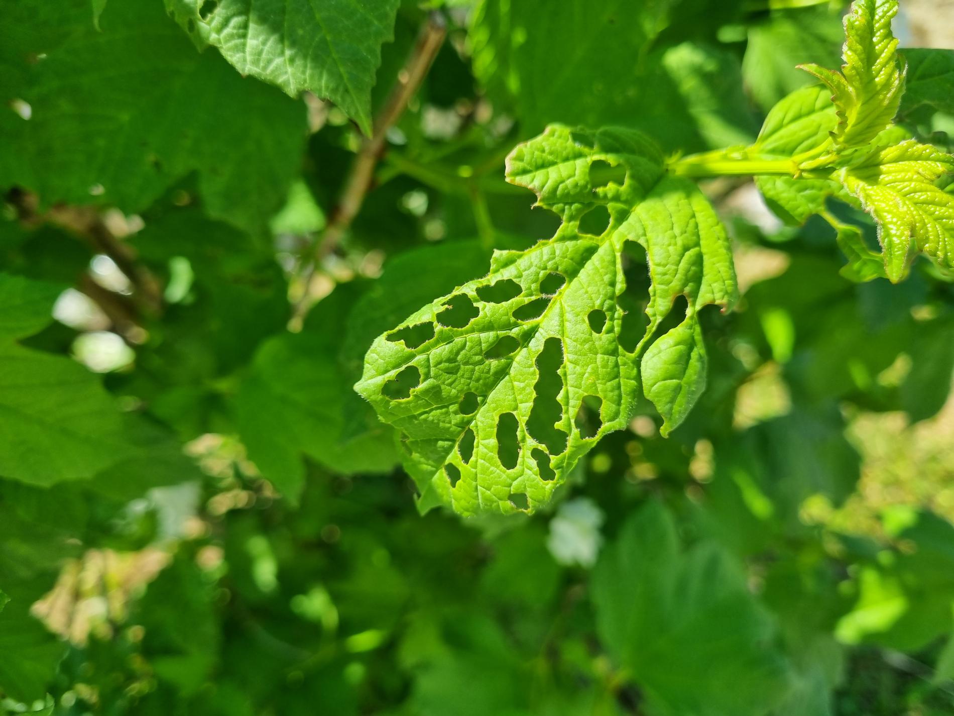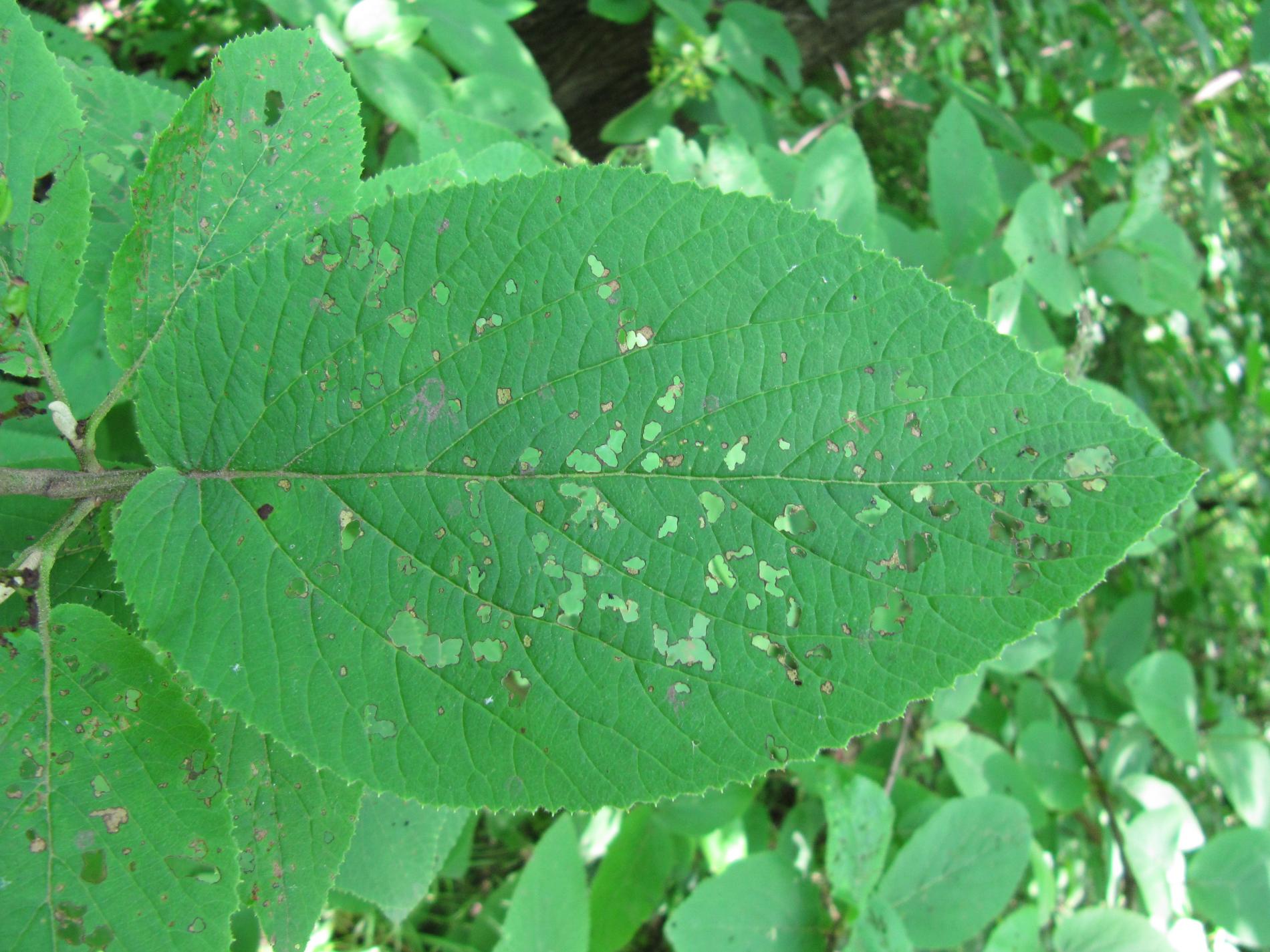 Kalina úplne alebo z časti odlistená. V listoch sú dierky.