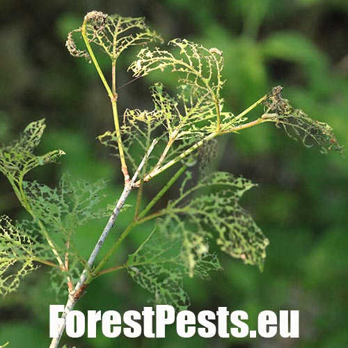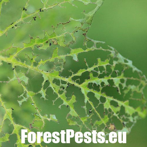 Samice tohto malého, okrovo sfarbeného chrobáka kladú vajíčka do zárezov na mladých výhonkoch. Na kaline sa objavia v júli keď na listoch vykonávajú úživný žer. Larvy žerú spočiatku spoločne na spodnej strane listu. Neskôr žerú jednotlivo. Konzumujú listy tak, že často ostávajú na vetvičkách iba stredové, prípadne bočné žilky. Pri silnom výskyte môže dôjsť k úhynu vetiev a častí korún. Žer sa každoročne pravidelne opakuje.