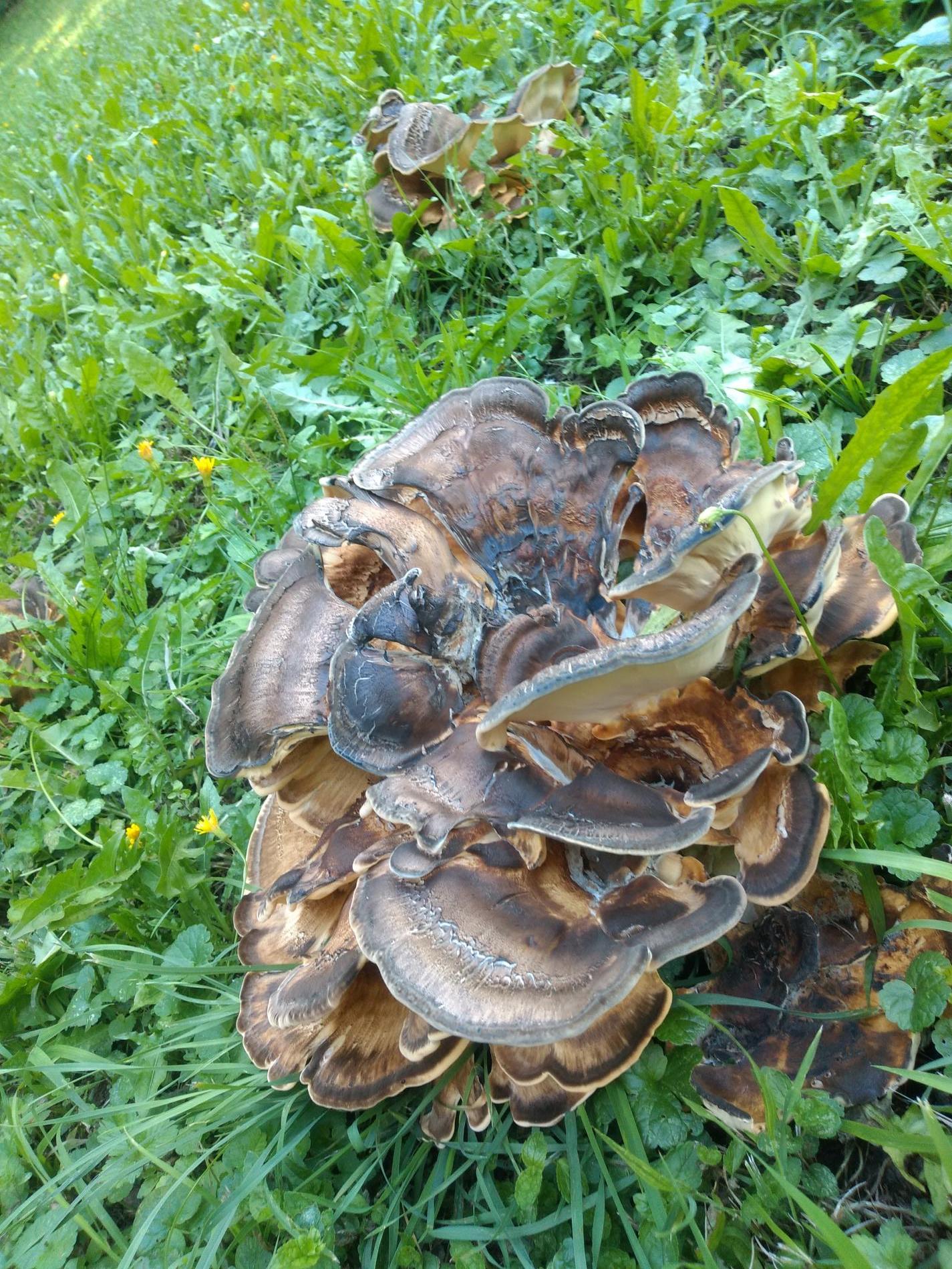 Plodnice rastú trsovito z jednej spoločnej bázy. Jednotlivé klobúky sú 8 – 30 cm široké, najprv hrubo mäsité s nápadným okrajovým valom, neskôr sú stenčené s ostrým okrajom. Na povrchu sú najprv sú najprv zamatové a žltookrové, neskôr zrnité až jemne šupinkaté, okrové až sýto hnedé. Rastie na pňoch (ako saprofyt) a živých koreňoch (ako parazit)  od júla do novembra.