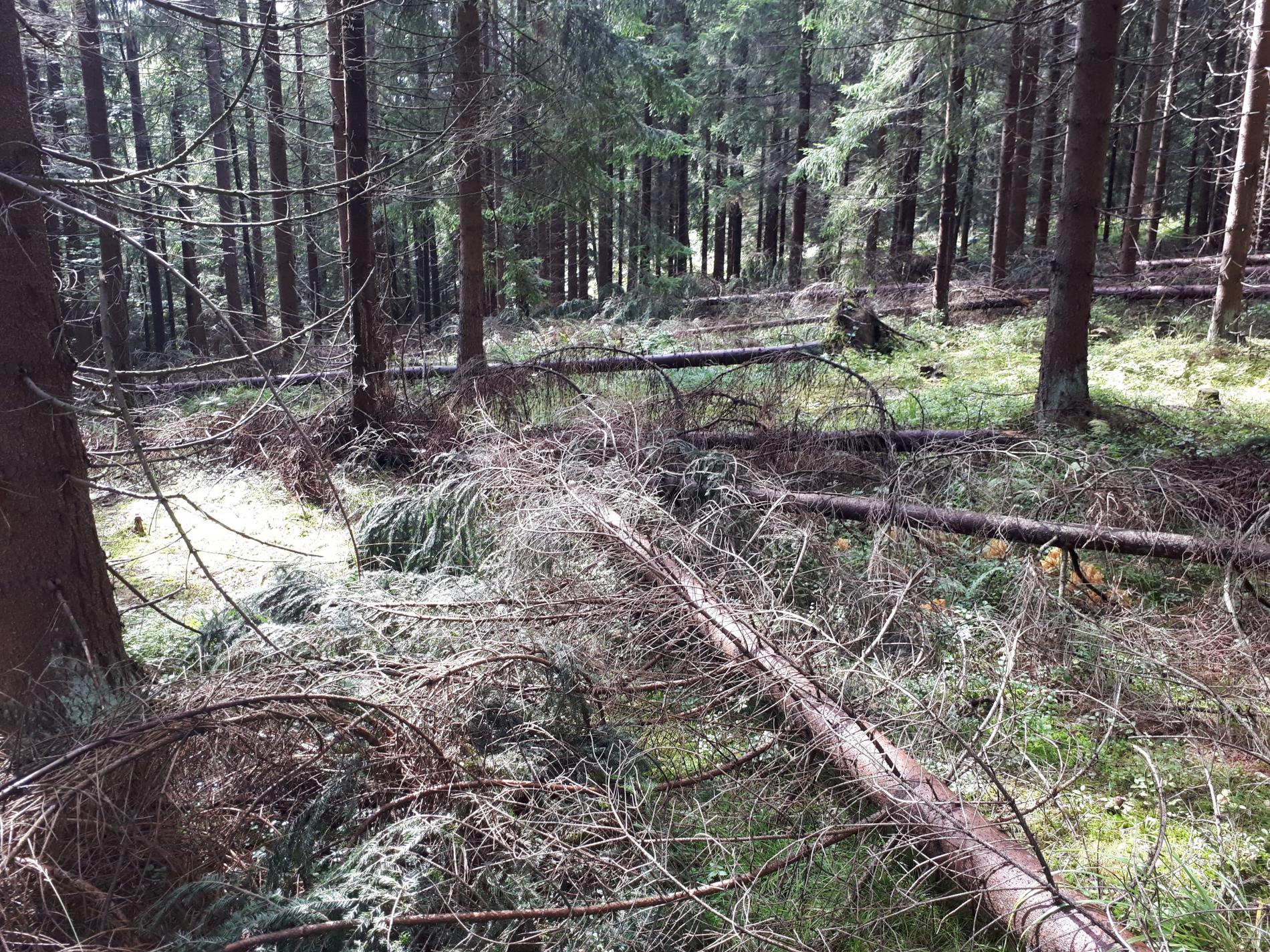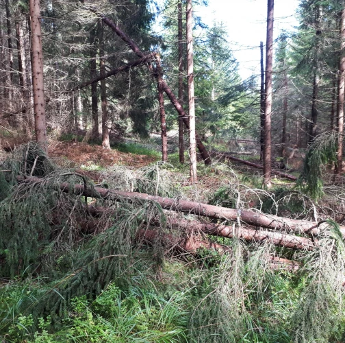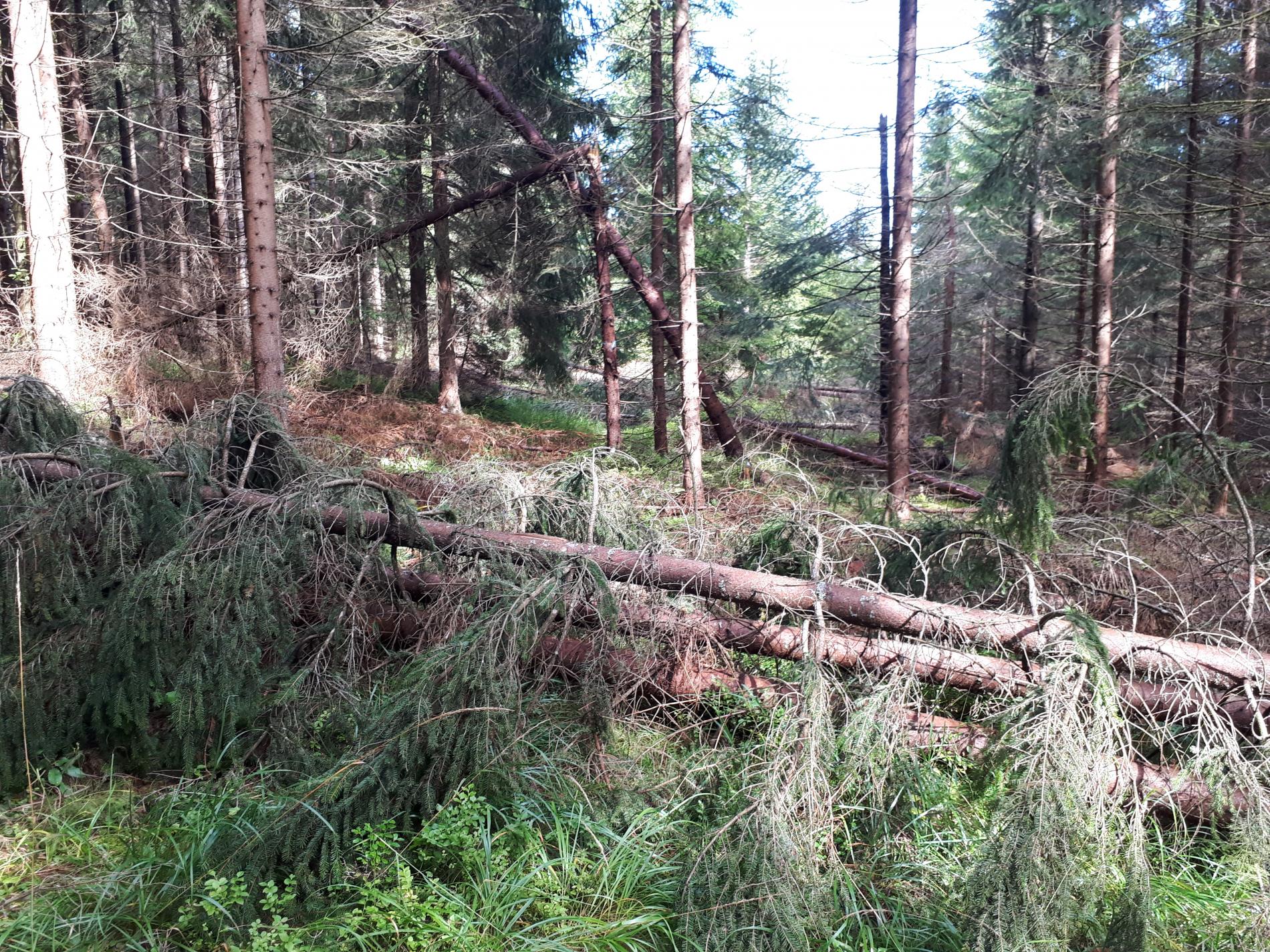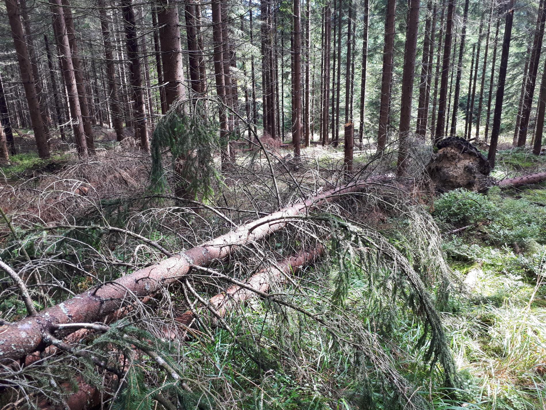 Najviac sú ohrozené smrečiny, monokultúrneho charakteru s nízkou statickou stabilitou, prehustené porasty s krátkymi korunami s malou zbiehavosťou kmeňov. Ohrozená je aj jedľa a buk. Najviac vývratov tu vzniká keď je pôda zamokrená.