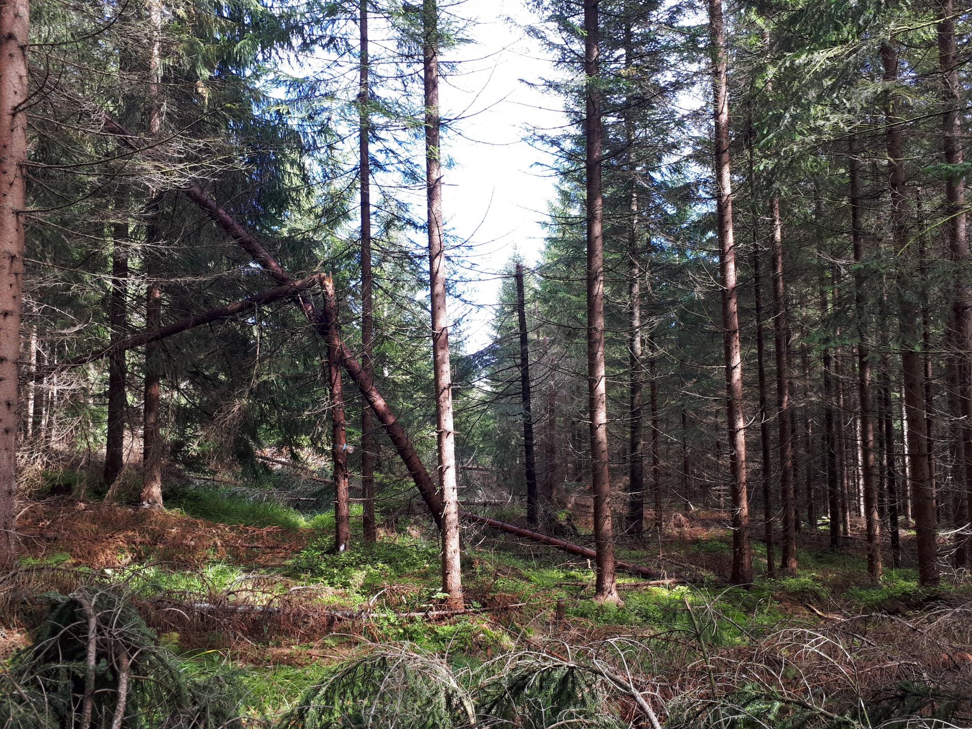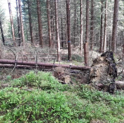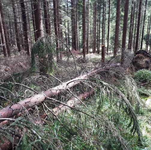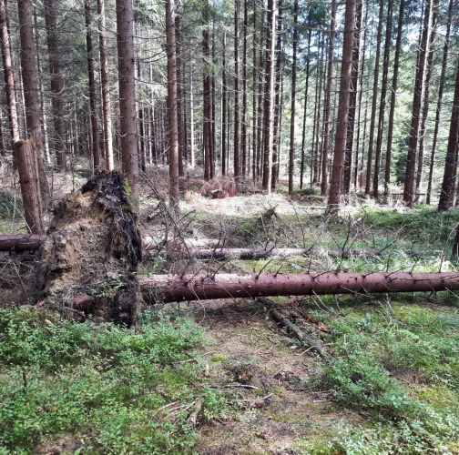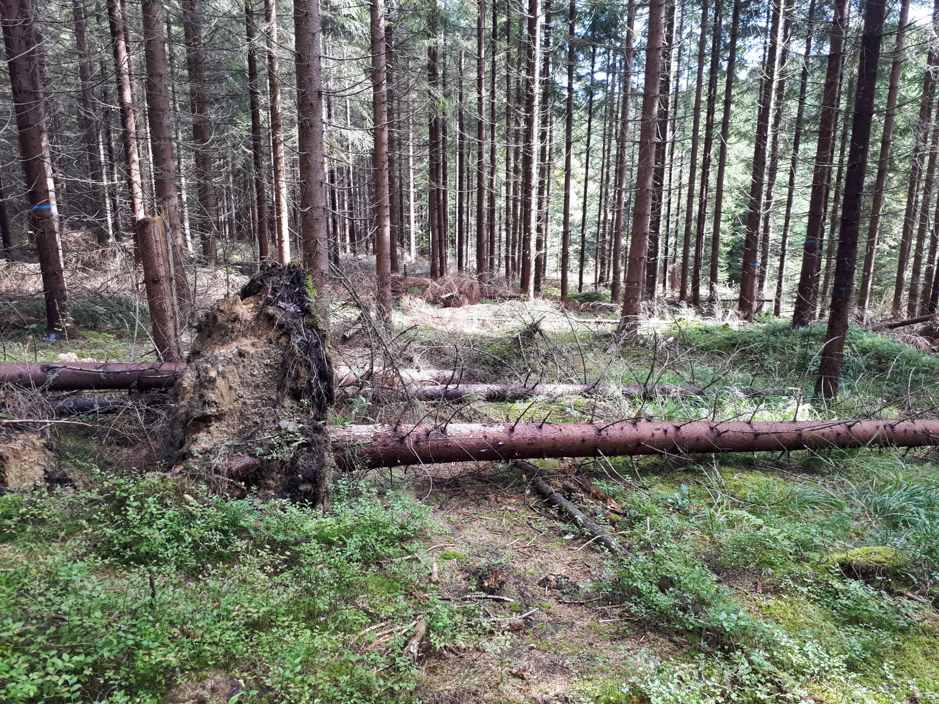Najviac sú ohrozené smrečiny, monokultúrneho charakteru s nízkou statickou stabilitou, prehustené porasty s krátkymi korunami s malou zbiehavosťou kmeňov. Ohrozená je aj jedľa a buk. Najviac vývratov tu vzniká keď je pôda zamokrená.