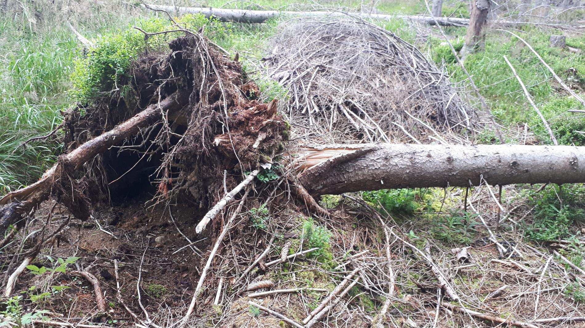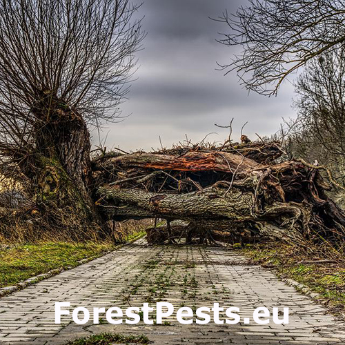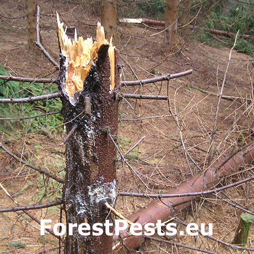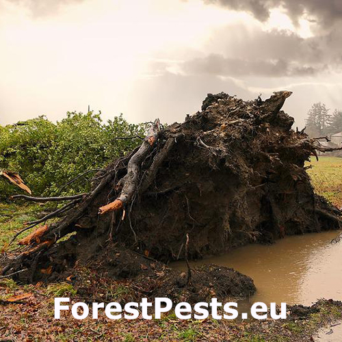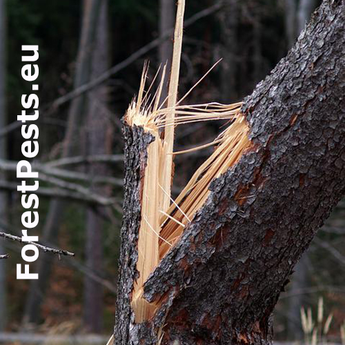 Vietor spôsobuje jednak vývraty, ako aj o zlomy. Pomer polomov a zlomov súvisí najmä so ukotvením koreňových systémov v pôde. V zimnom období, keď je pôda zamrznutá a korene sú dobre v upevnené v pôde, vznikajú najmä zlomy. Vo všeobecnosti však prevládajú vývraty nad zlomami (pomer 2:1 až 3:1).
