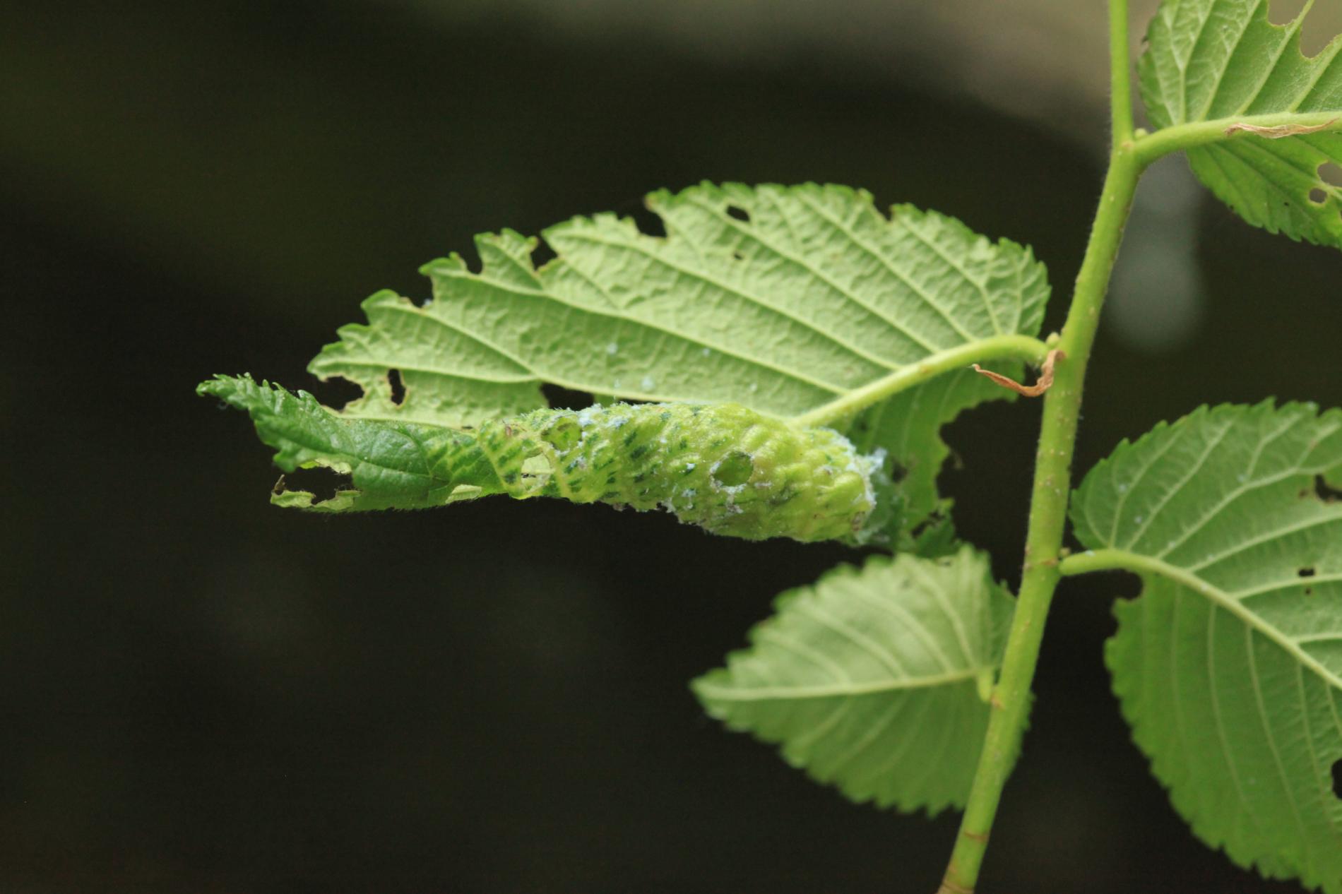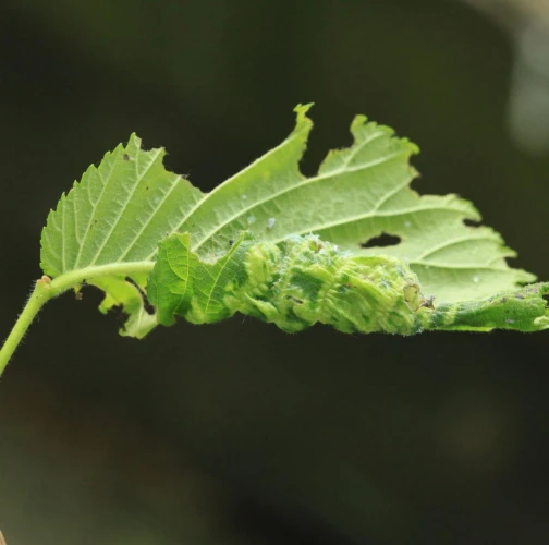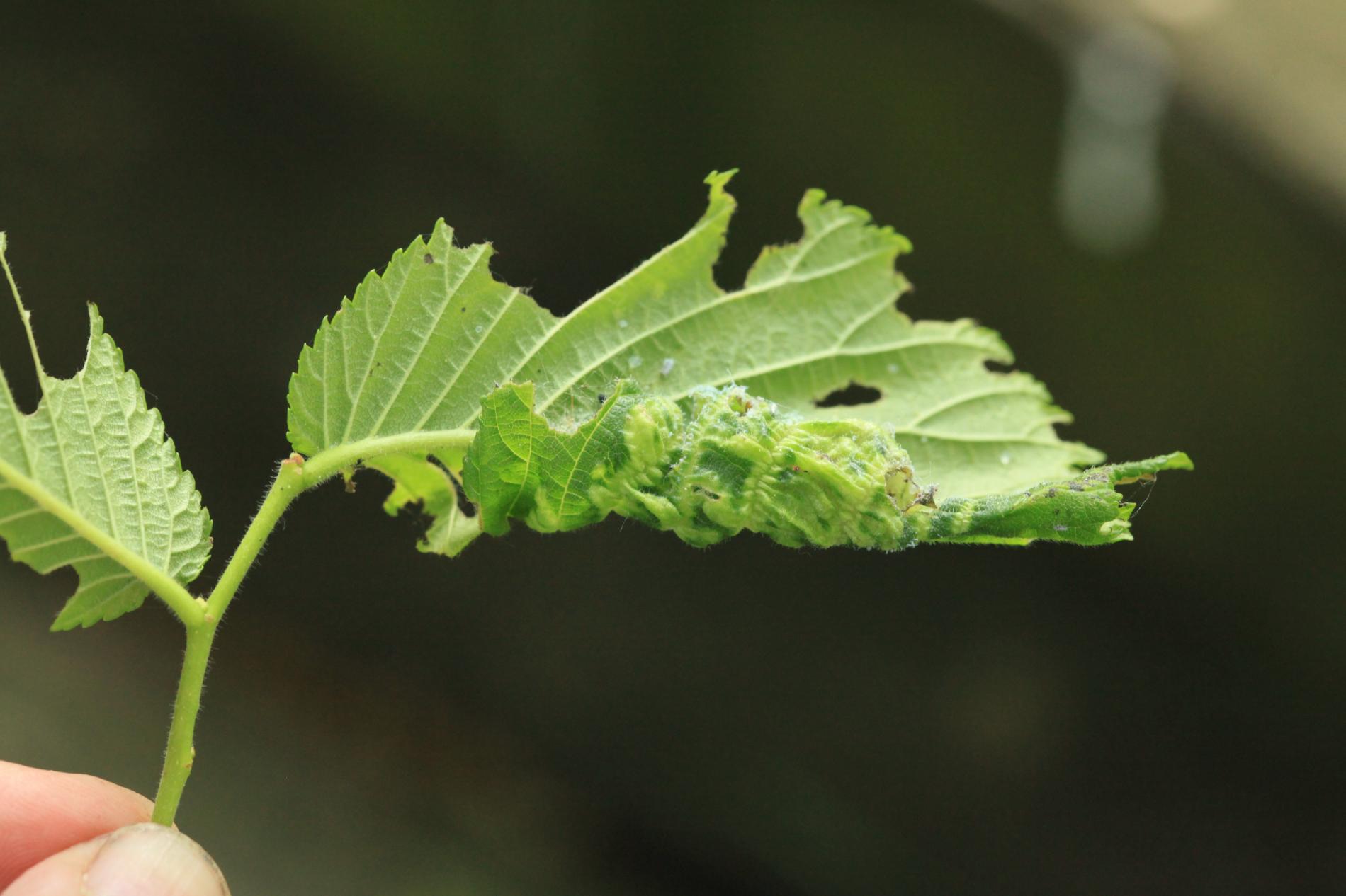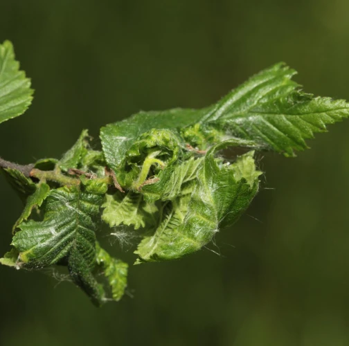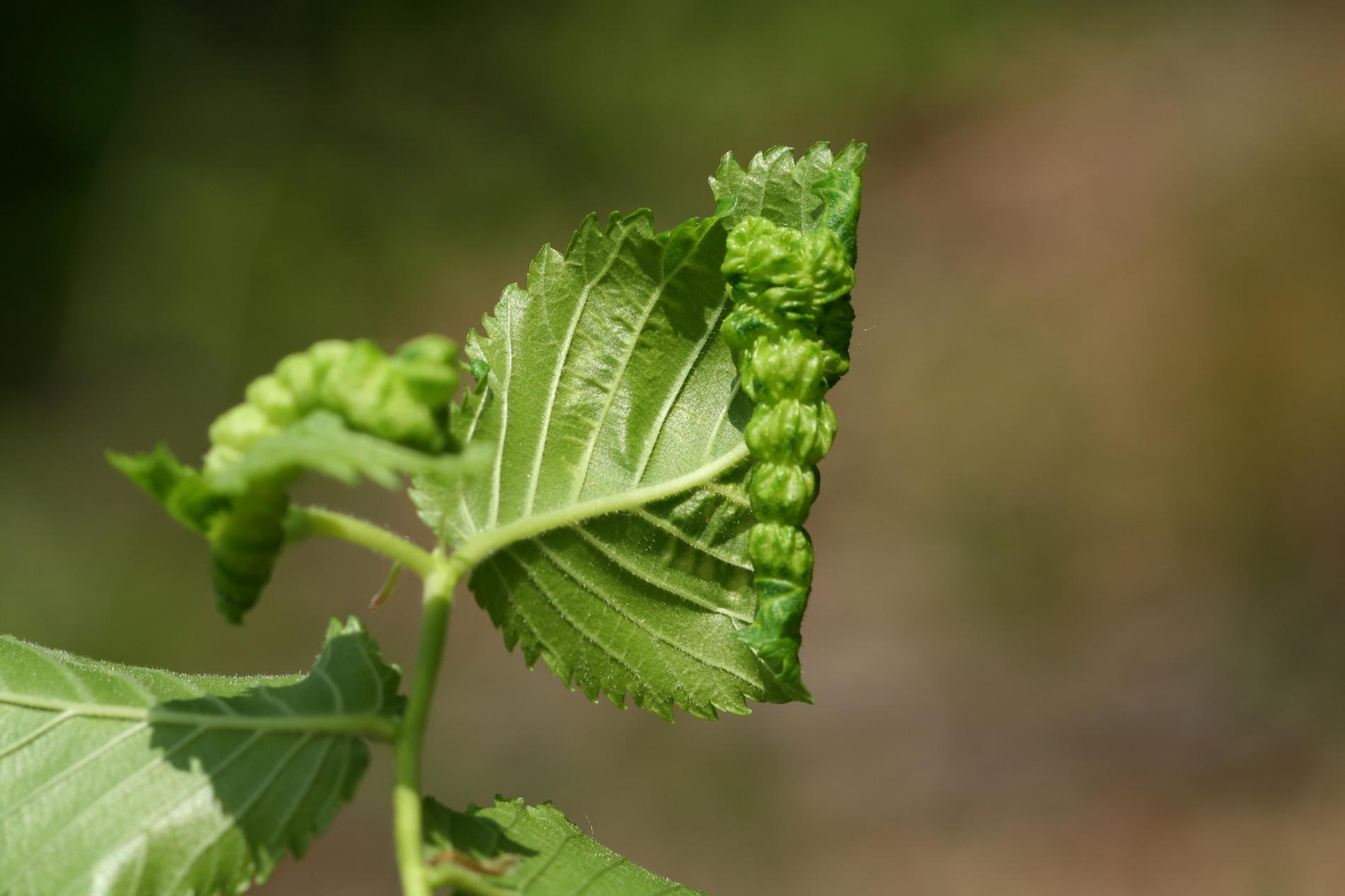 Hálky sú žltkastozelenej alebo ružovkastej farby, a tvoria sa tak, že sa jedna polovica listu zvlní a zroluje dovnútra, čím sa vytvorí rúrkovitý vak. Na jar a začiatkom leta žijú vo vaku početné vošky, ktoré sú zvyčajne hnedasté až matne zelené a pokryté voskom.