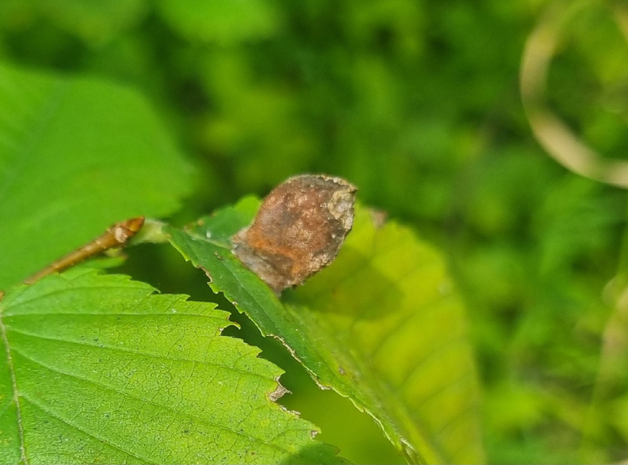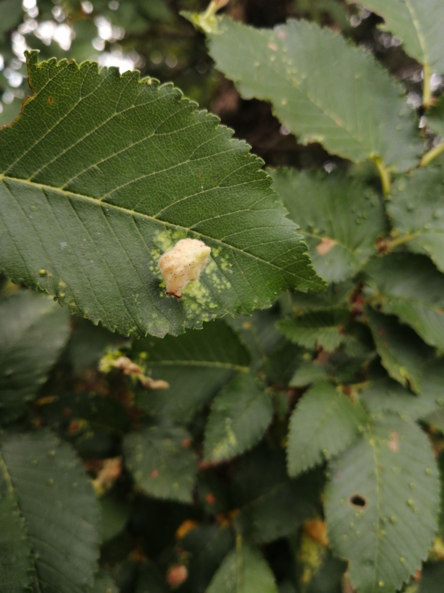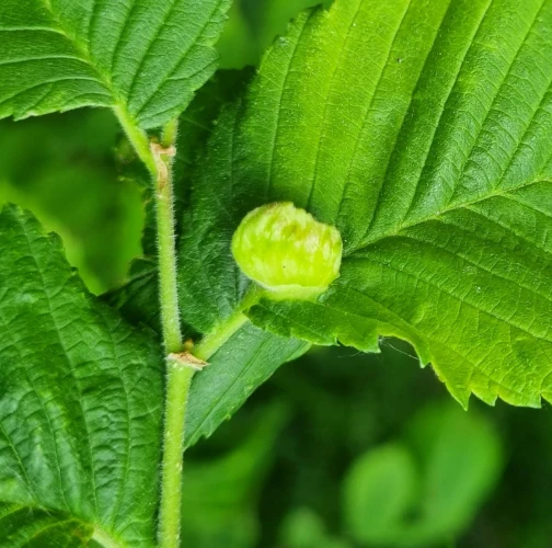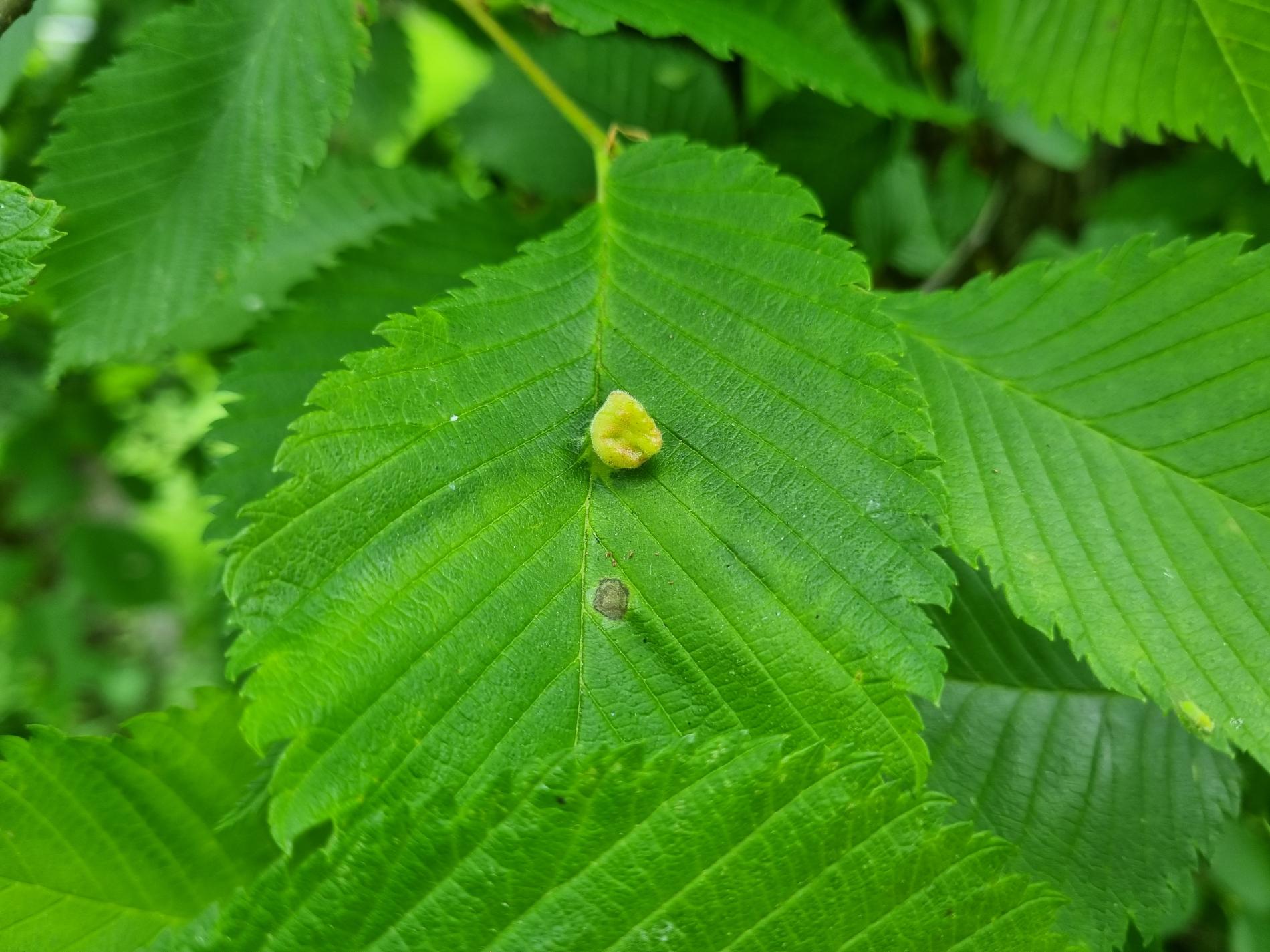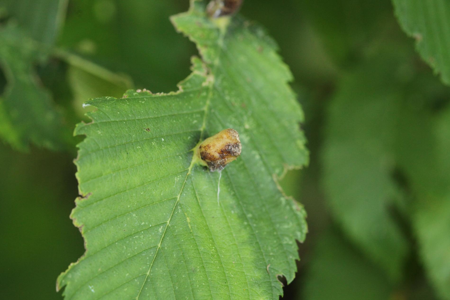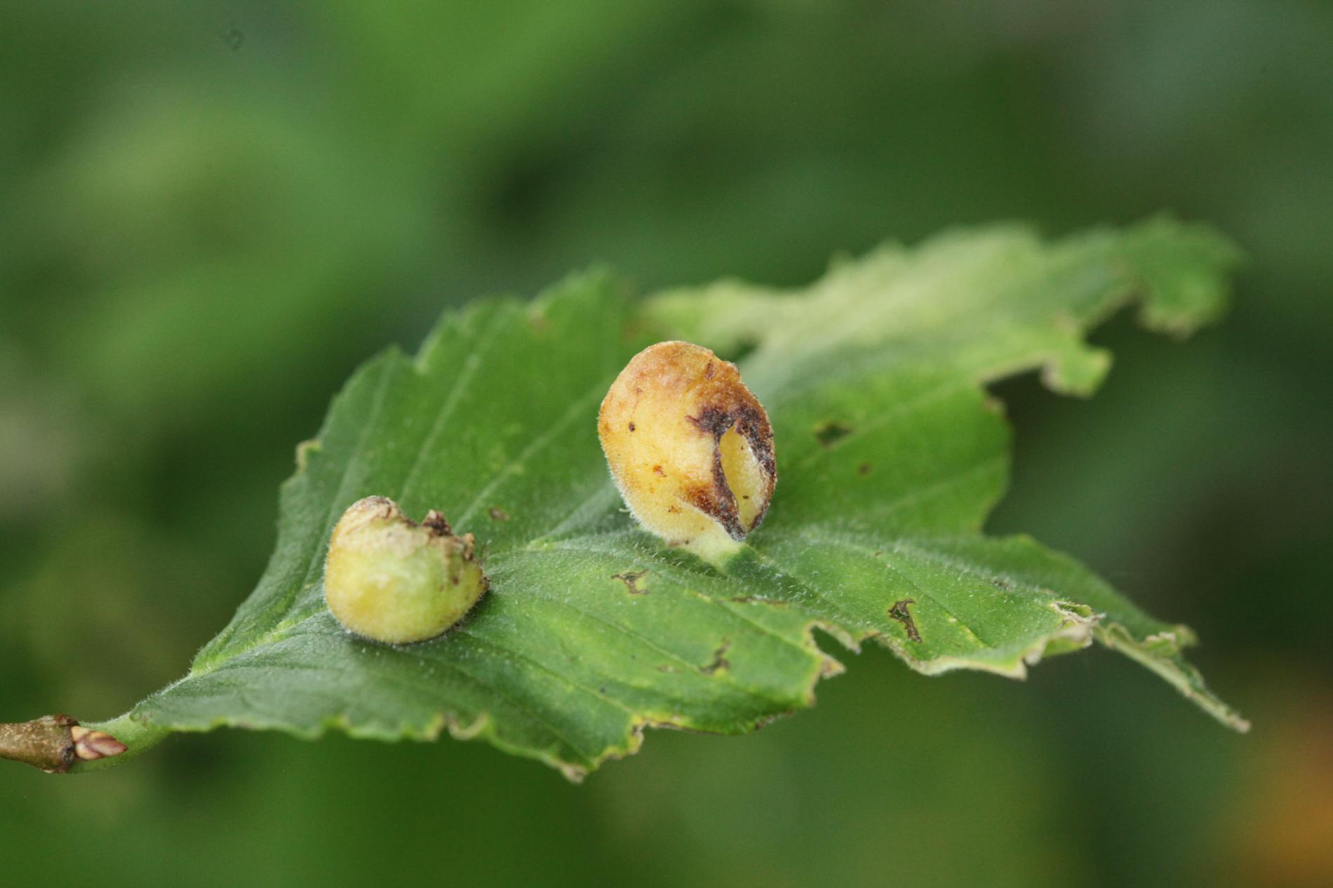 Na vrchnej strane listu – vždy na širšej strane čepele – sa nachádza mechúrikovitý výrastok vysoký cca 1 – 2 cm. Hálka je svetlozelená na okrajoch môže byť červená. Vyskytuje sa väčšinou jednotlivo. Vo vnútri sa nachádzajú vošky v rôznom štádiu vývoja.