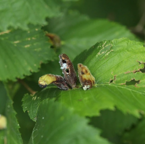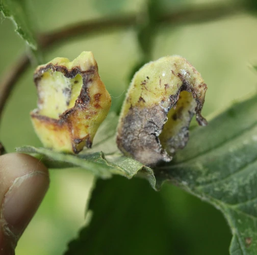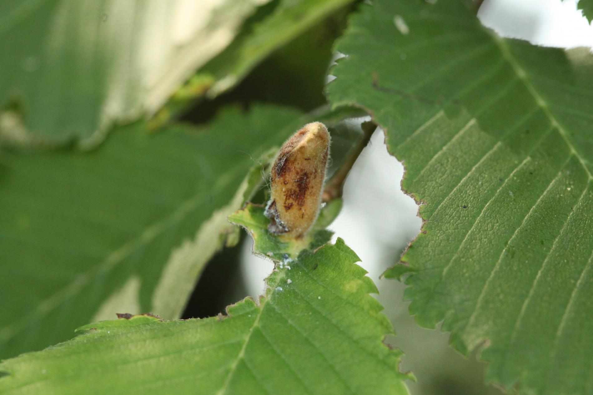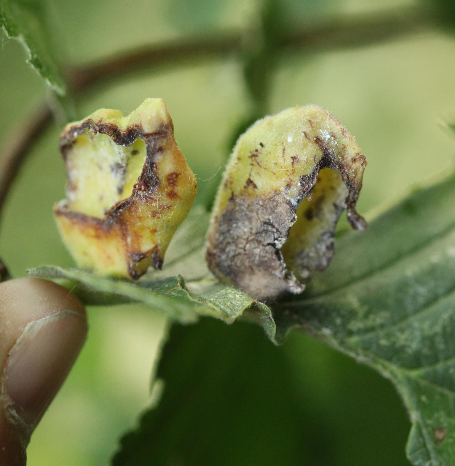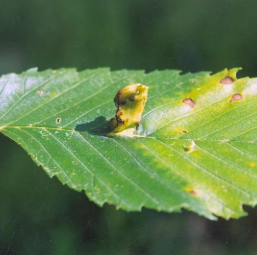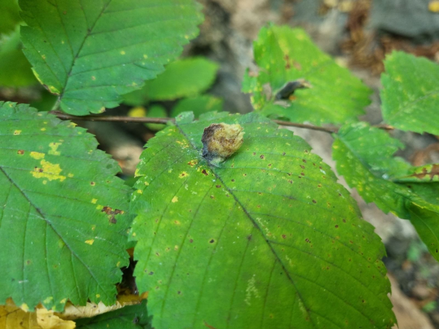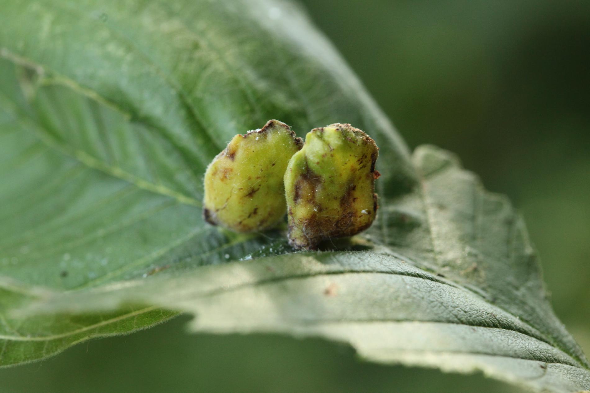 Na vrchnej strane listu – vždy na širšej strane čepele – sa nachádza mechúrikovitý výrastok vysoký cca 1 – 2 cm. Hálka je svetlozelená na okrajoch môže byť červená. Vyskytuje sa väčšinou jednotlivo. Vo vnútri sa nachádzajú vošky v rôznom štádiu vývoja.