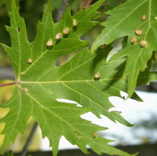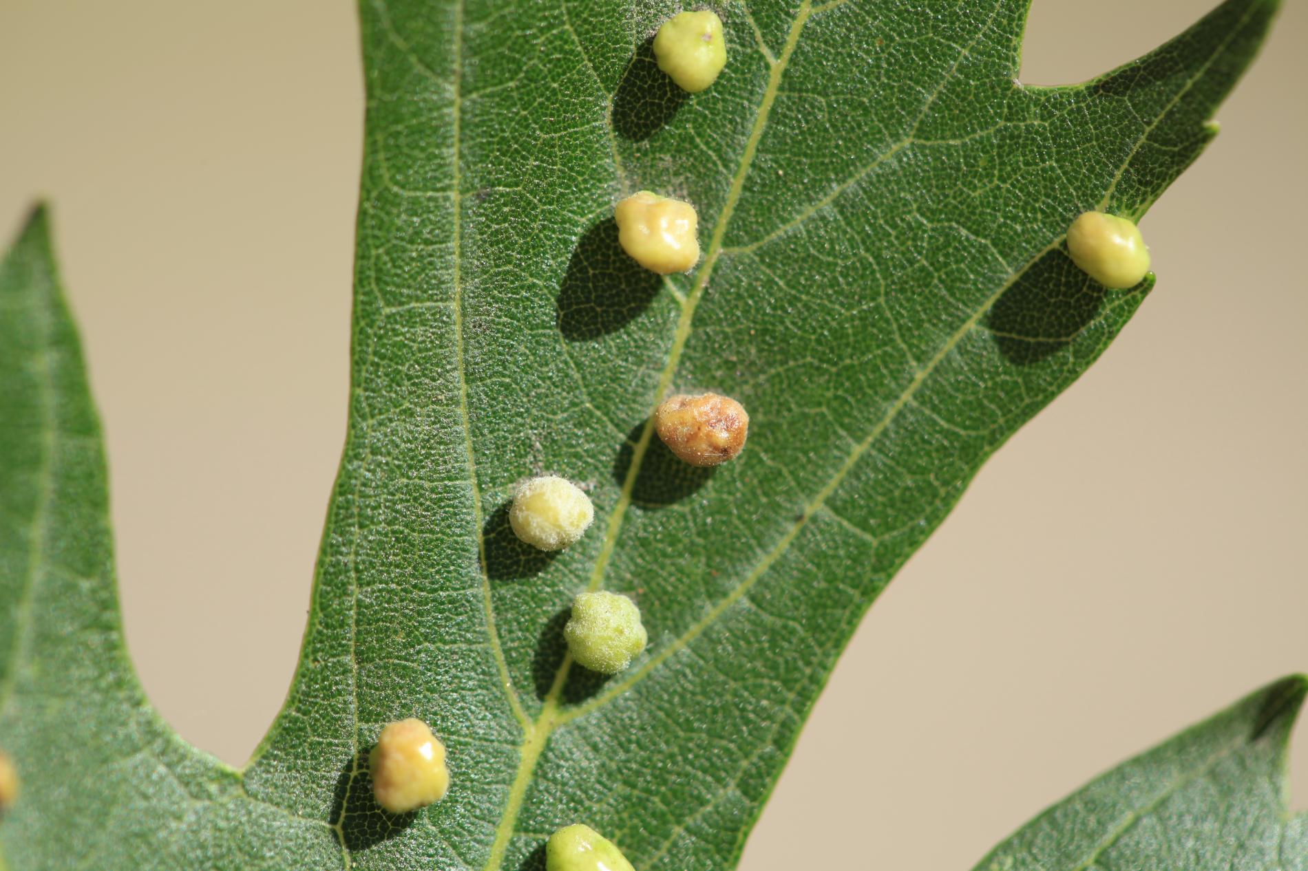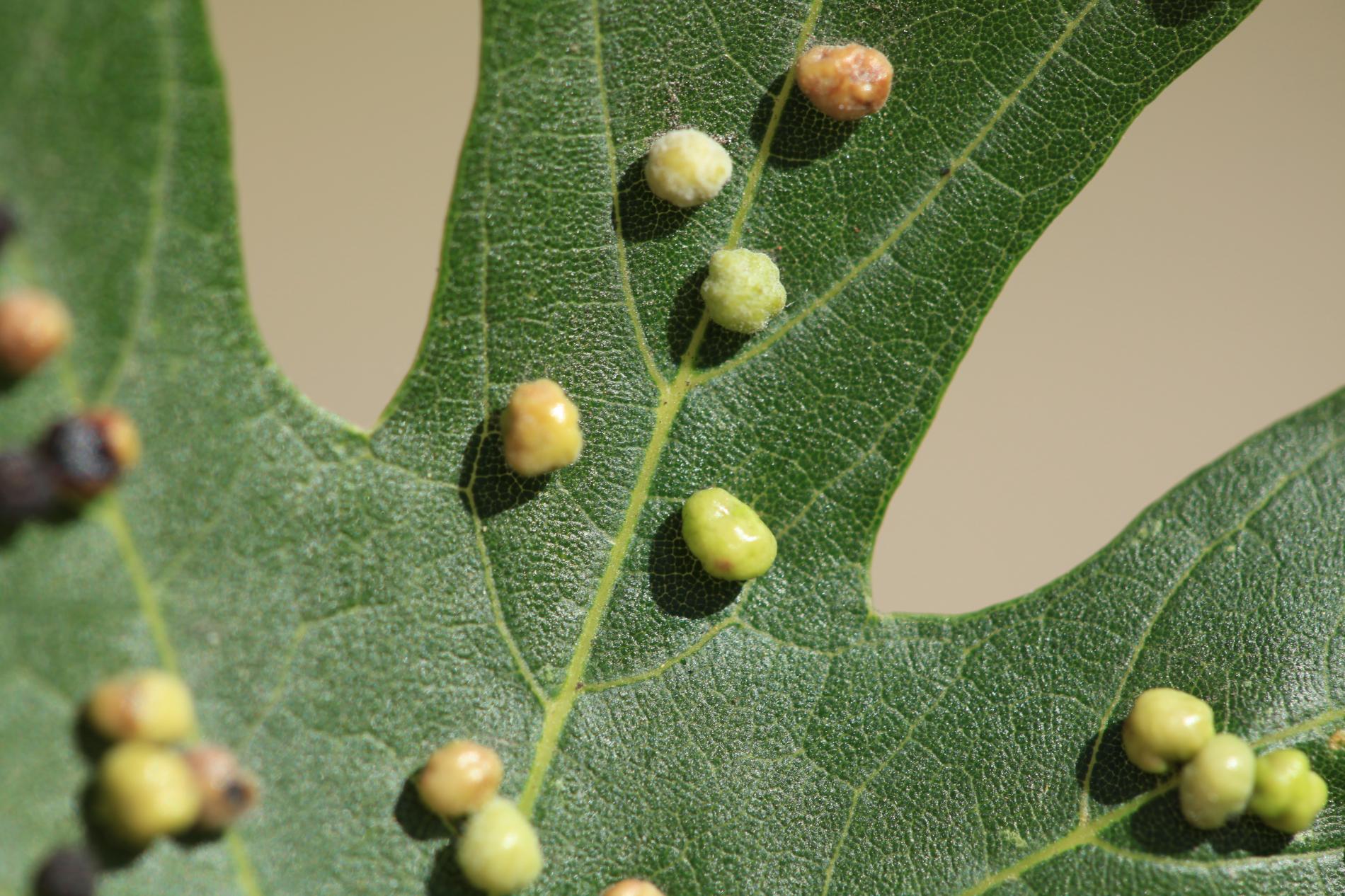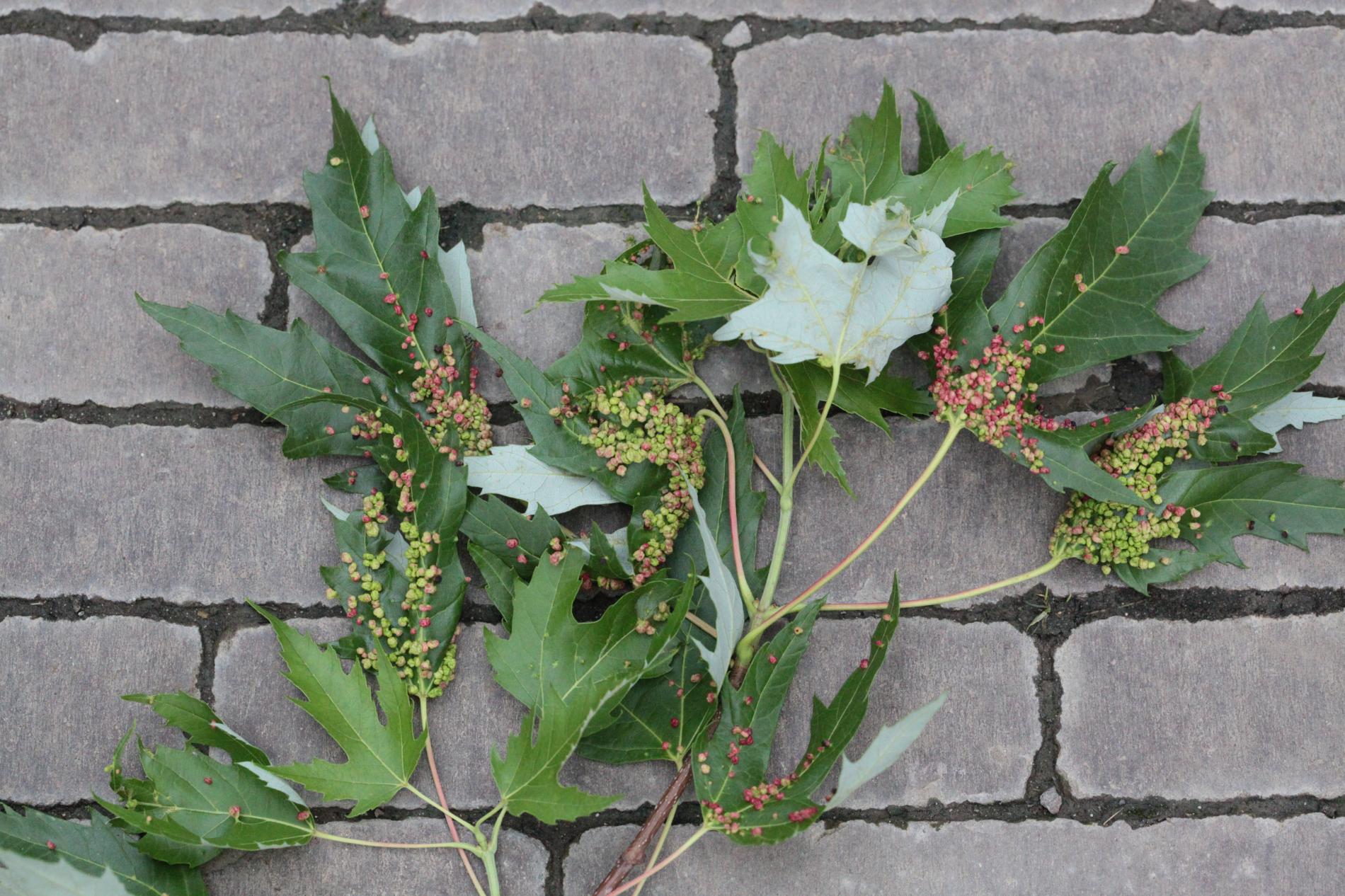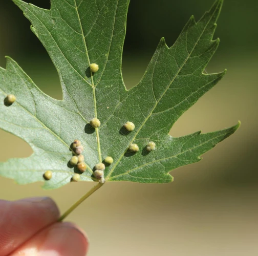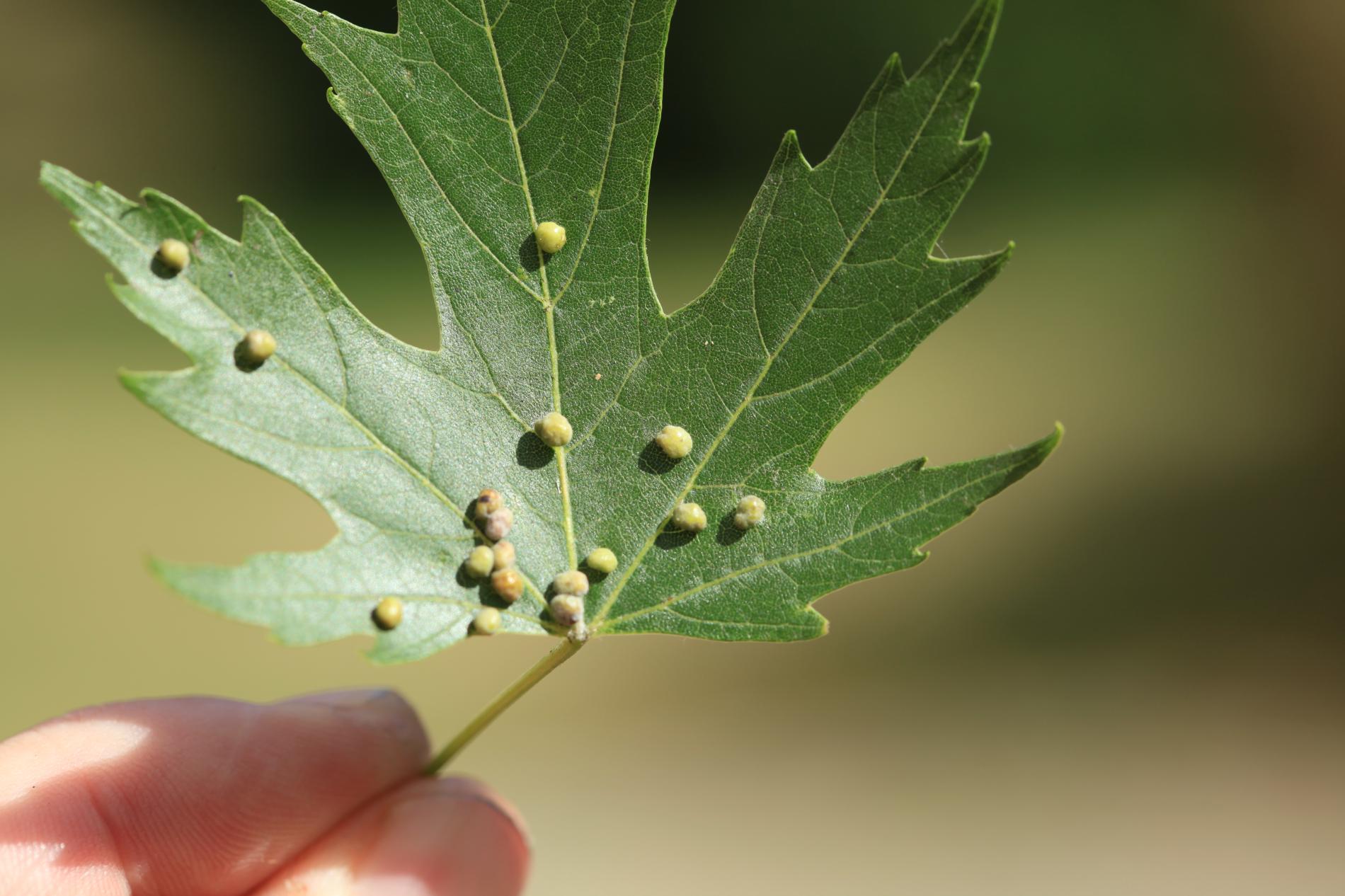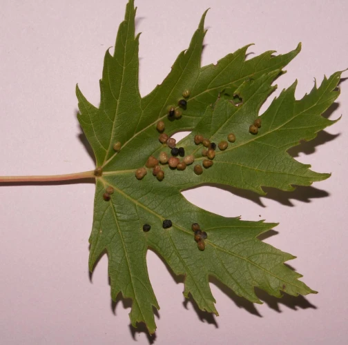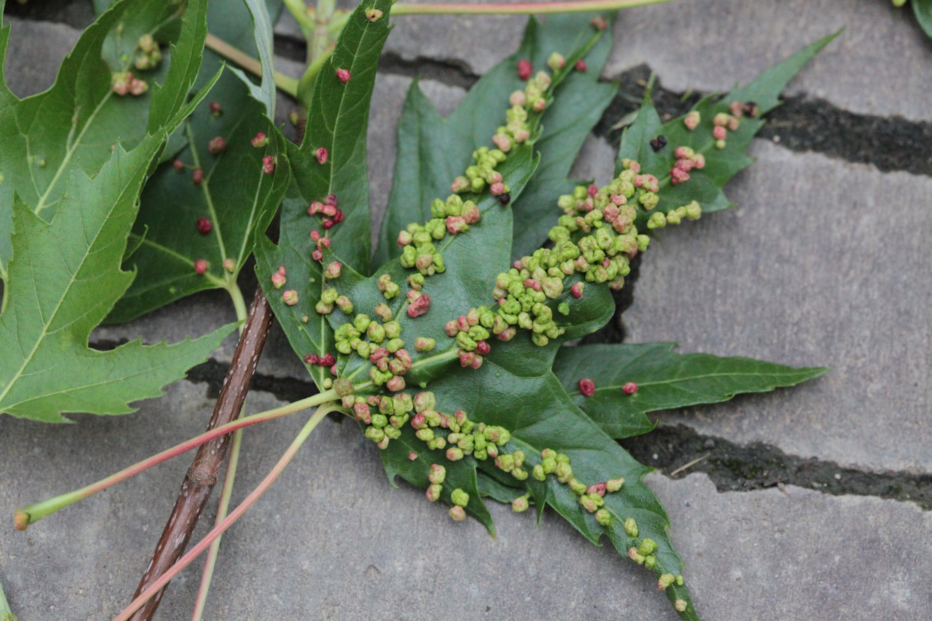 Pomerne veľké hrčky na vrchnej strane listov, ktoré môžu byť početné. Zo začiatku sú žlté alebo žltozelené, neskôr sa stávajú červenými, tmavočervenými a na jeseň až čiernymi.