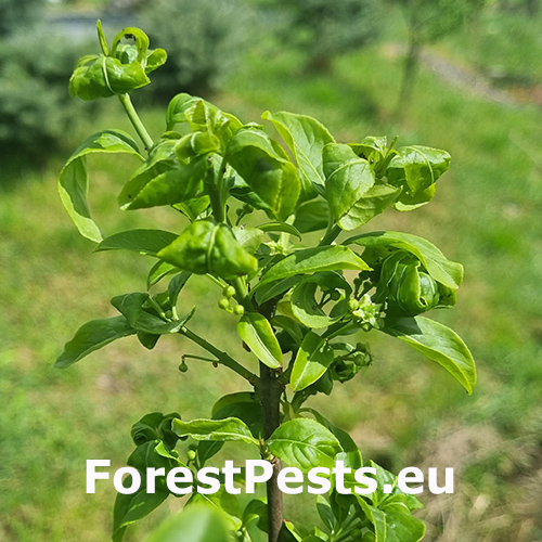 Aphis euonymi je voška, ktorá napáda rastliny rodu Euonymus, najmä bršlen európsky (Euonymus europaeus). Dospelé jedince sú červenohnedé až tmavohnedé s priečnymi pásmi voskového povlaku. Ich veľkosť sa pohybuje od 1,7 do 2,9 mm. Tento druh sa rozmnožuje partenogeneticky počas vegetačného obdobia, pričom na jeseň sa objavujú okrídlené samce a samičky, ktoré kladú vajíčka na konáre hostiteľských rastlín. Poškodenie spôsobené cicaním rastlinných štiav môže viesť k oslabeniu dreviny, deformácii listov a zníženiu estetického vzhľadu. V dôsledku produkcie medovice môže podporovať výskyt čiernych plesní (Capnodium sp.), ktoré obmedzujú fotosyntézu. Druh je rozšírený v celej Európe.