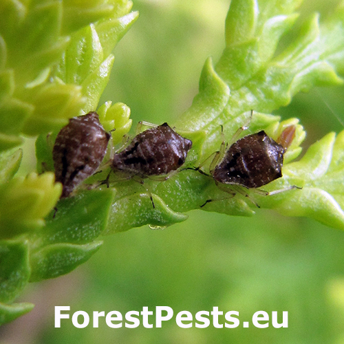 Na napadnutých konároch dochádza k hnednutiu ihlíc, hromadeniu lepkavej medovice a často aj k výskytu čiernych plesní. Viditeľné sú kolónie červenkastohnedých vošiek s voskovým povlakom.