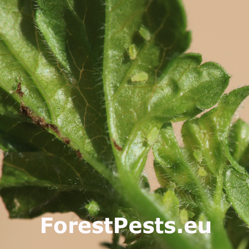 Malé zelené vošky na spodnej strane listov. Deformácie listov.