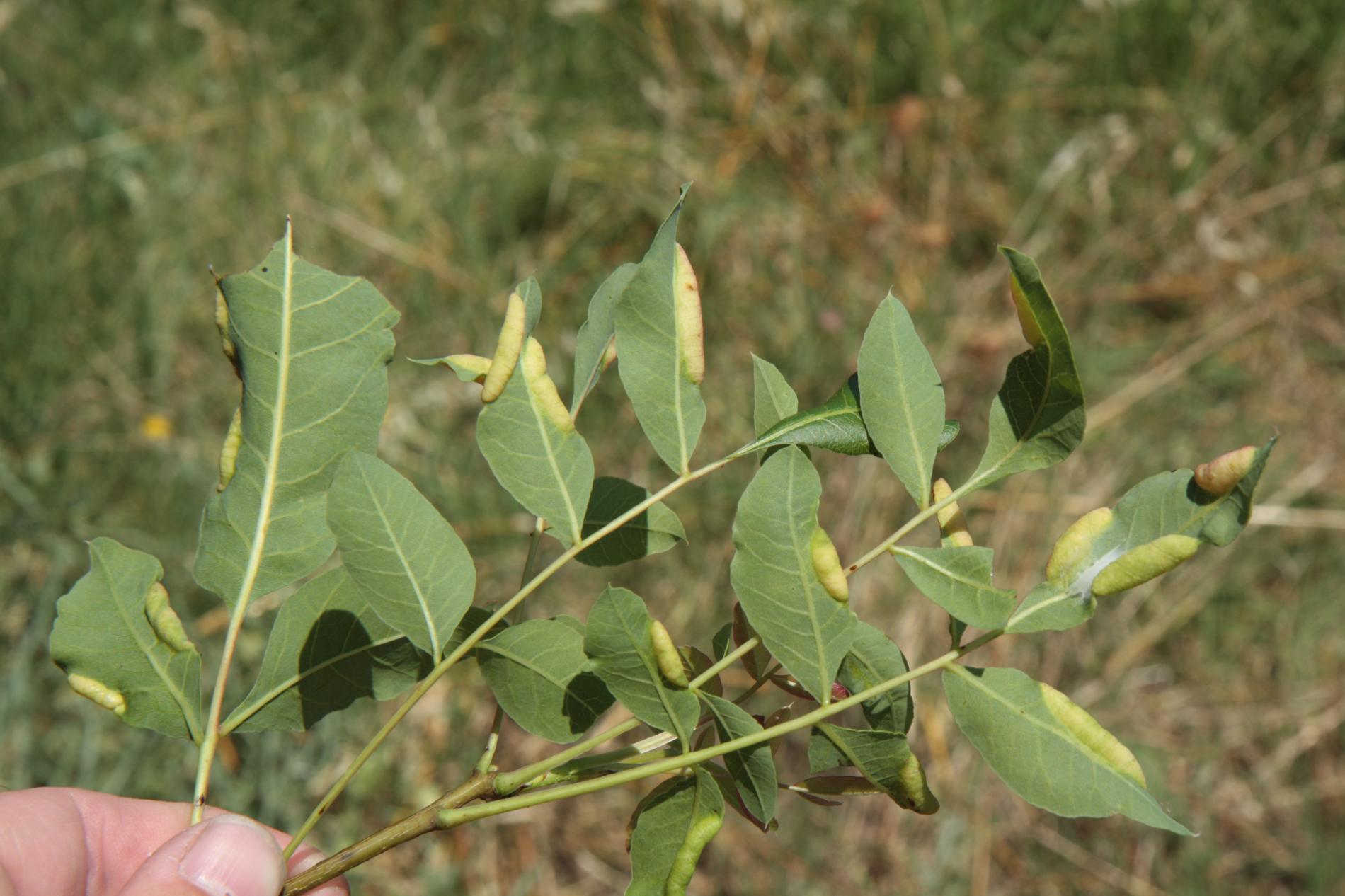 Napadnutie Forda marginata sa prejavuje vretenovitými hálkami pozdĺž okrajov listov Pistacia a zafarbením alebo zakrpatením koreňov tráv, kde sa vytvárajú kolónie.