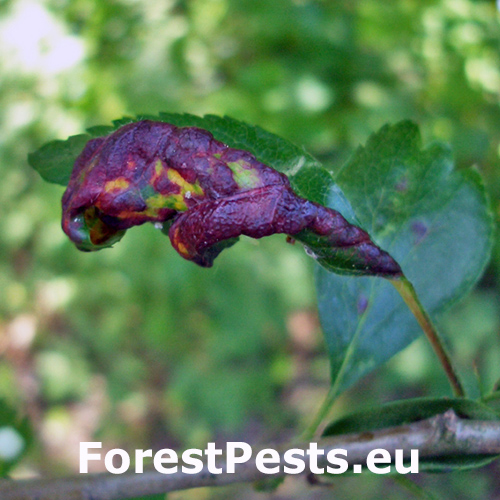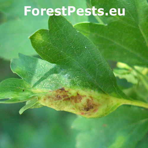 Na hlohu sa listy stáčajú smerom nahor, vznikajú červené hálky. Na spodnej strane listov býva prítomná kolónia vošiek.