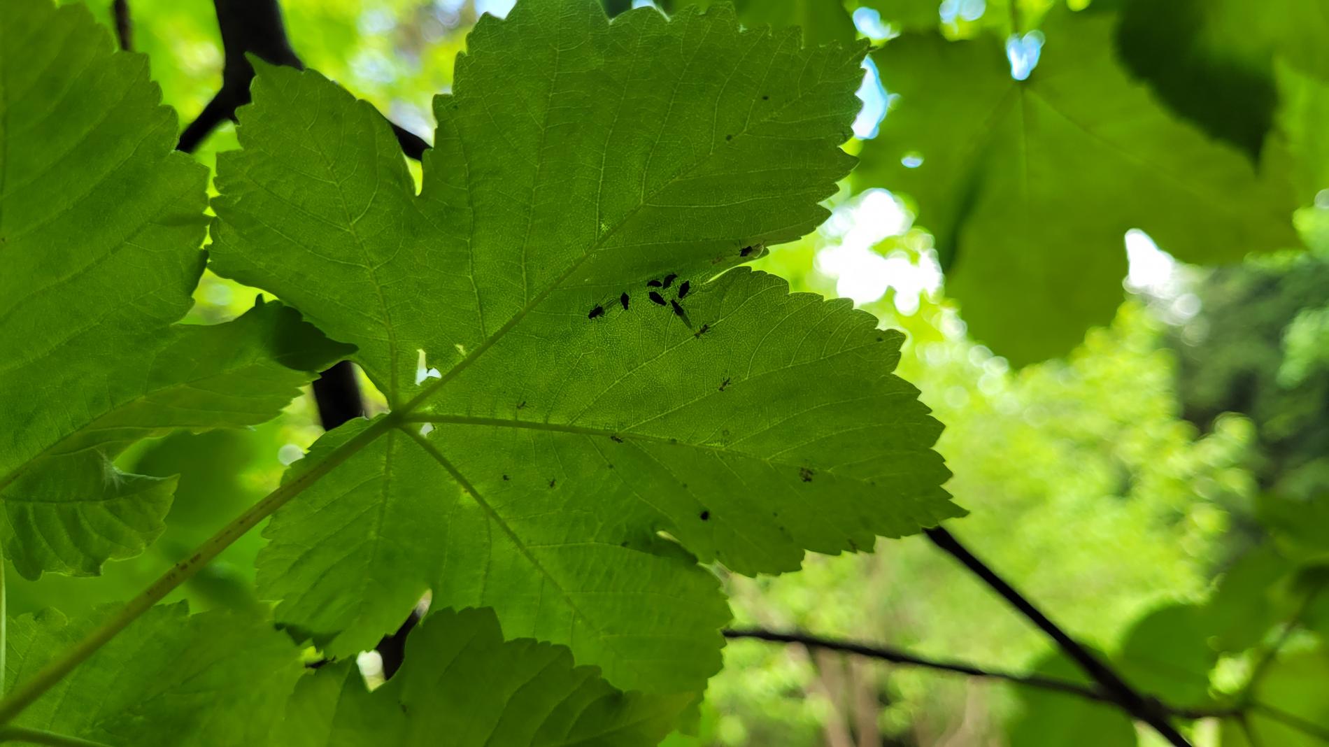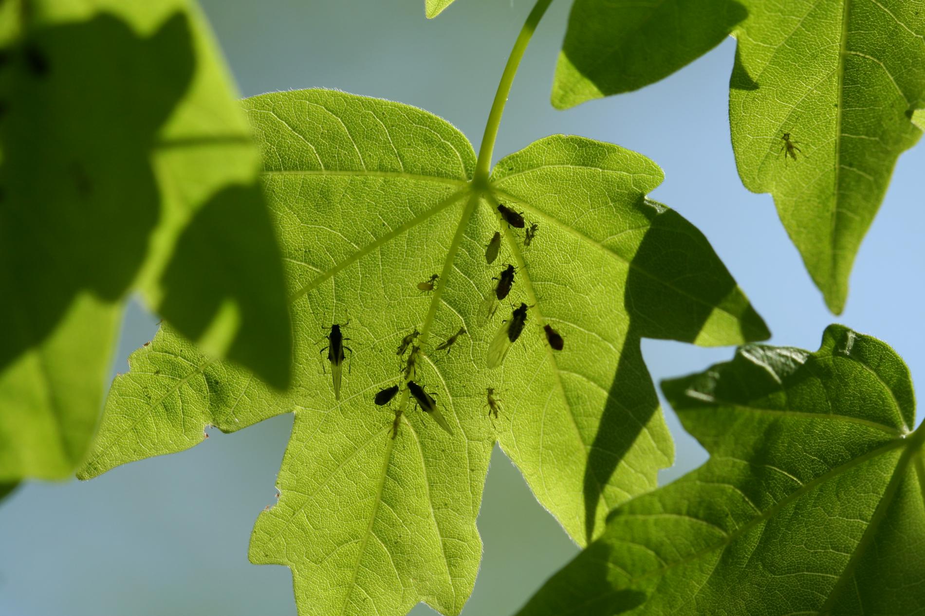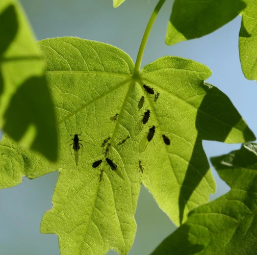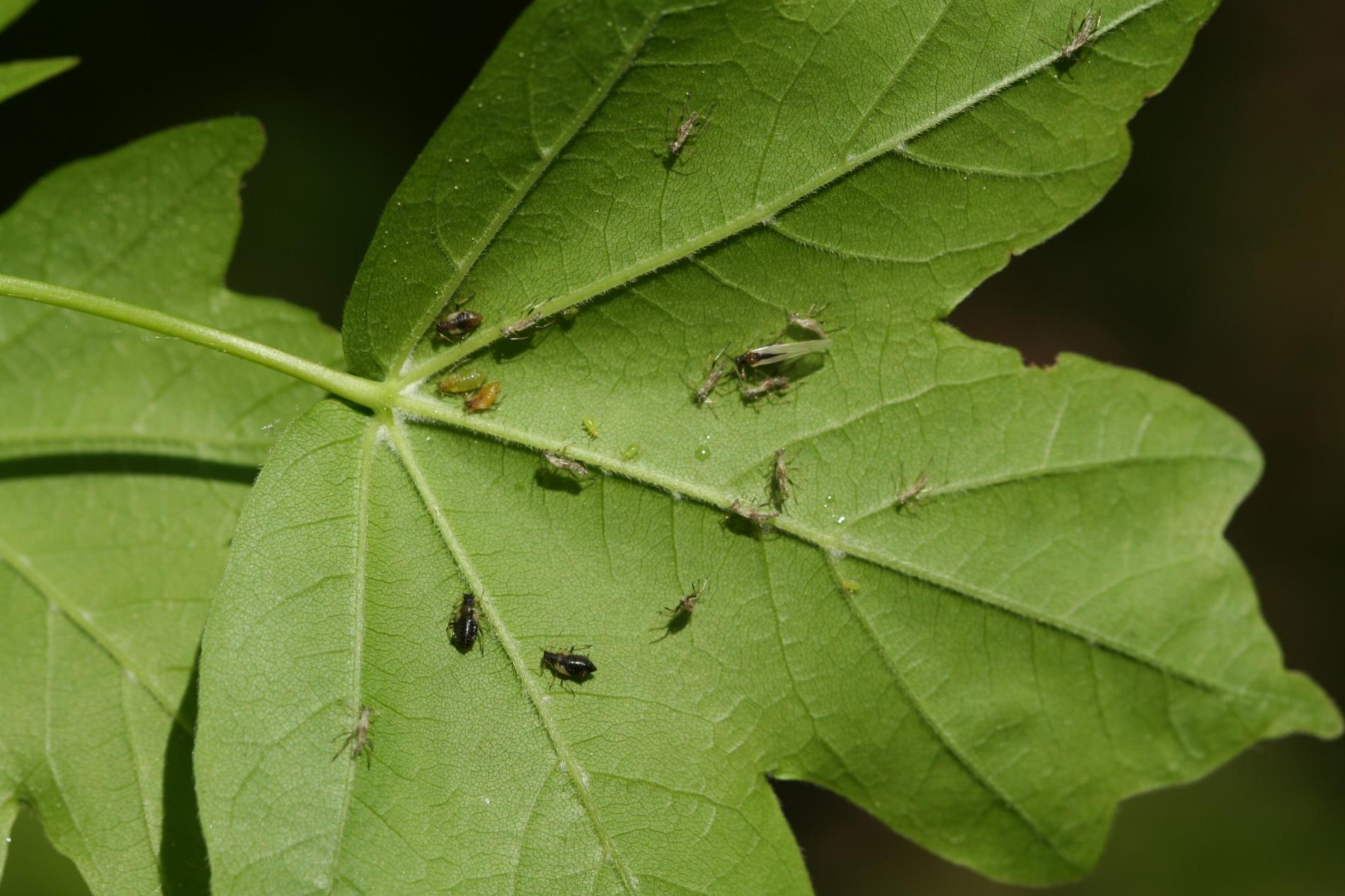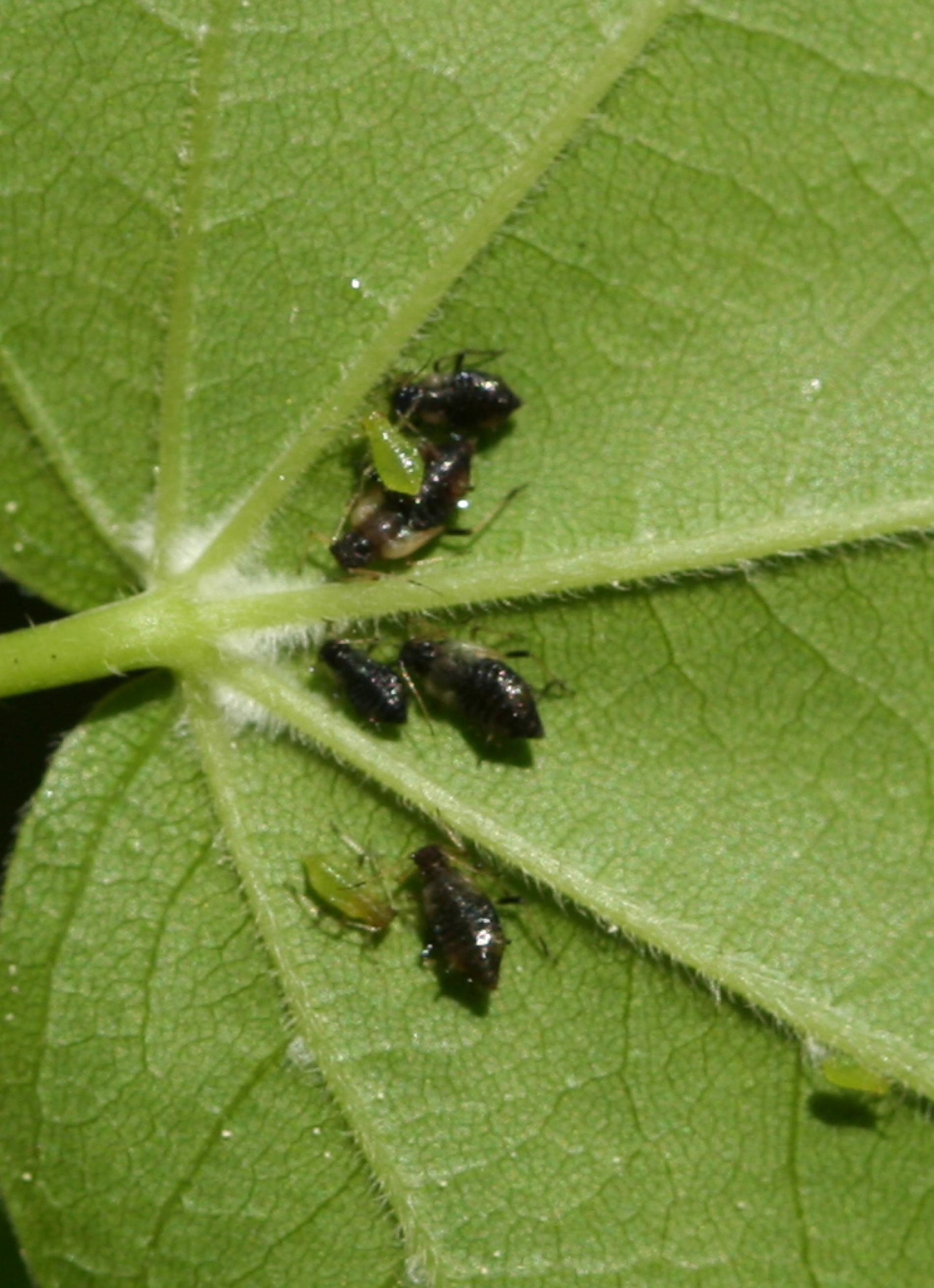 Čierne vošky na listoch a výhonkoch.