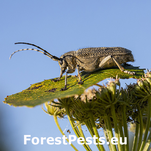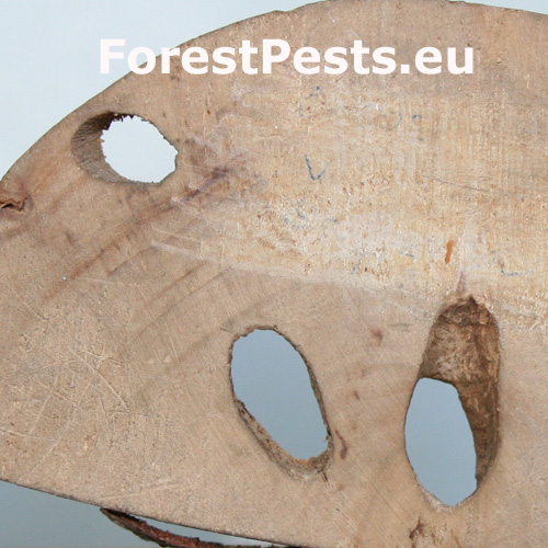 Hnedožltý chrobák veľký 20 - 30 mm. Rojí sa v júni až auguste. Samičky kladú vajíčka do štrbiny vyhlodanej na kôre kmeňov. Larvy vyhlodávajú spočiatku ploché chodby v lyku. Neskôr sa zavŕtavajú do dreva, kde vyhrýzajú v priereze oválnu až 50 cm dlhú chodbu, čiastočne vyplnenú skrútenými, až 20 mm dlhými triesočkami. Triesočky larvy vytláčajú aj von, k päte stromu. Imágo opúšťa kuklovú kolísku oválnym výletovým otvorom, veľkosti približne 10 x 12 mm.