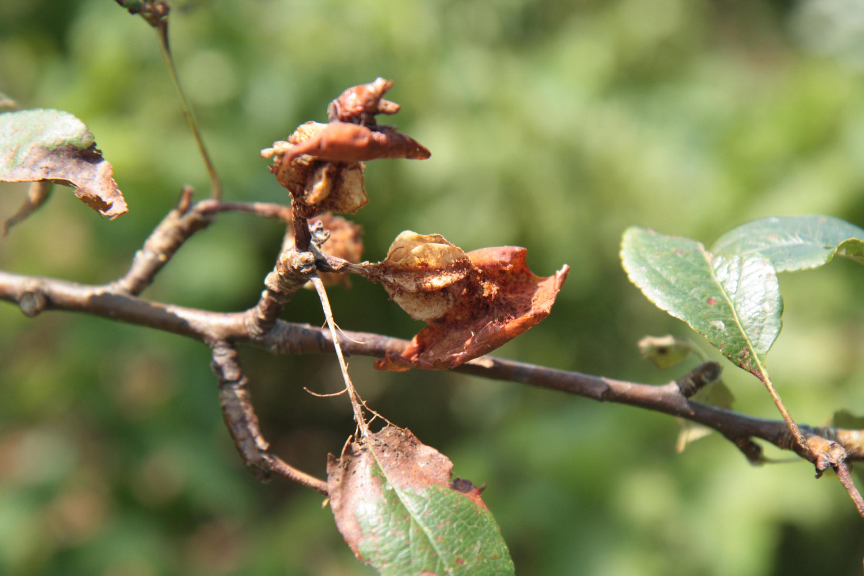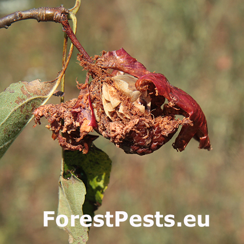 Ohrozené dreviny: Broskyňa, Čerešňa, Hruška, Jabloň, Marhuľa, Ruža, Slivka