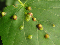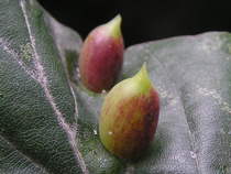 Mikiola fagi. Foto: M. Zubirk | Didymomyia tiliacea. Foto: M. Zúbrik | Dryomyia circinans. Foto: M. Zúbrik |
