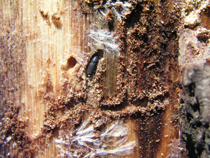 Hylastes ater. Foto: M. Zúbrik | Neodiprion sertifer. Foto: M. Zúbrik | Cameraria ohridella. Foto: M. Zúbrik |