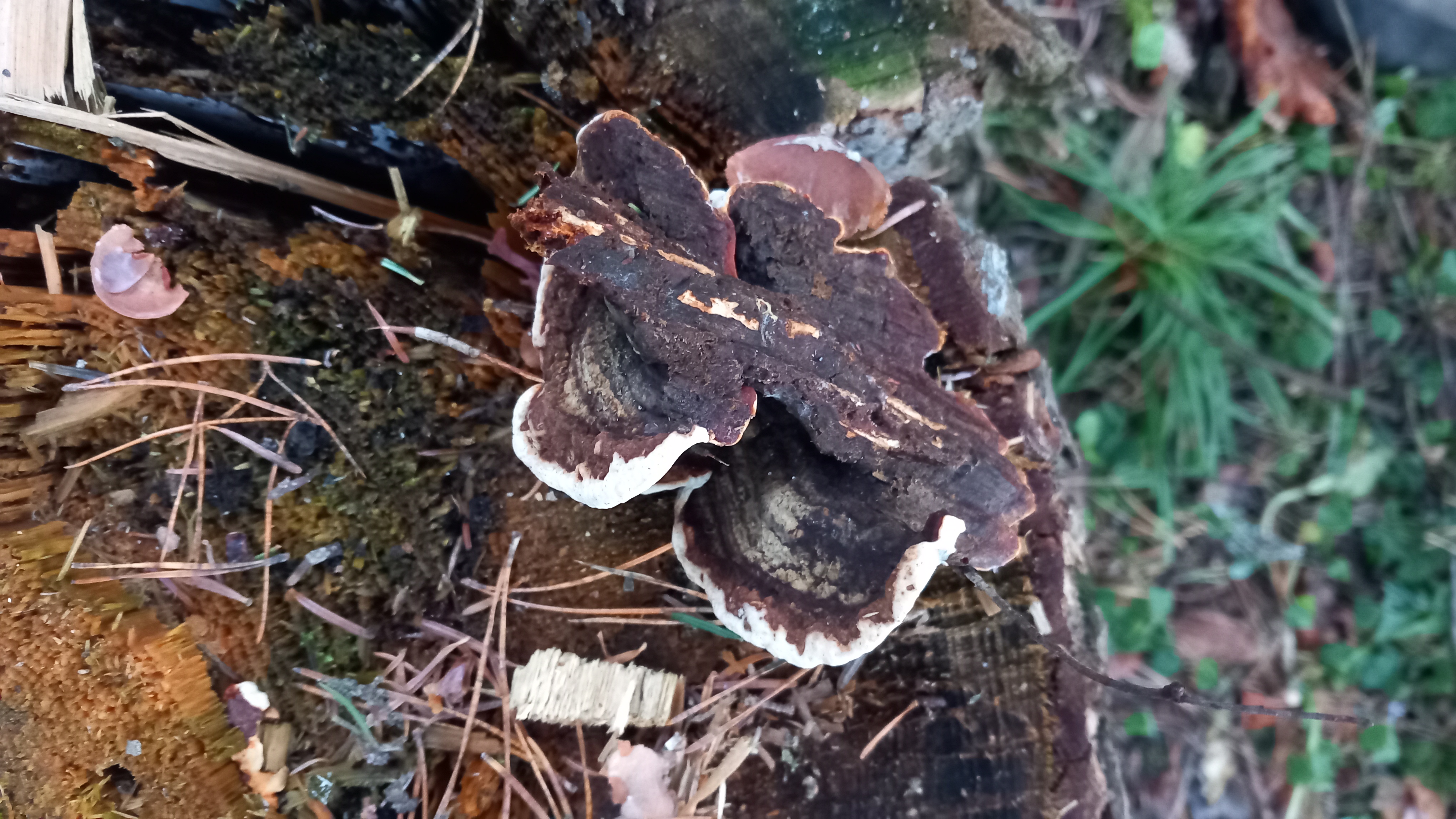 Zdravím, G. lipsiense rastie na listnáčoch, podobne G. adspersum a G. lucidum. Na ihličnanoch prichádza do úvahy G. carnosum, ale všetky by mali byť viacej "nalakované" a zvyčajne s hlúbikom. Myslím, že ide o Ischnoderma benzoinum.