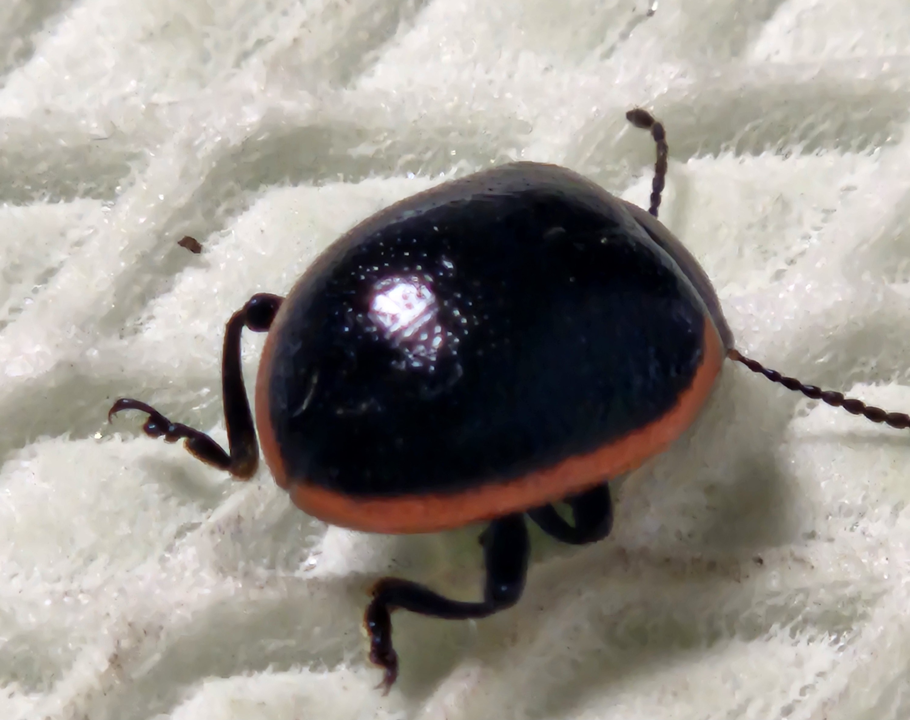 Dobrý deň, ďakujeme za dotaz. Toto je Chrysolina sanguinolenta. Na stromoch škody nespôsobuje. S pozdravom M. Zúbrik